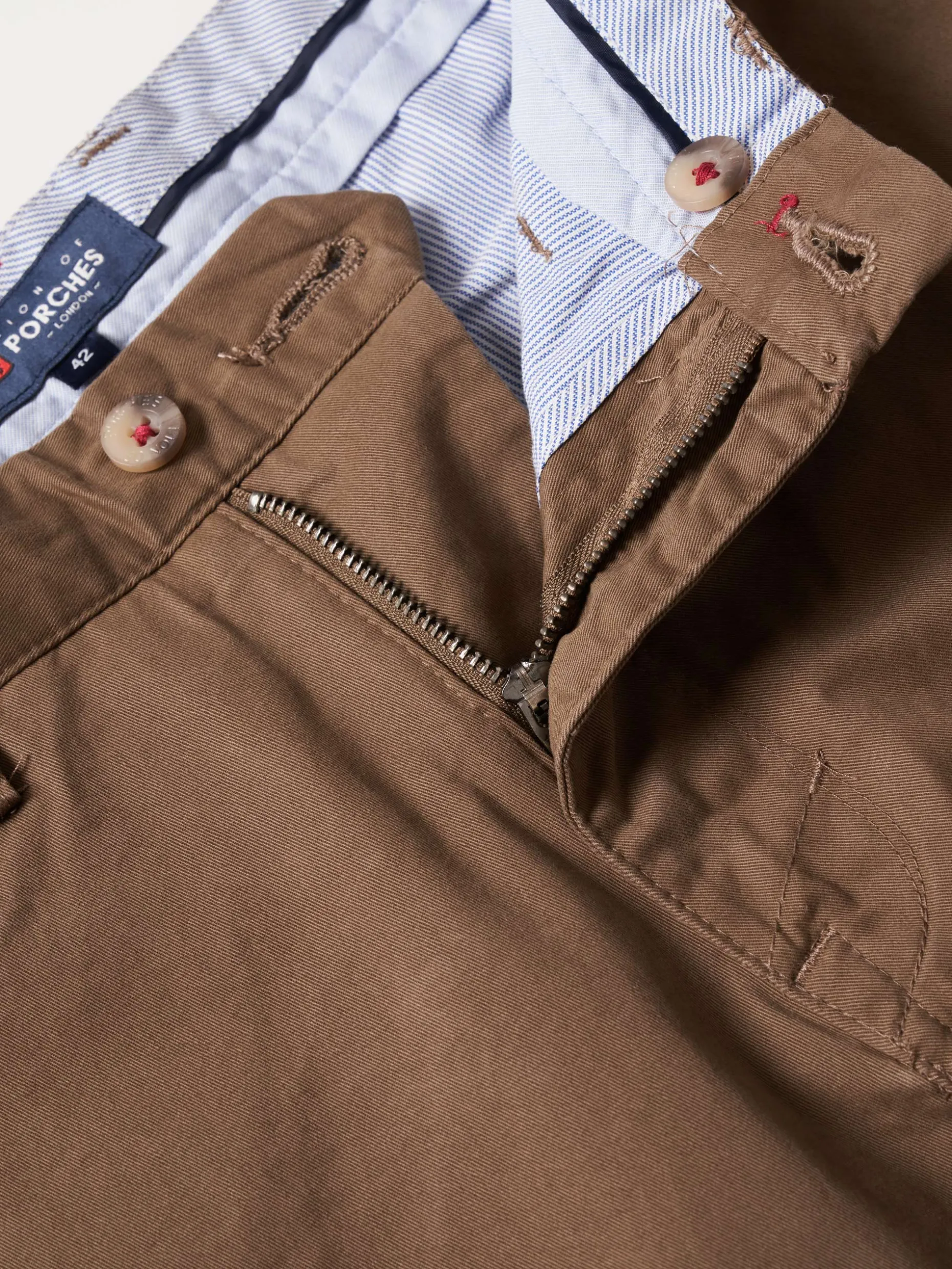 Bermudas chino confecionadas em algodão stretch. Dois bolsos laterais. Dois bolsos posteriores. Apertam na frente com fecho oculto por carcela e botão.