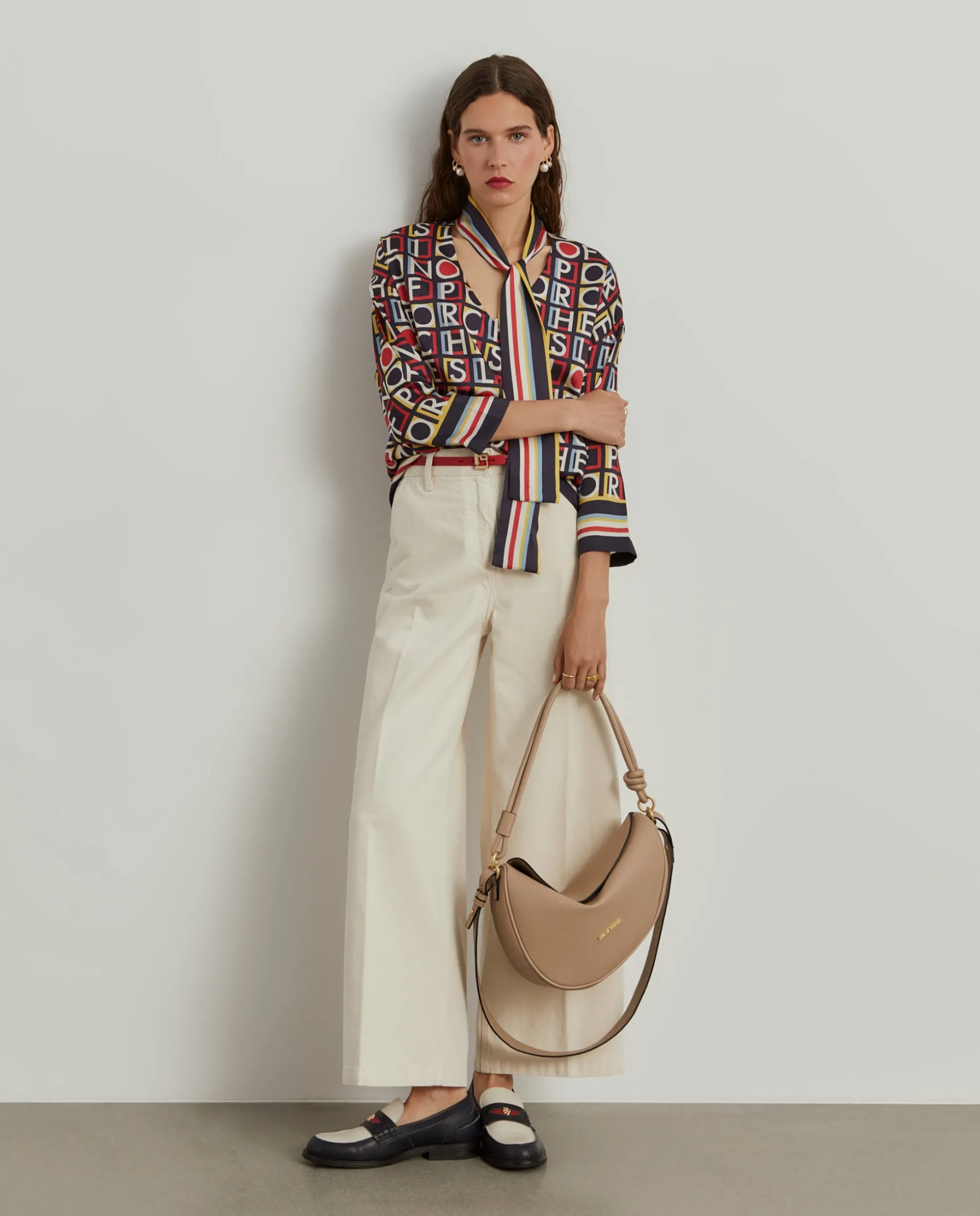 Elegante blusa fluida com padrão colorido Lion of Porches por toda a peça, perfeita para dar um toque de personalidade ao seu look. De manga comprida, tem decote em V e fita no mesmo tom e tecido para dar laçada no pescoço.