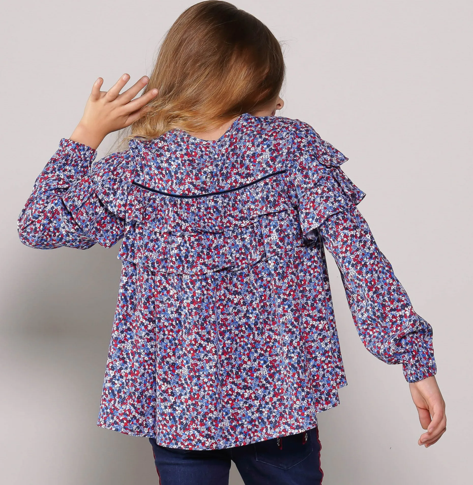 Quem disse que no Inverno a Natureza não floresce? Blusa de estampado floral com sobreposição de folhos e punhos em elástico.