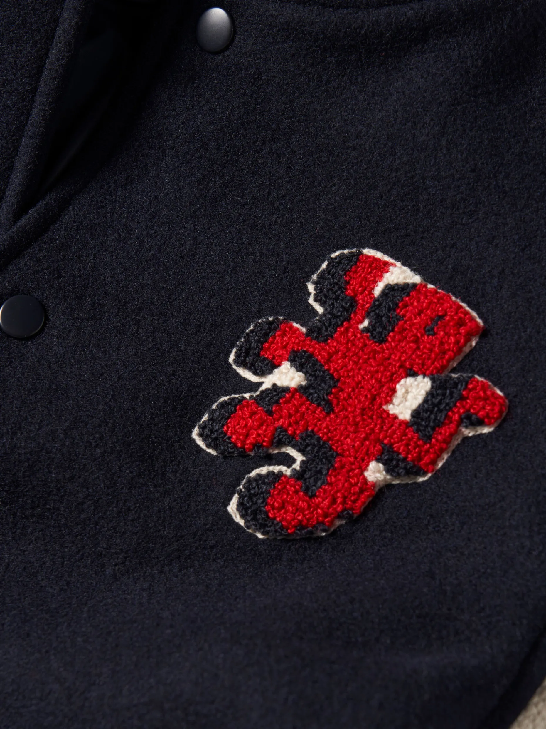 Para miúdos cheios de estilo, propomos este blusão bomber com mangas em contraste. Com vários patches por toda a peça. Aperta através de molas de pressão e tem dois bolsos frontais. A gola, punhos e cintura são canelados. Com forro interior.