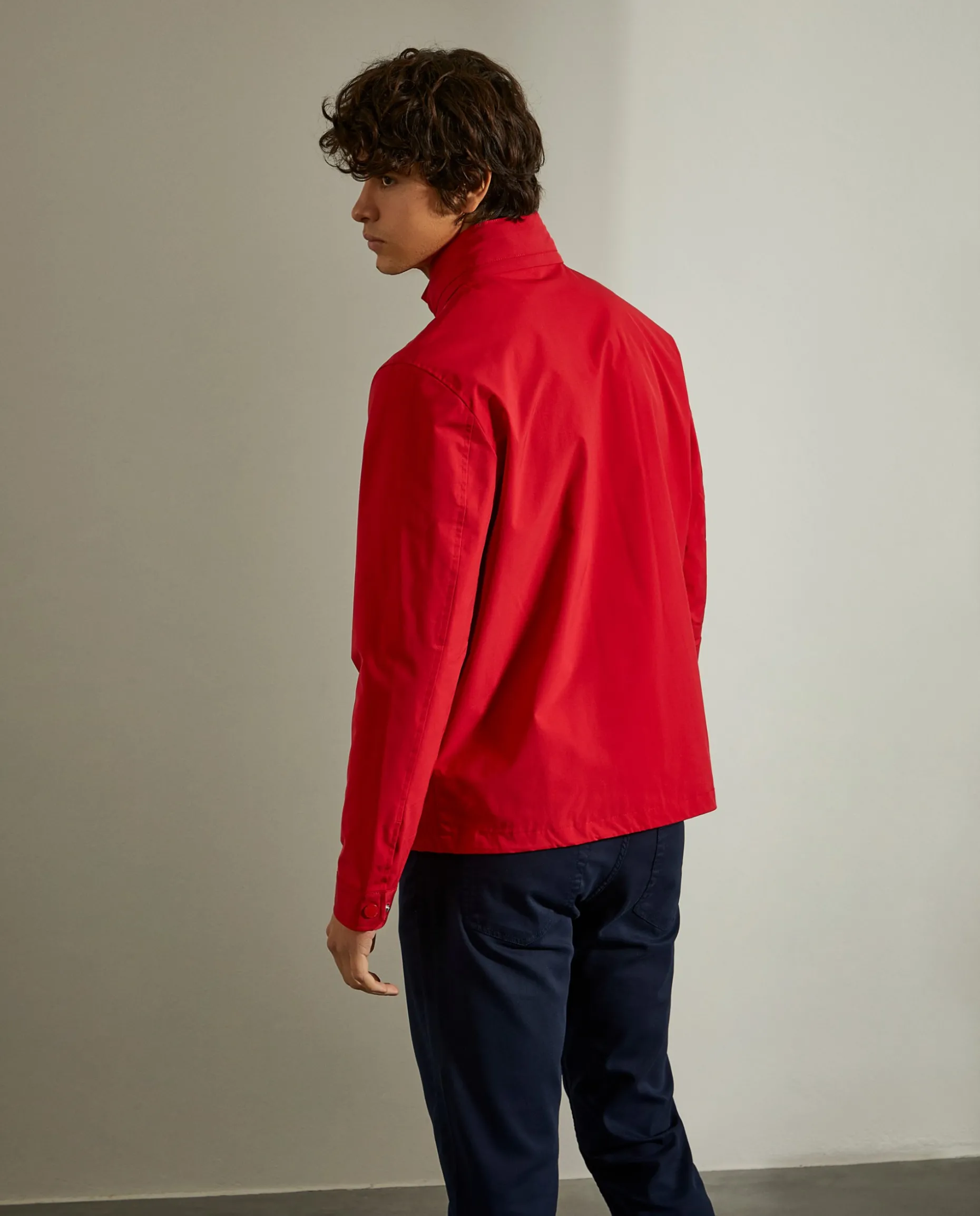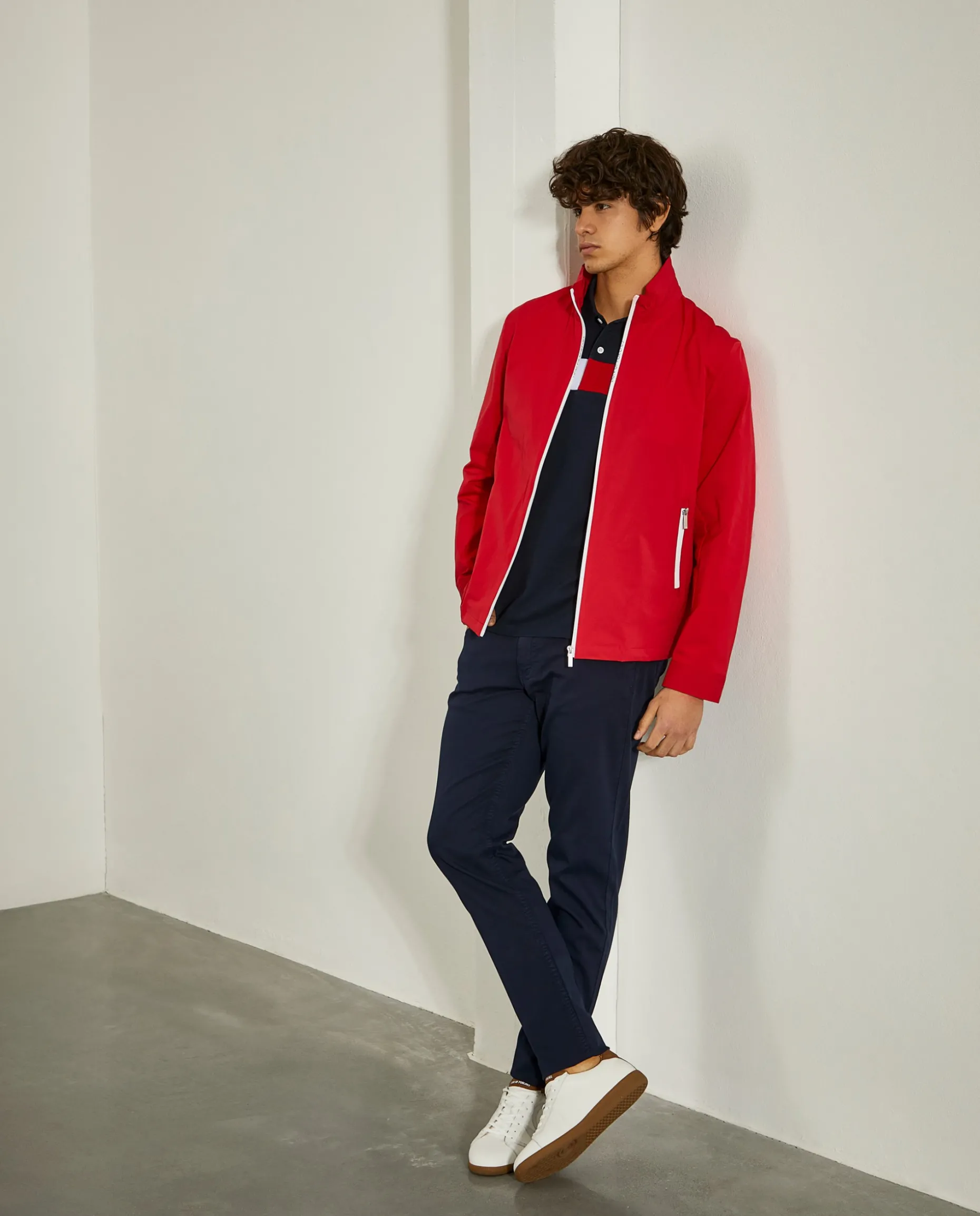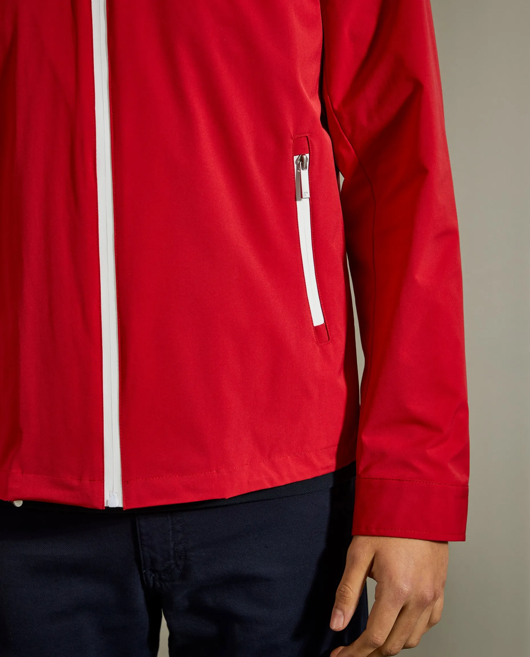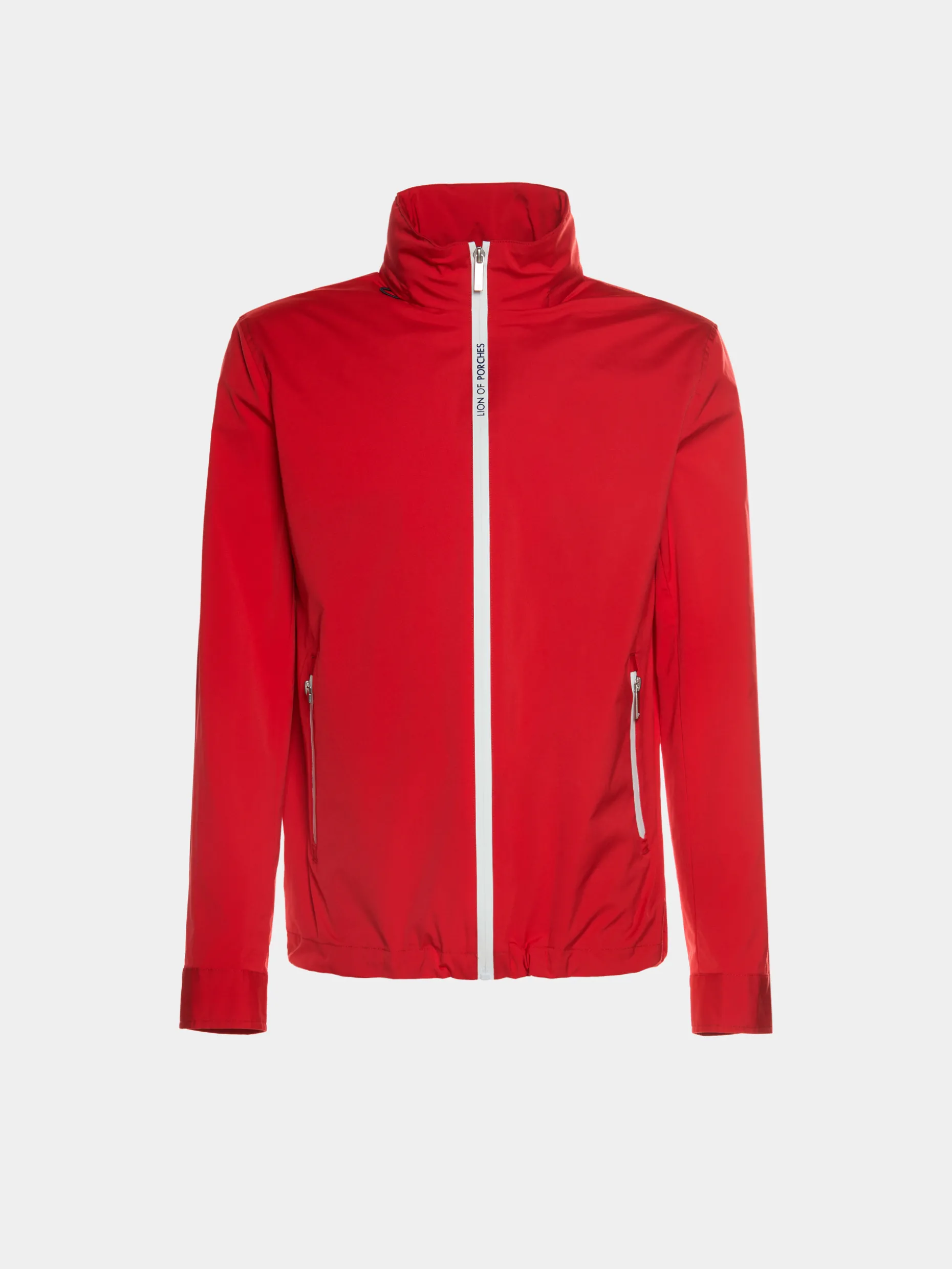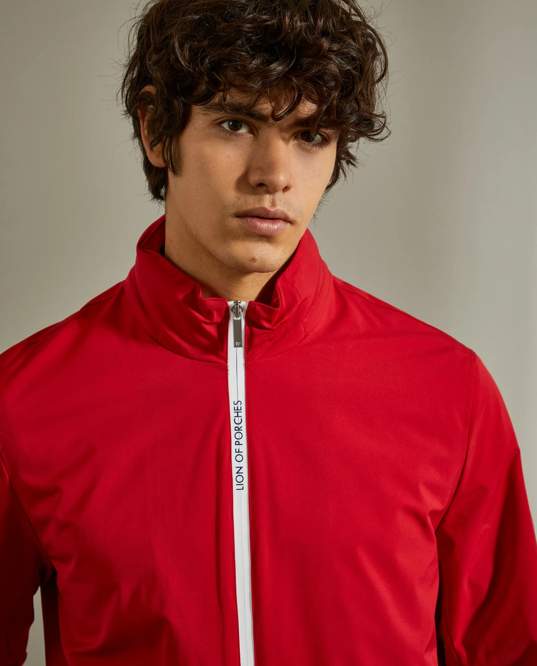 Blusão com capuz embutido na gola. Em tecido técnico. Aperta com fecho central à prova de água em cor contraste e com grafismo Lion of Porches. Dois bolsos na frente com fecho à prova de água em cor contraste. Forro perfurado com frente em cor contraste. Dois bolsos de fecho no interior.
