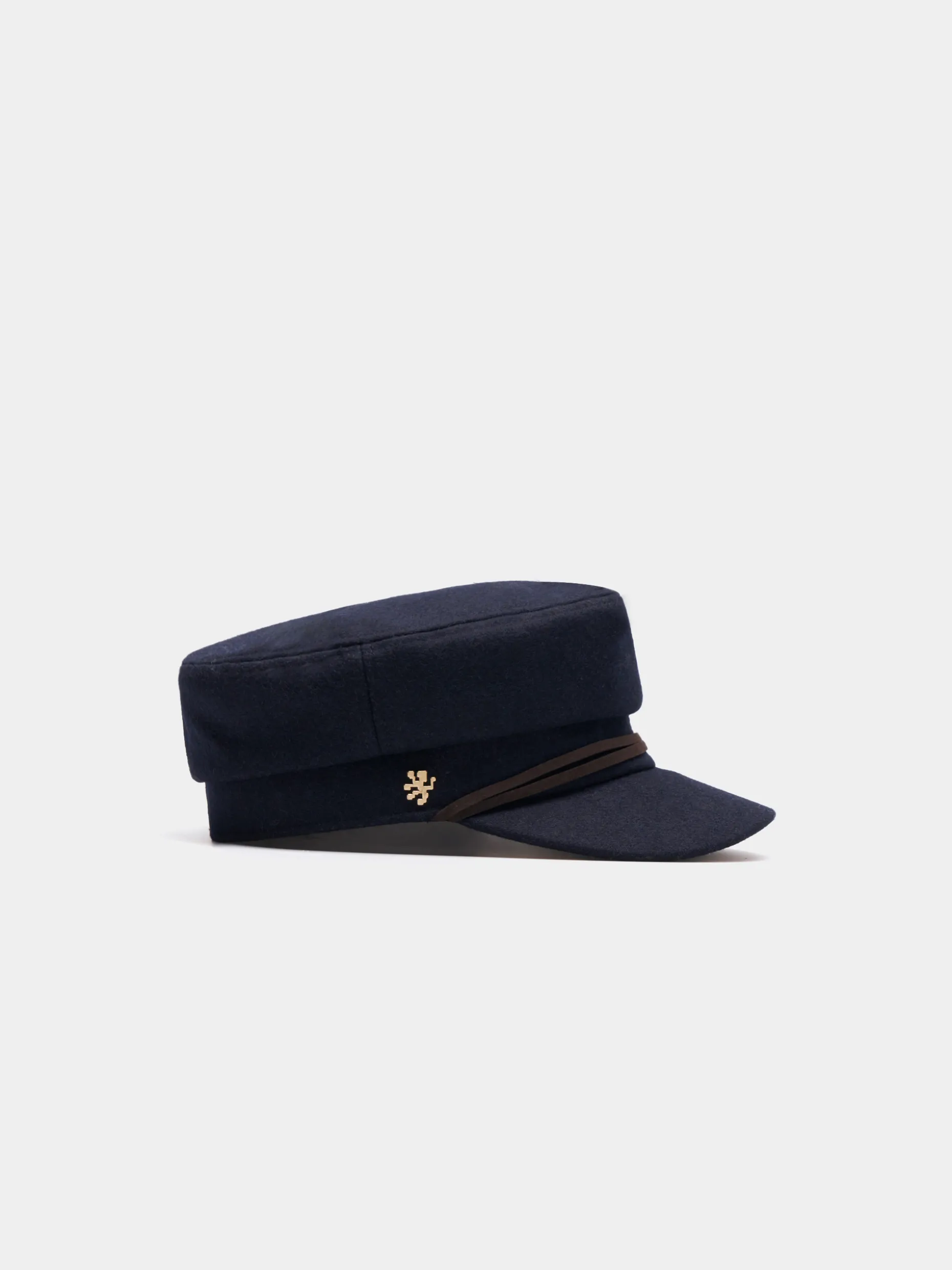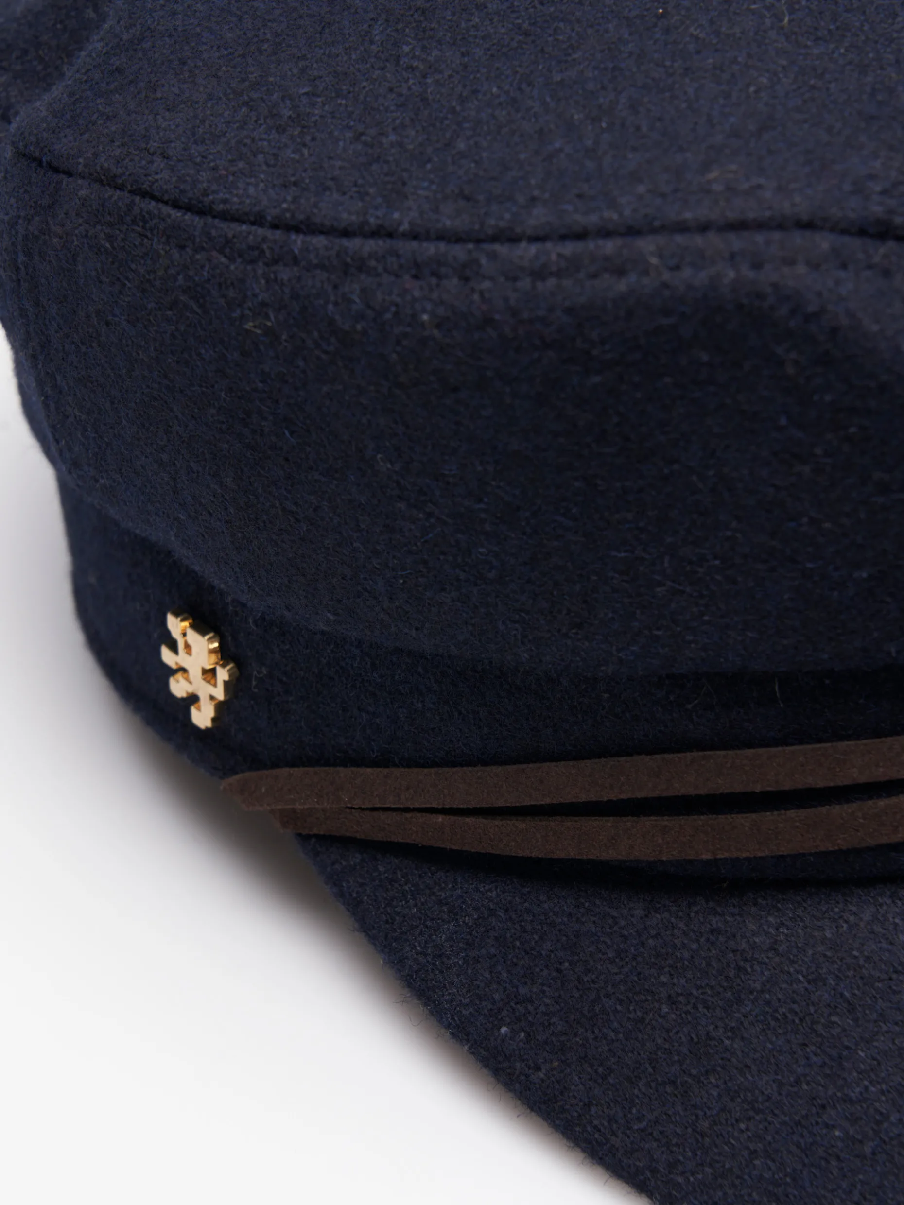 Complemente o seu look de inverno com esta elegante boina com pala curva. Pormenor de fitas em camurça na frente em contraste de cor. Finaliza com aplicação metálica na lateral.