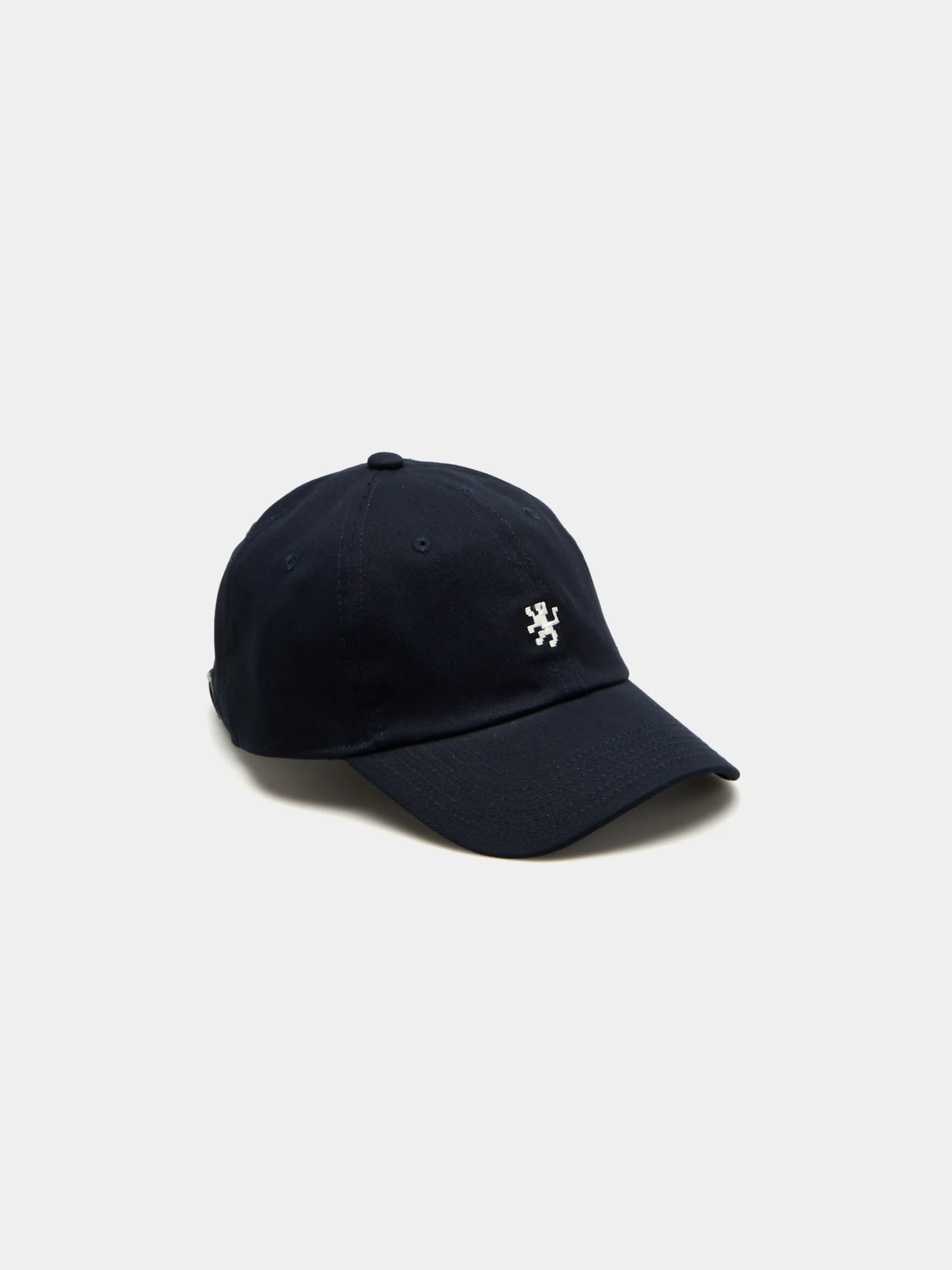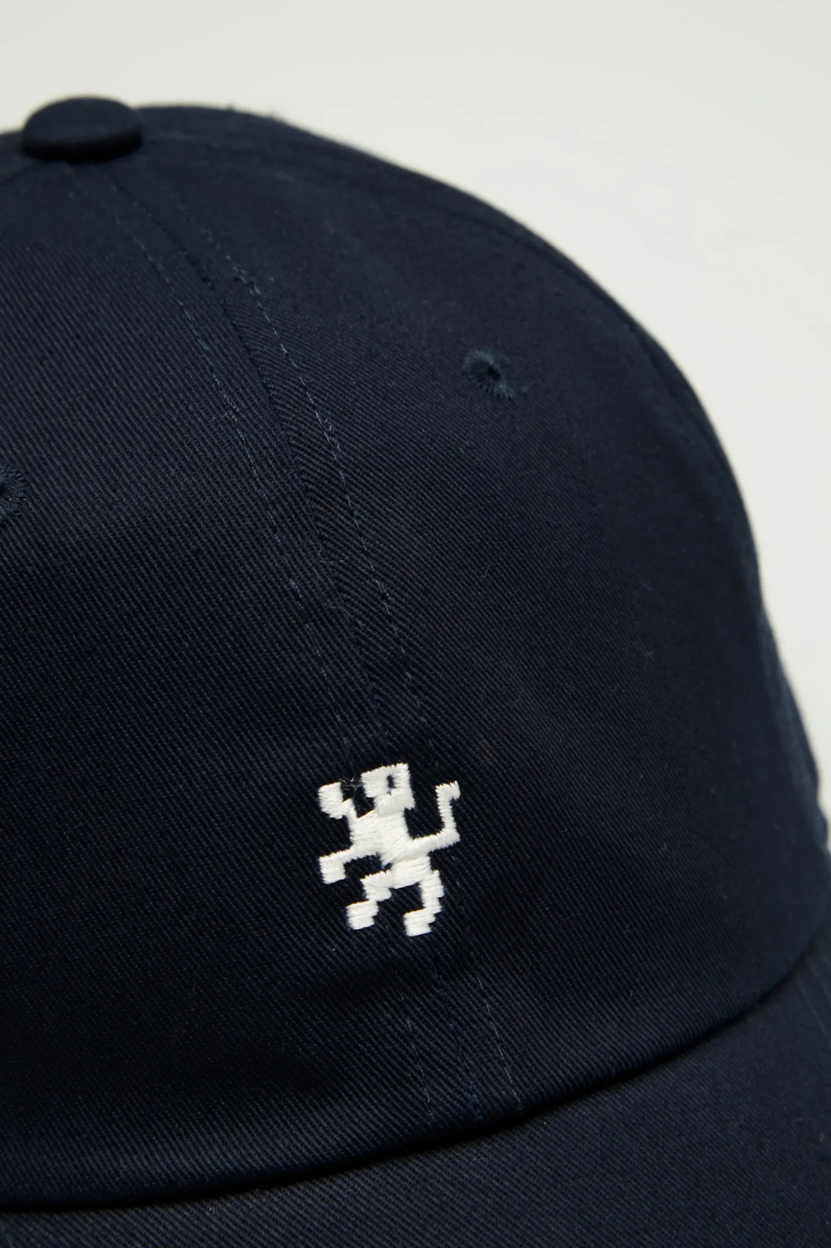 Boné de algodão com pala curva. De cor lisa, finaliza com leão da marca, na frente, em contraste de cor. Modelo unissexo disponível em várias cores.
