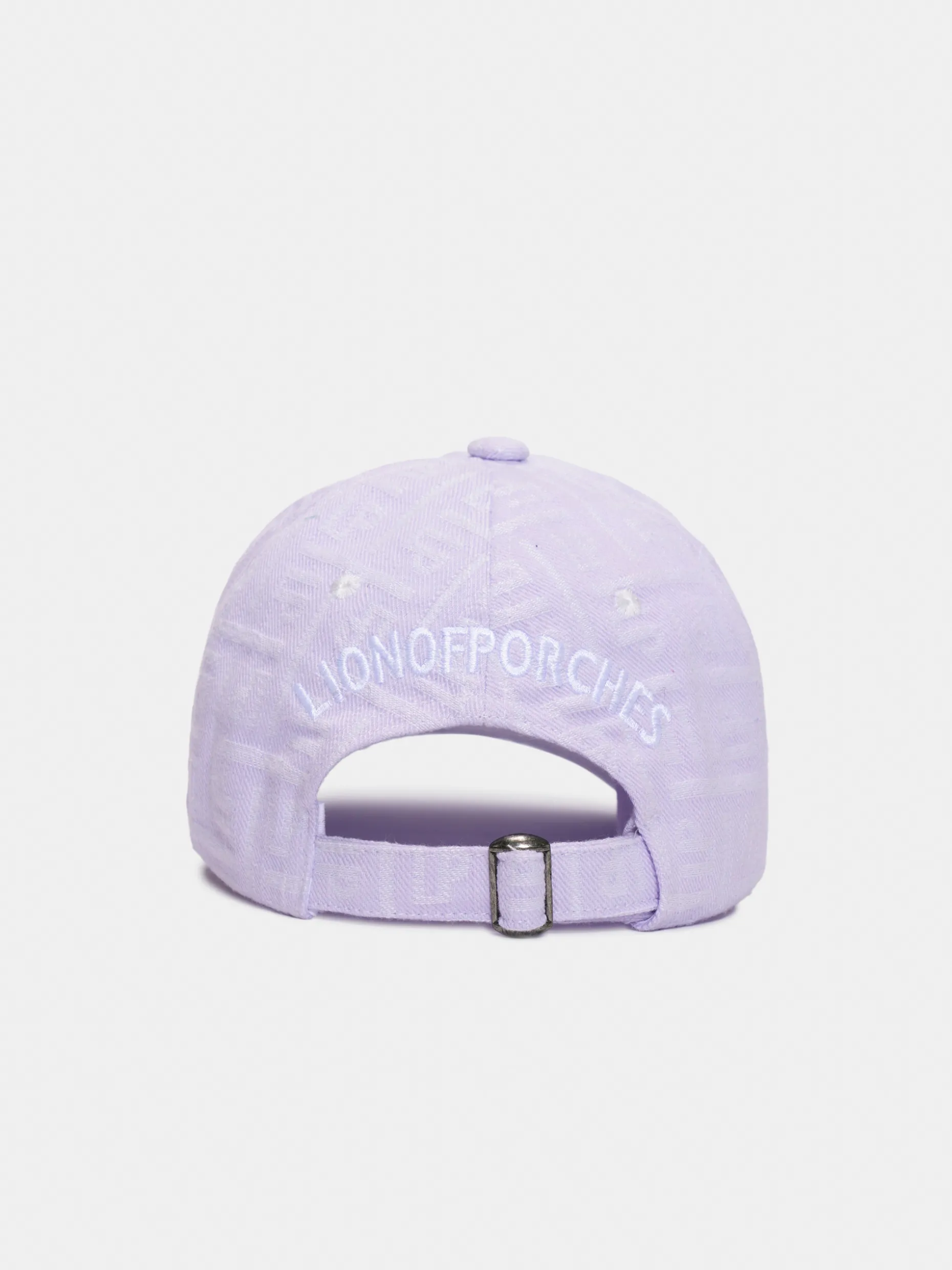 Boné com pala curva. Padrão de relevo com monograma. Personalização “Lion of Porches” na parte posterior.
