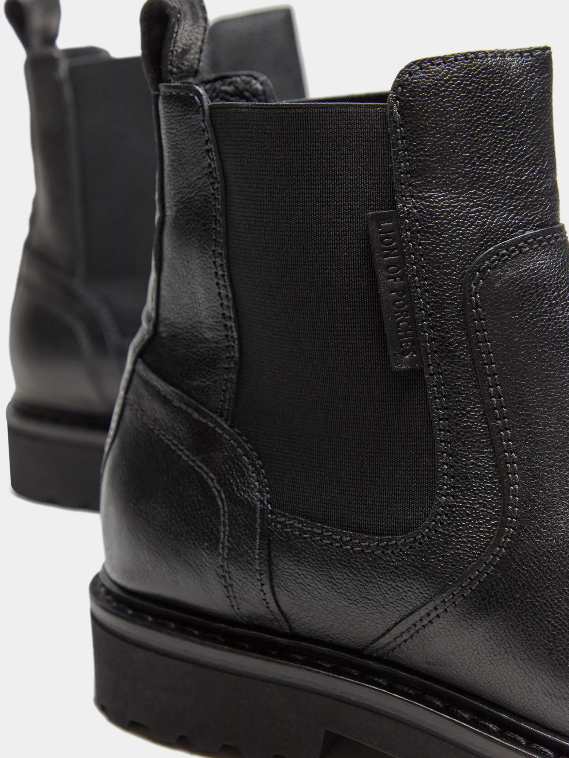 Finalize os seus looks com estes botins de pele. Contam com elástico na lateral para serem mais fáceis de calçar e uma etiqueta personalizada Lion of Porches.