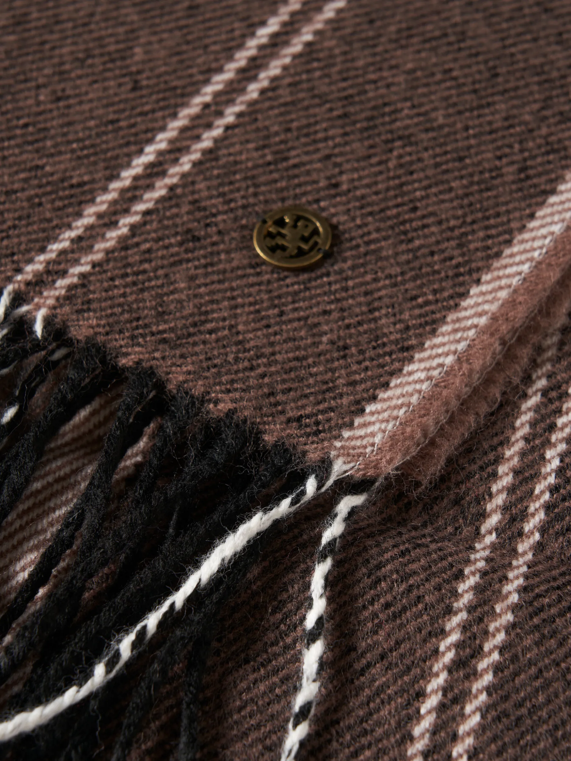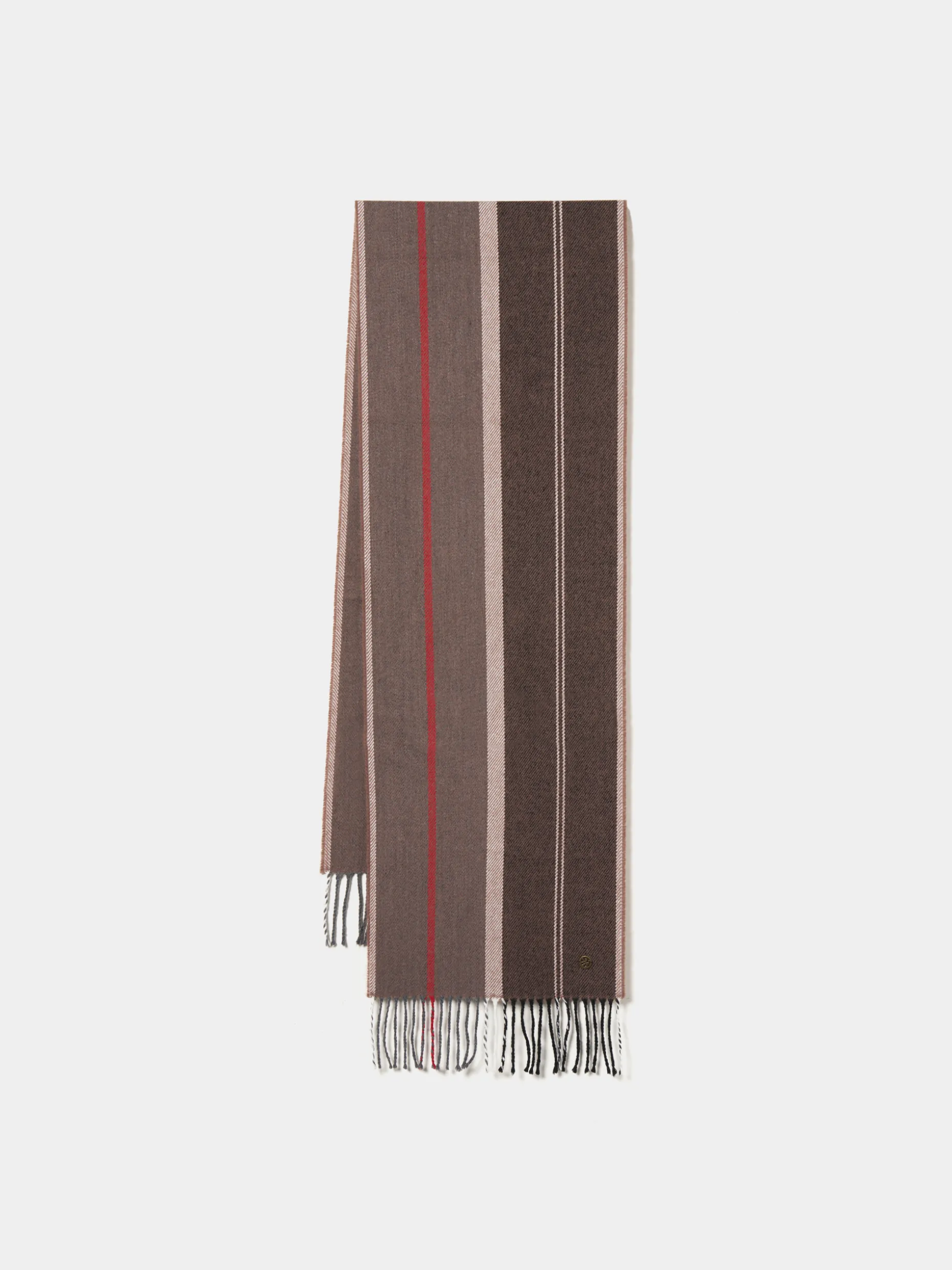 Proteja-se nos dias de maior frio com o acessório perfeito. Cachecol com padrão de riscas multicor. Termina com franjas nas extremidades.
