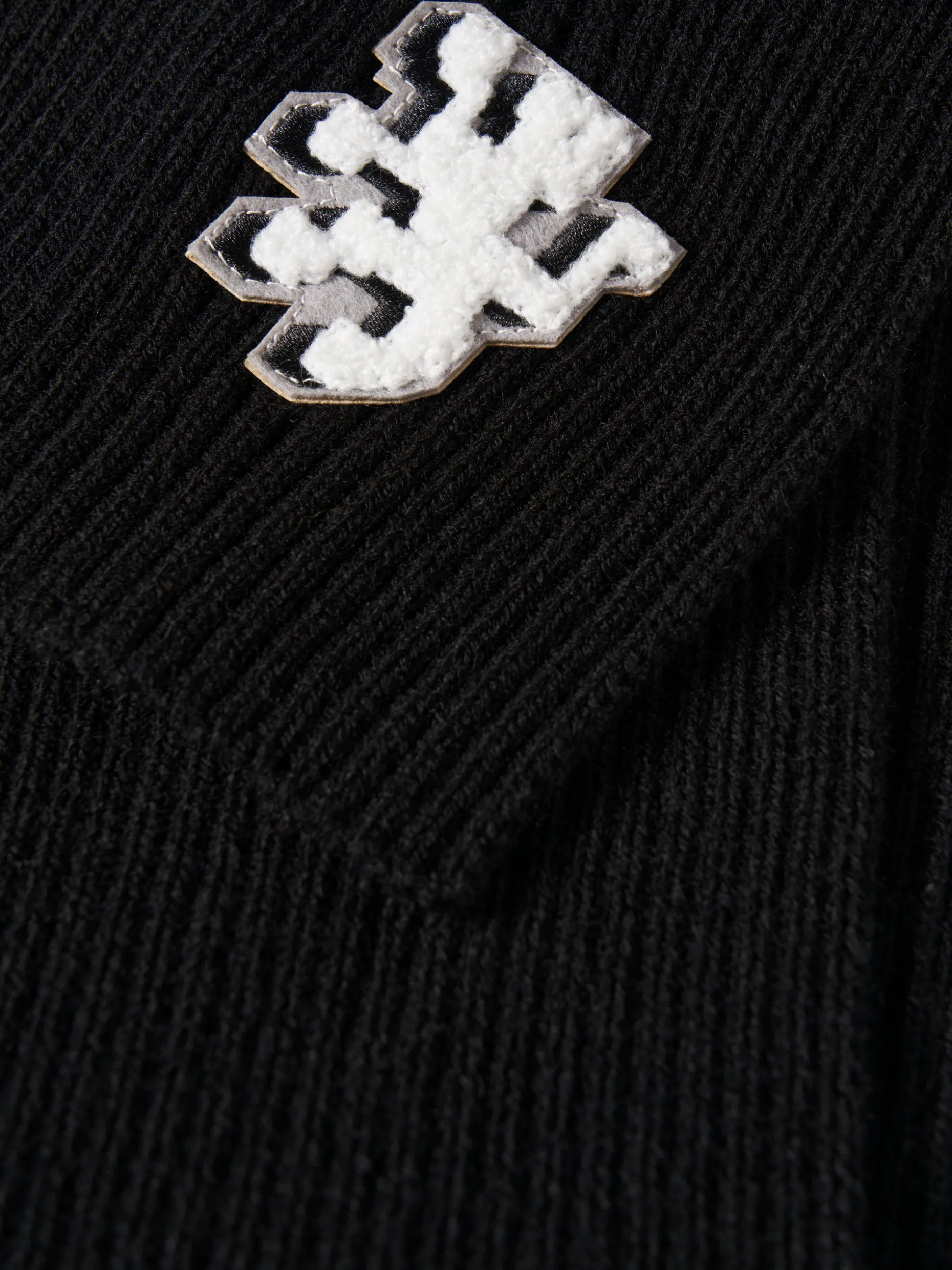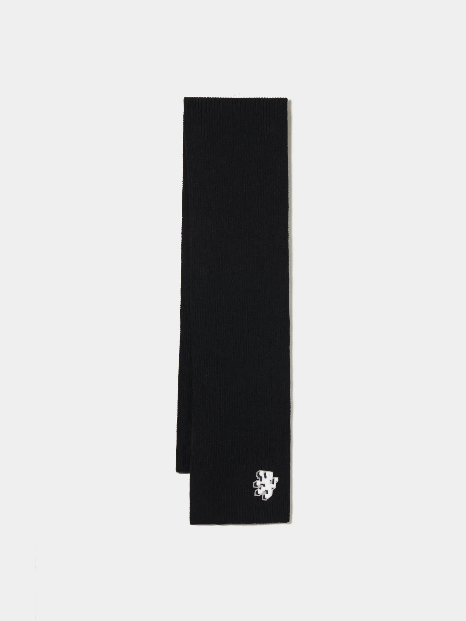 Nos dias mais frios, proteja os miúdos com este cachecol de malha canelada lisa. Finaliza com leão da marca em contraste na ponta.