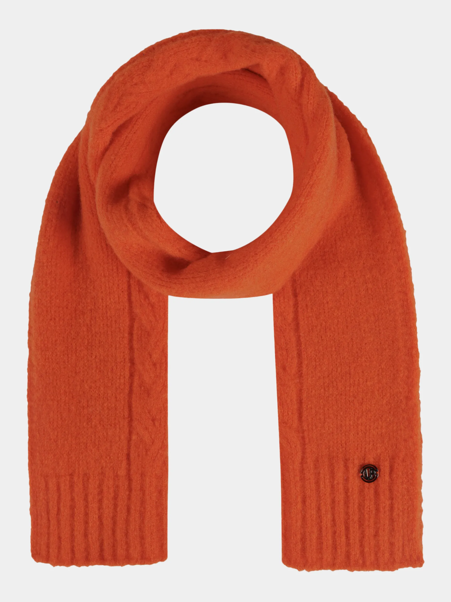 Cachecol confecionado em malha com estrutura trançada.