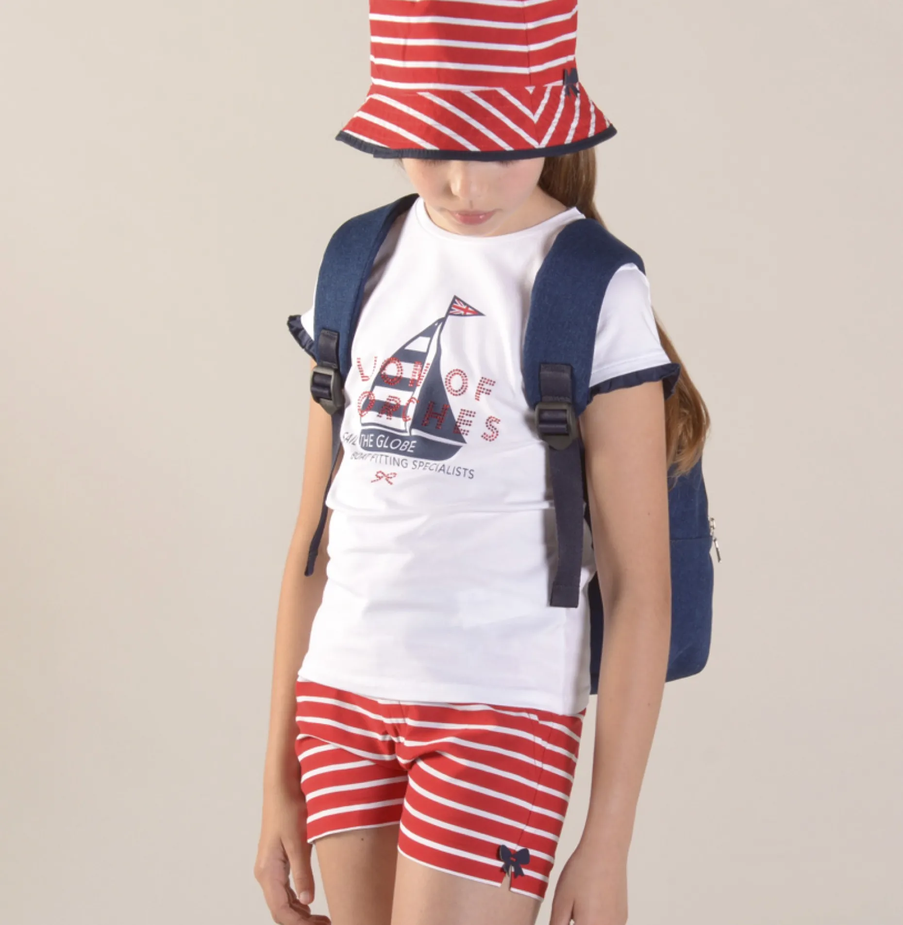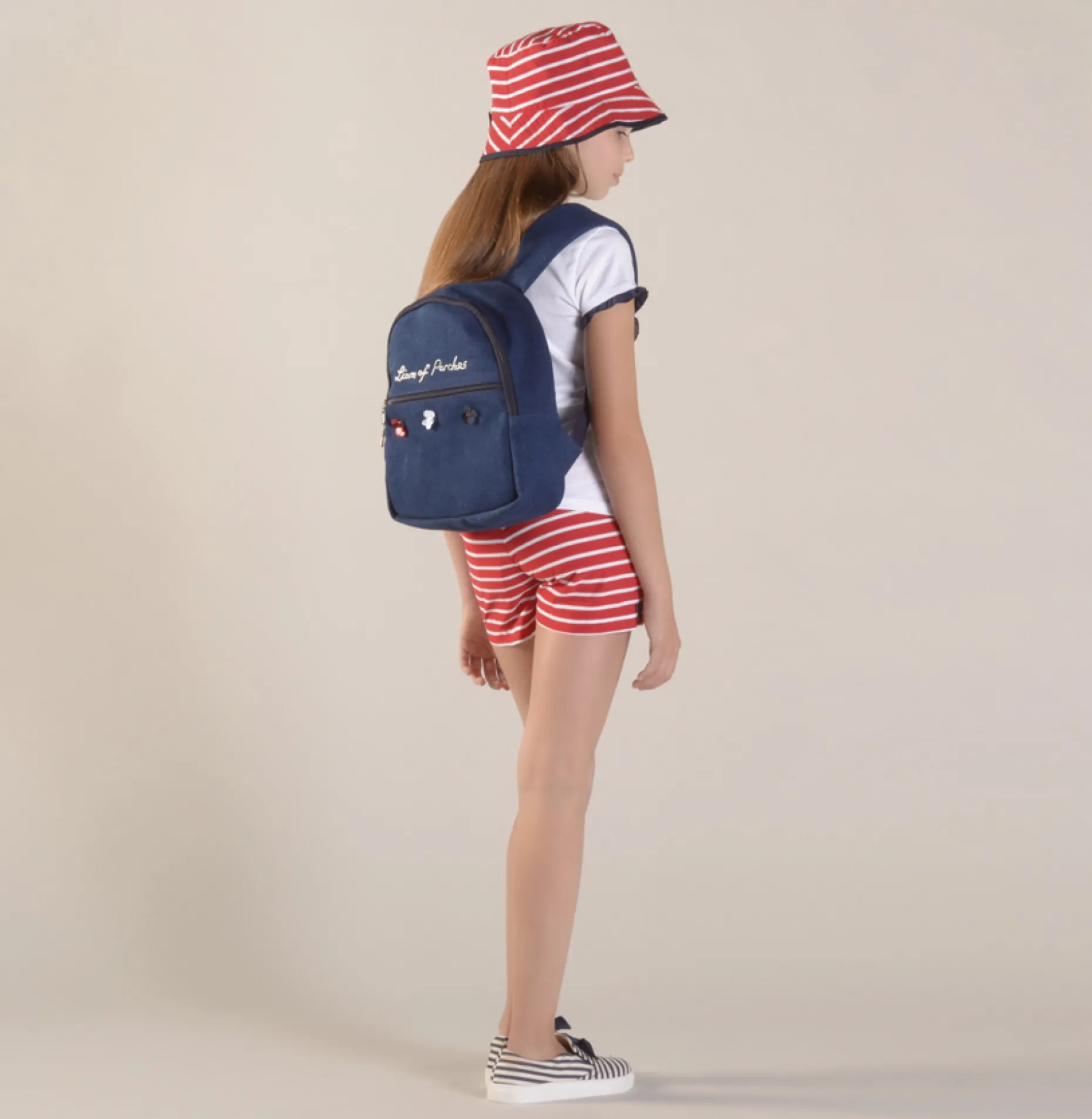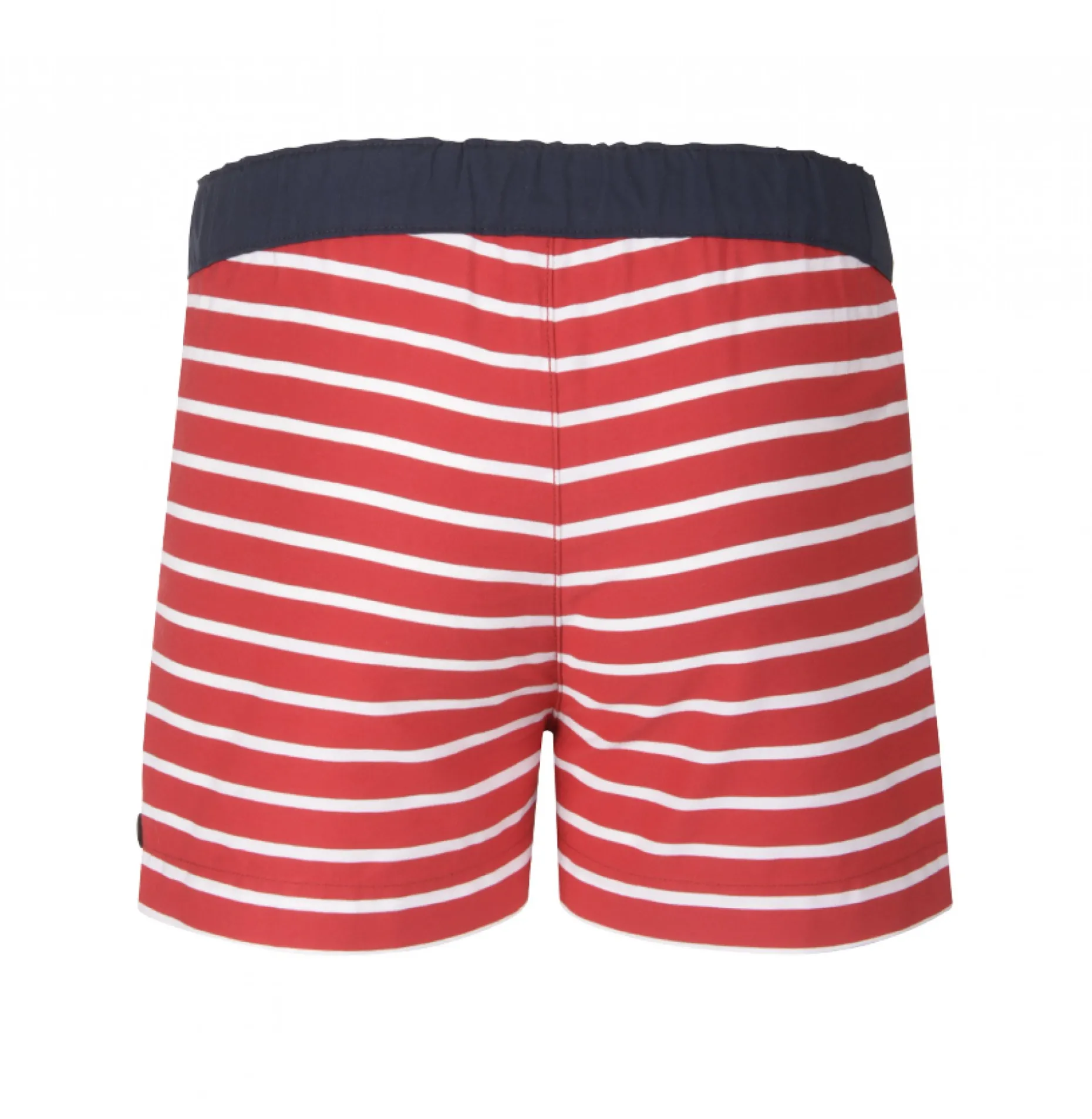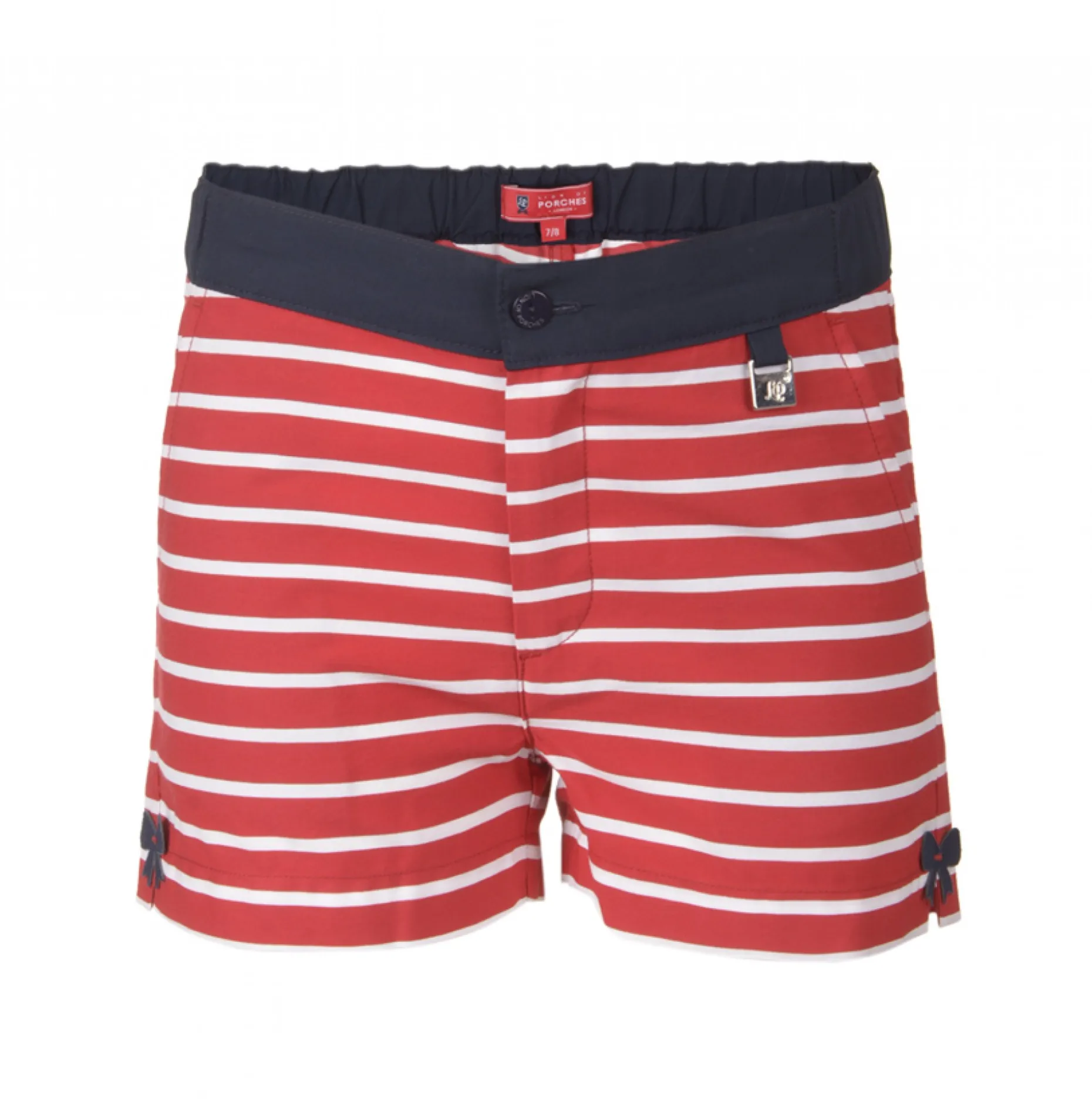 Com inspiração navvy, estes calções tricolores são perfeitos para uma ida à praia ou para um passeio no parque. Os laços laterais conferem-lhe um toque diferenciador. Cós em elástico e botão em mola.