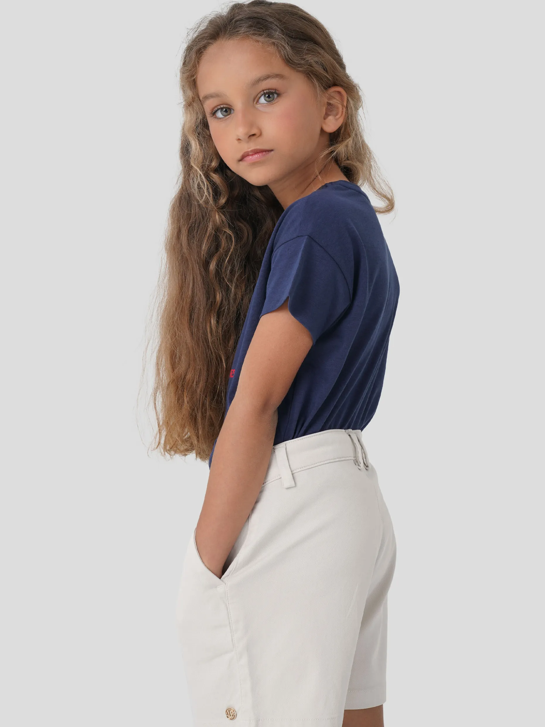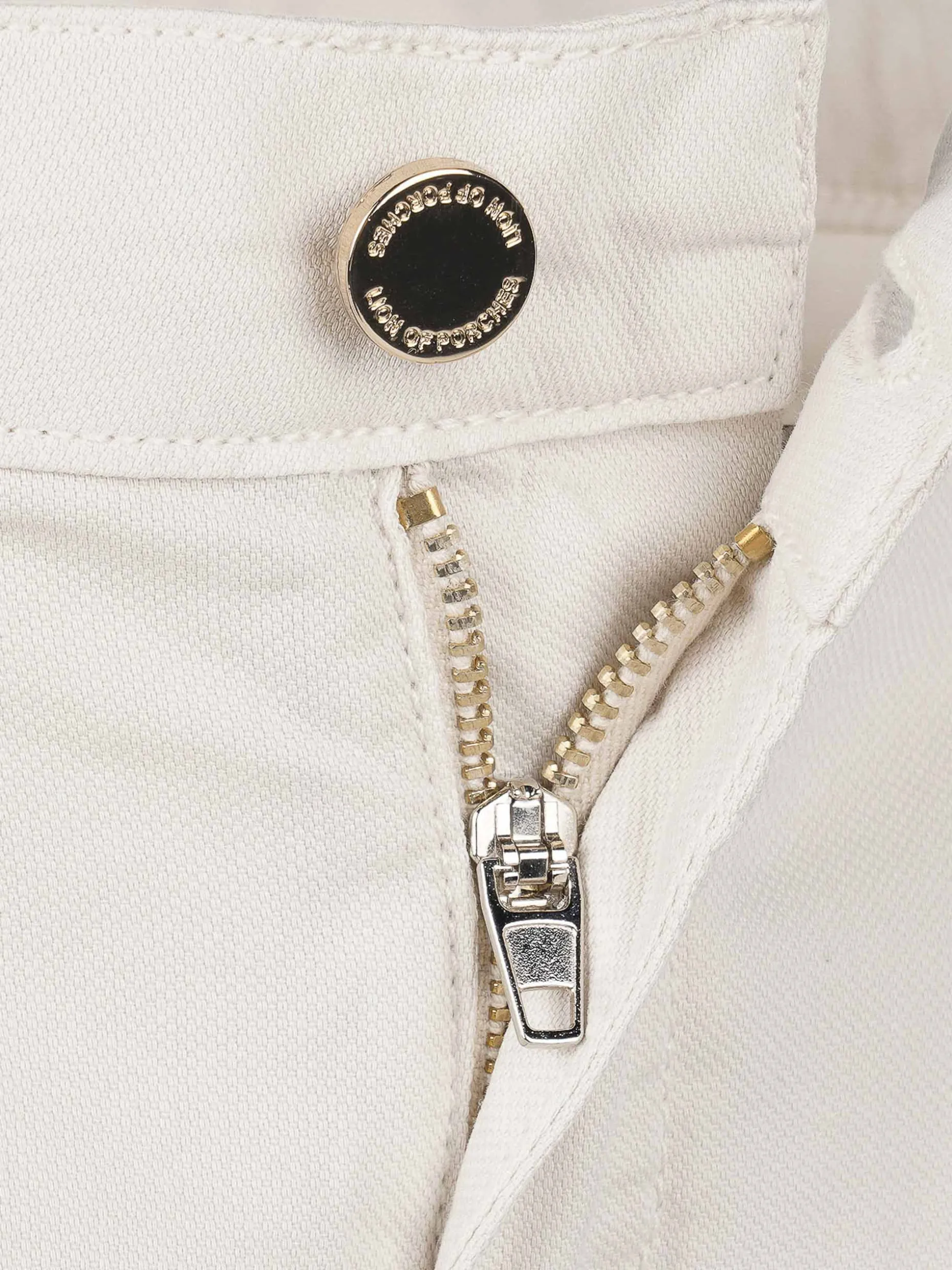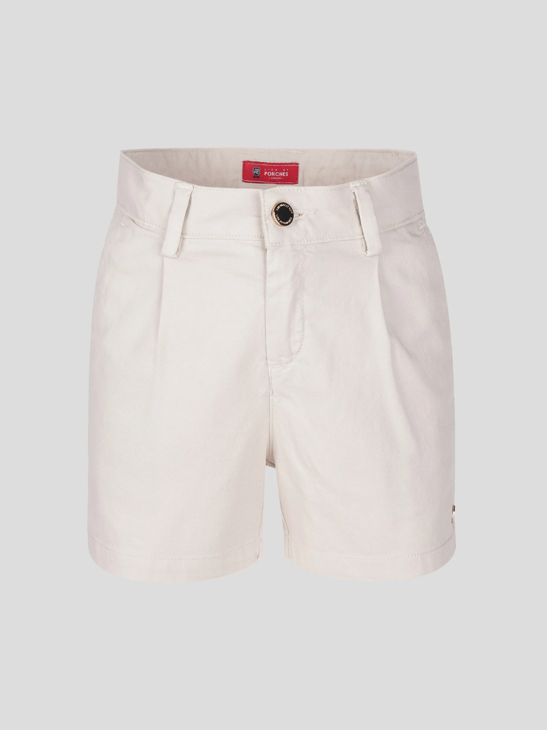 Muito confortáveis, por serem ligeiramente elásticos, estes calções em sarja apresentam bolsos laterais, pregas na frente, braguilha com fecho éclair e botão. Cintura ajustável. Personalizados com pequena chapa metálica «LP» na frente.