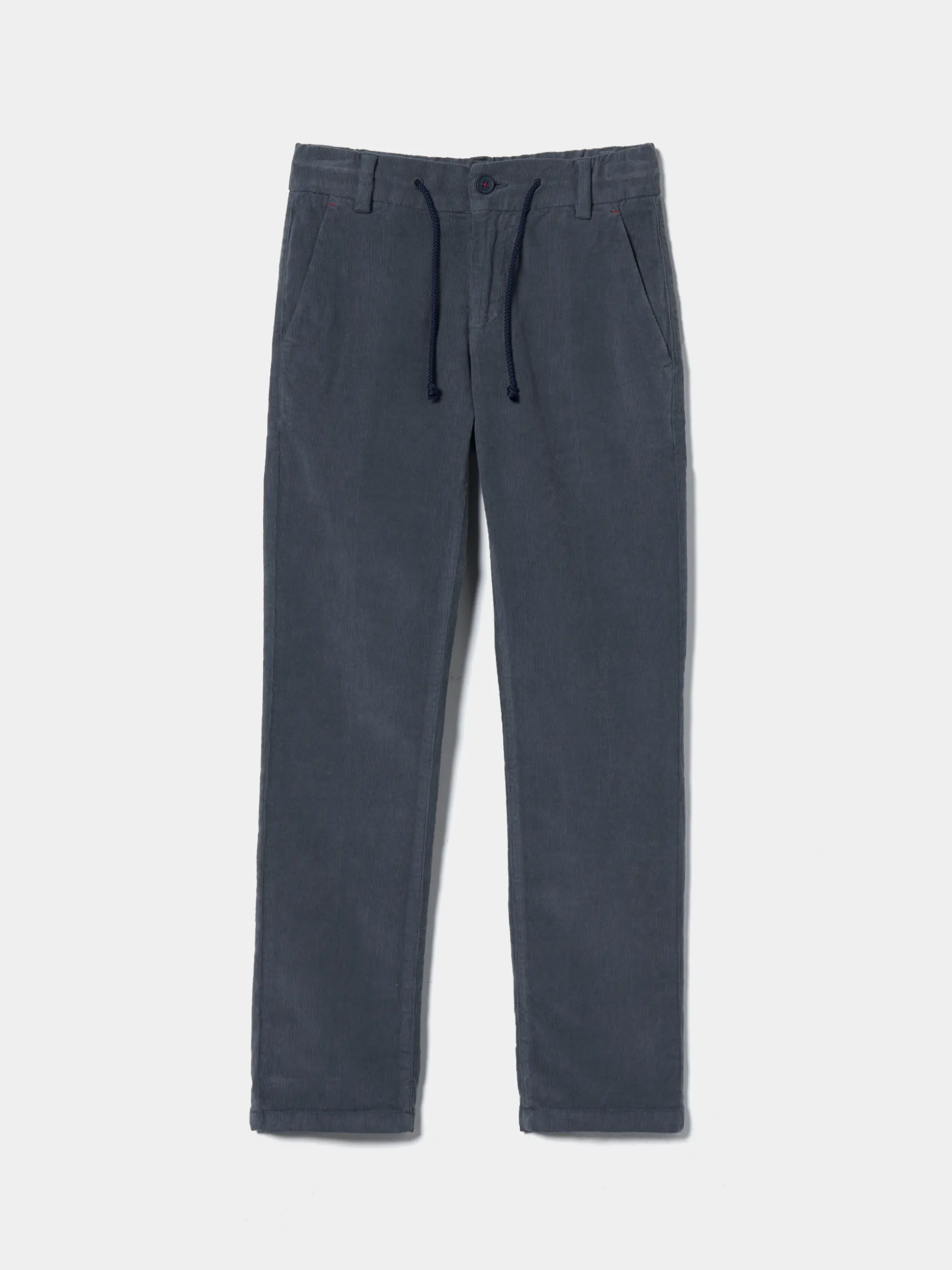 Calças chino confecionadas em bombazina stretch para um look de inverno quente e confortável. Apertam na cintura com botão, fecho de correr e cordão ao tom. Finalizam com bolsos laterais e traseiros.