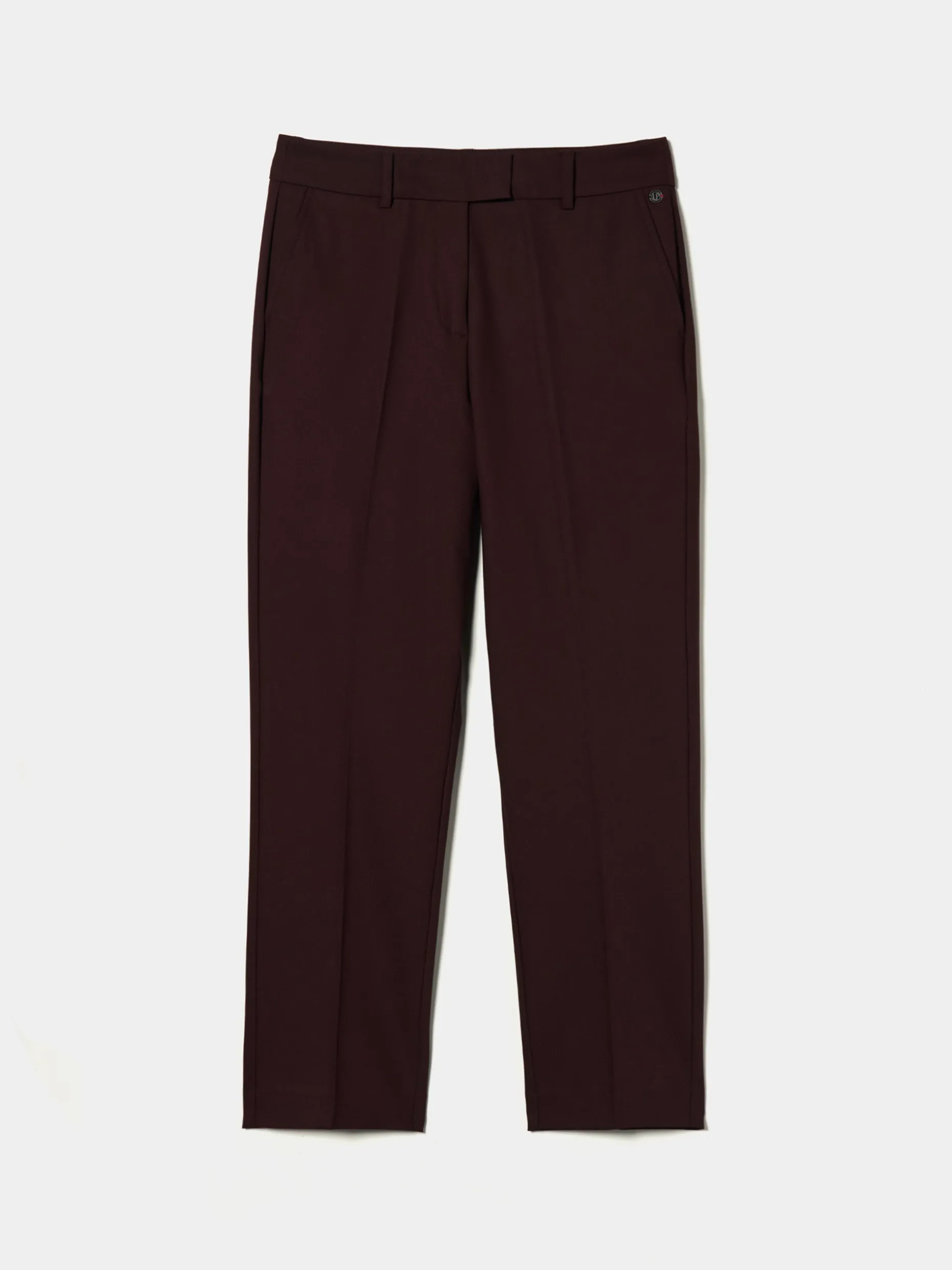 Calças chino regular fit confecionadas com viscose stretch. Dois bolsos laterais e dois bolsos posteriores. Apertam com fecho, gancho e botão.