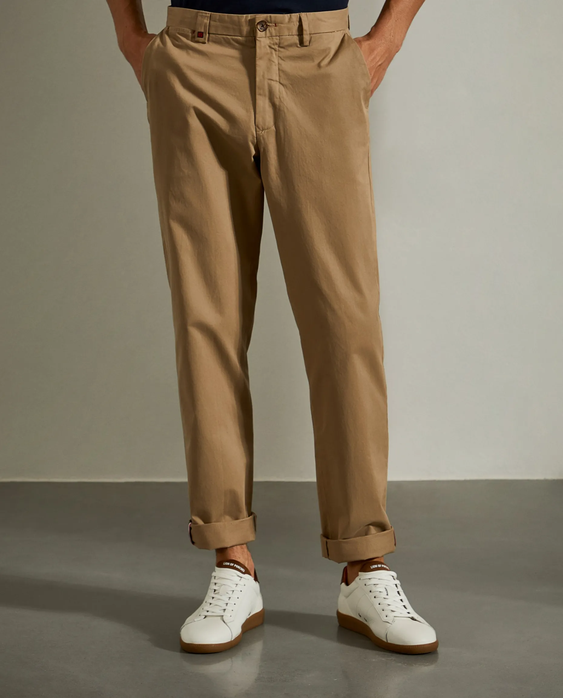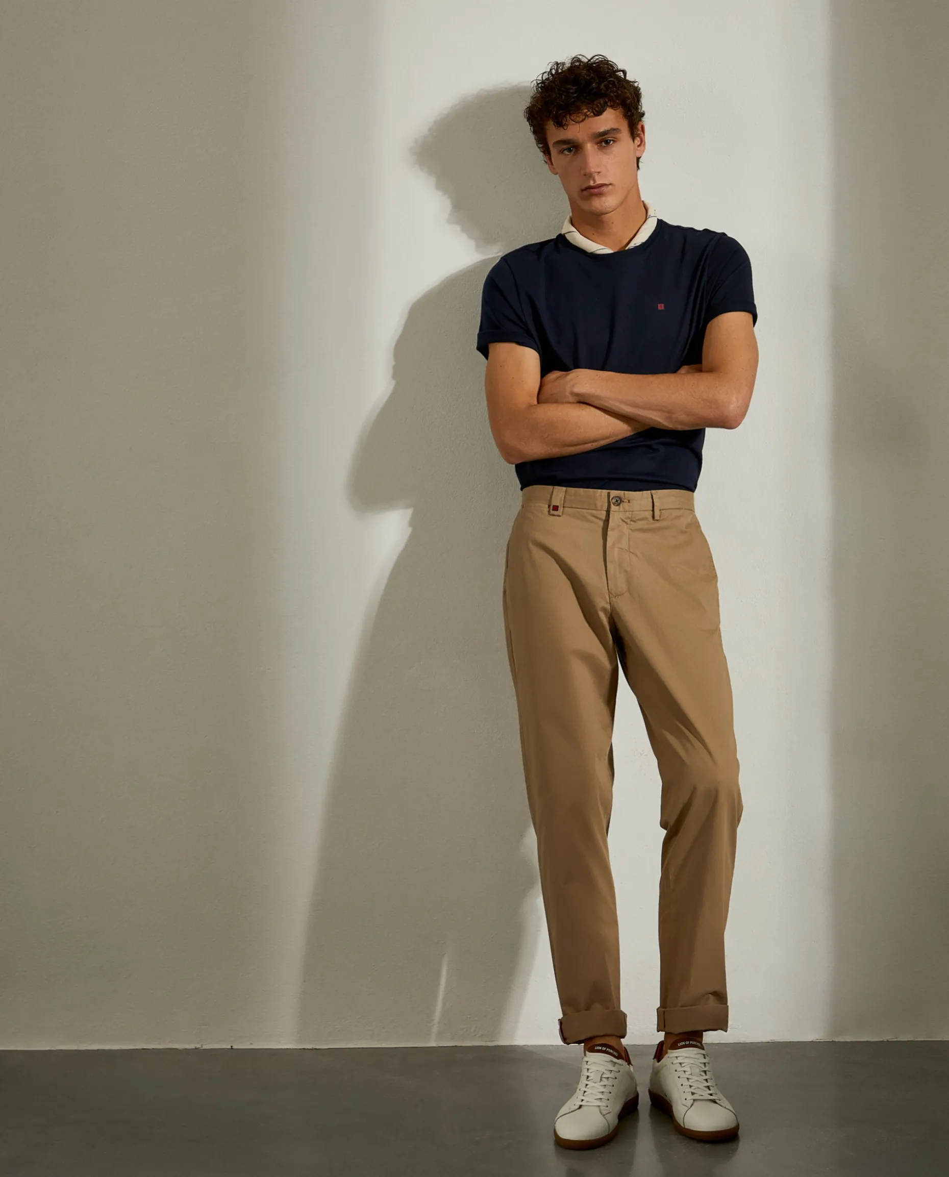 Garanta que está no seu melhor com estas calças chino regular fit. Apertam com fecho e botão e contam com bolsos laterais e posteriores.