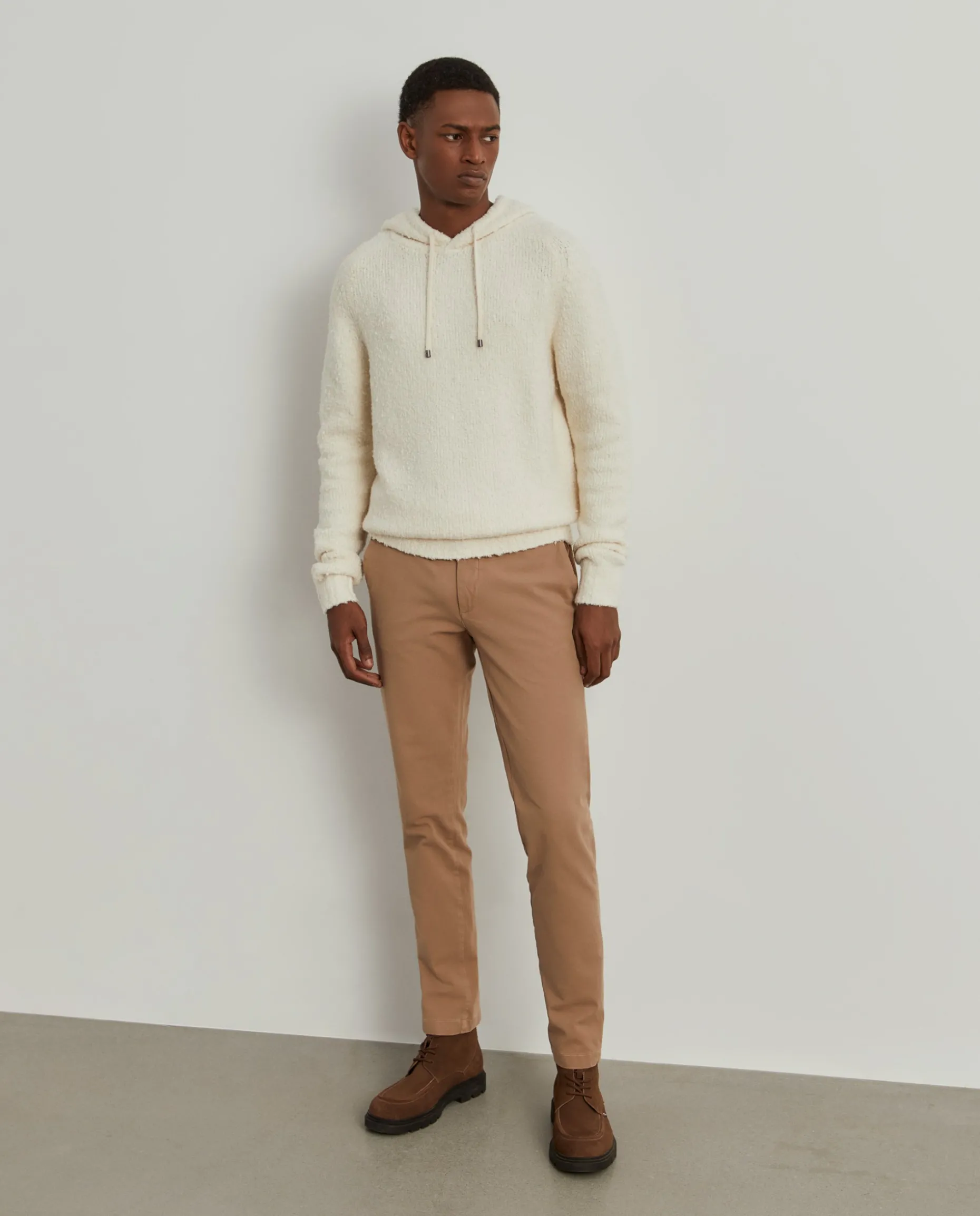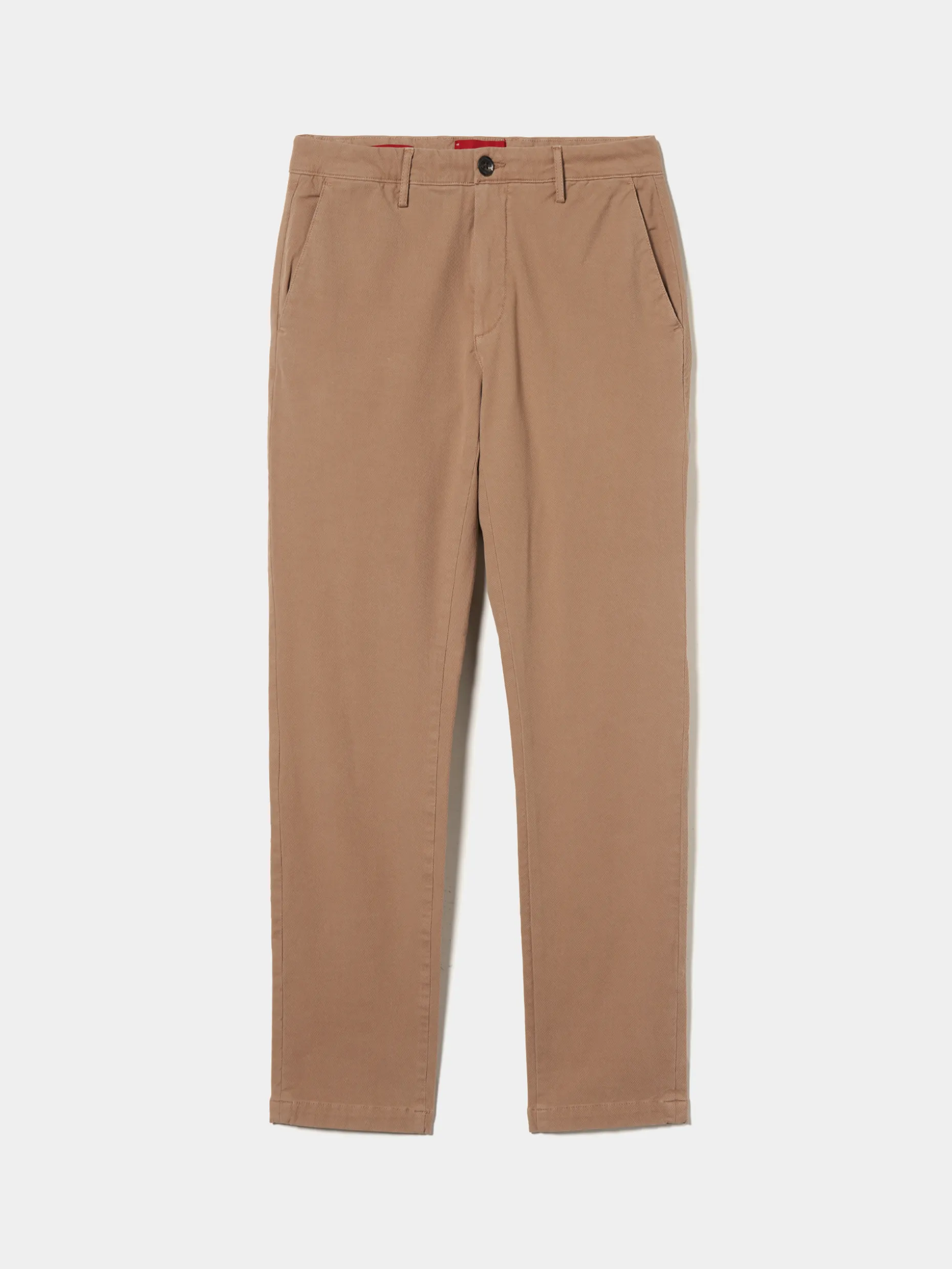 Calças Chino Slim Fit. Apertam com fecho e botões personalizados. Bolsos laterais. Dois bolsos de vivos com palas e botões atrás.