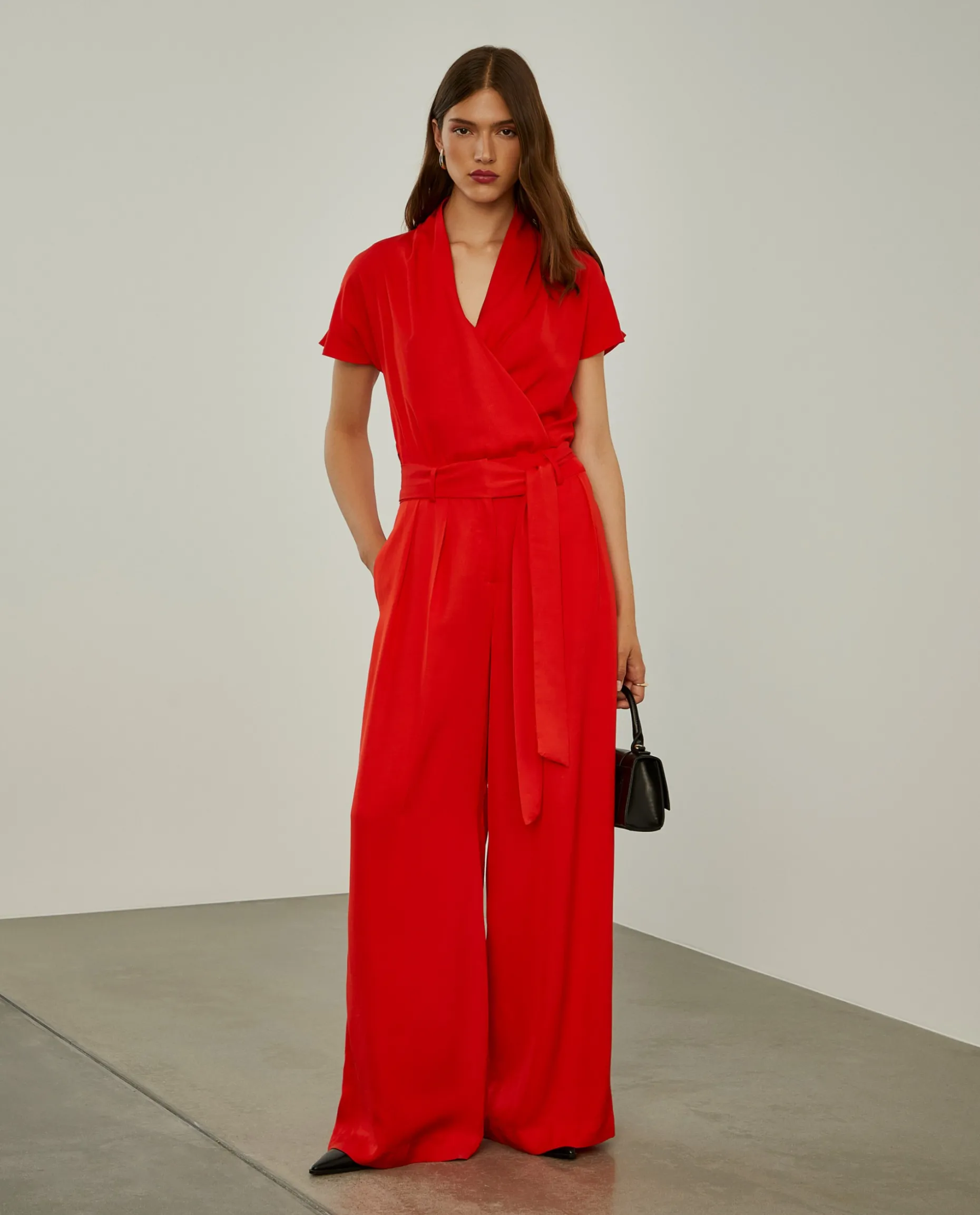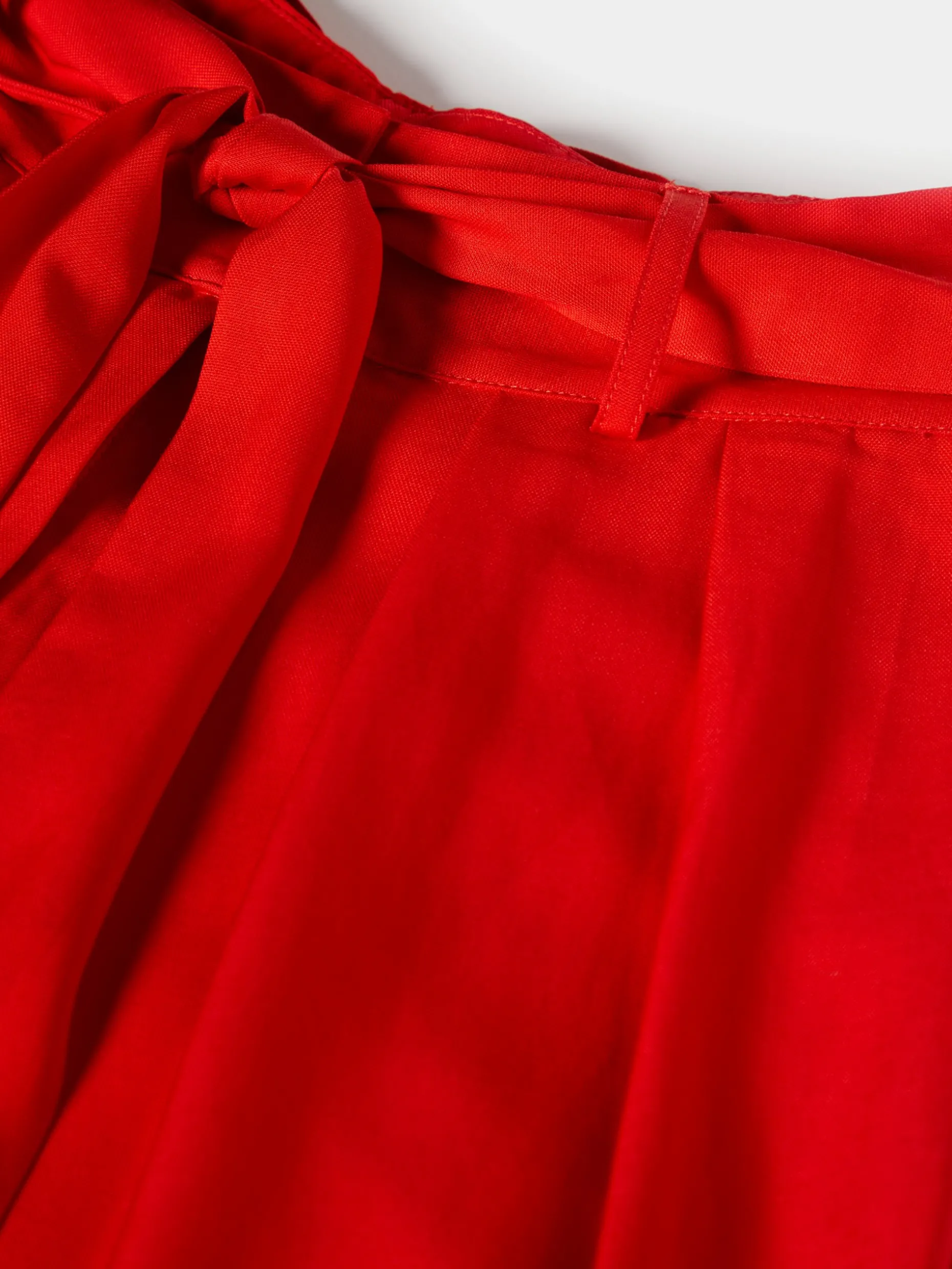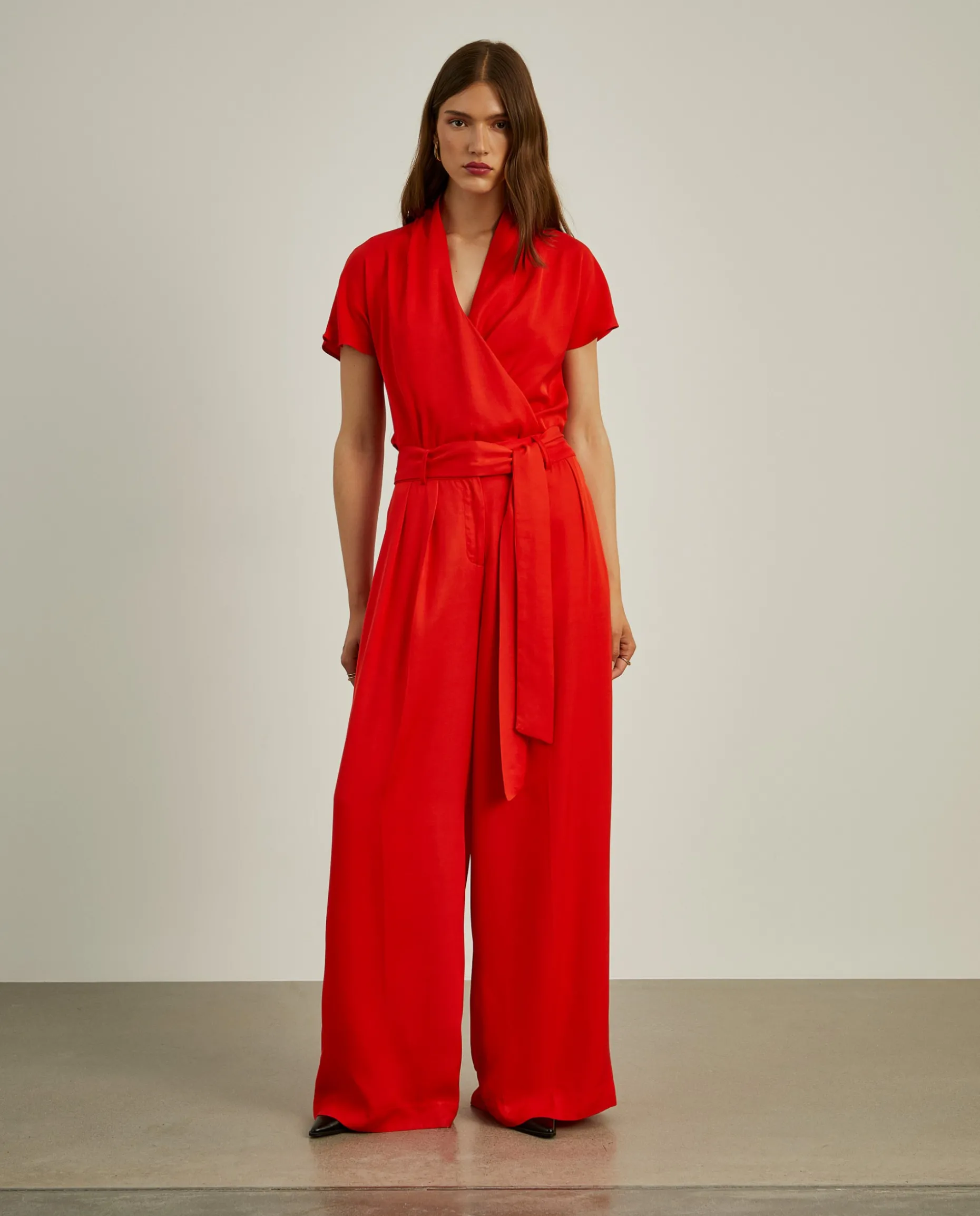 Calças cullote, leves e fluidas, com pregas na frente e cinto em tecido para dar laçada a gosto. Além do cinto, também fecham com botão, guto e fecho de correr ocultos por carcela. Uma escolha versátil e elegante, adaptando-se facilmente a várias ocasiões, consoante a conjugação. Para um total look, veja também a blusa da mesma coleção.