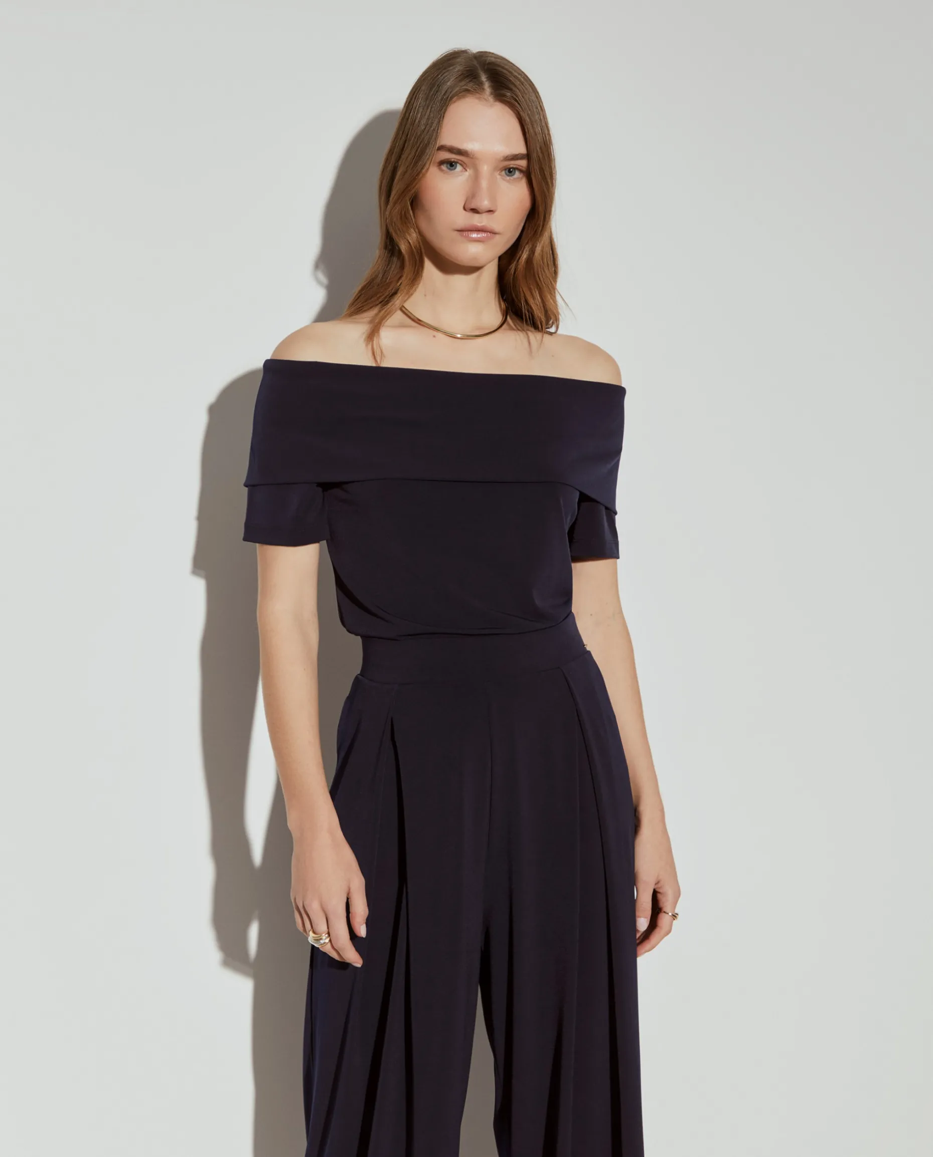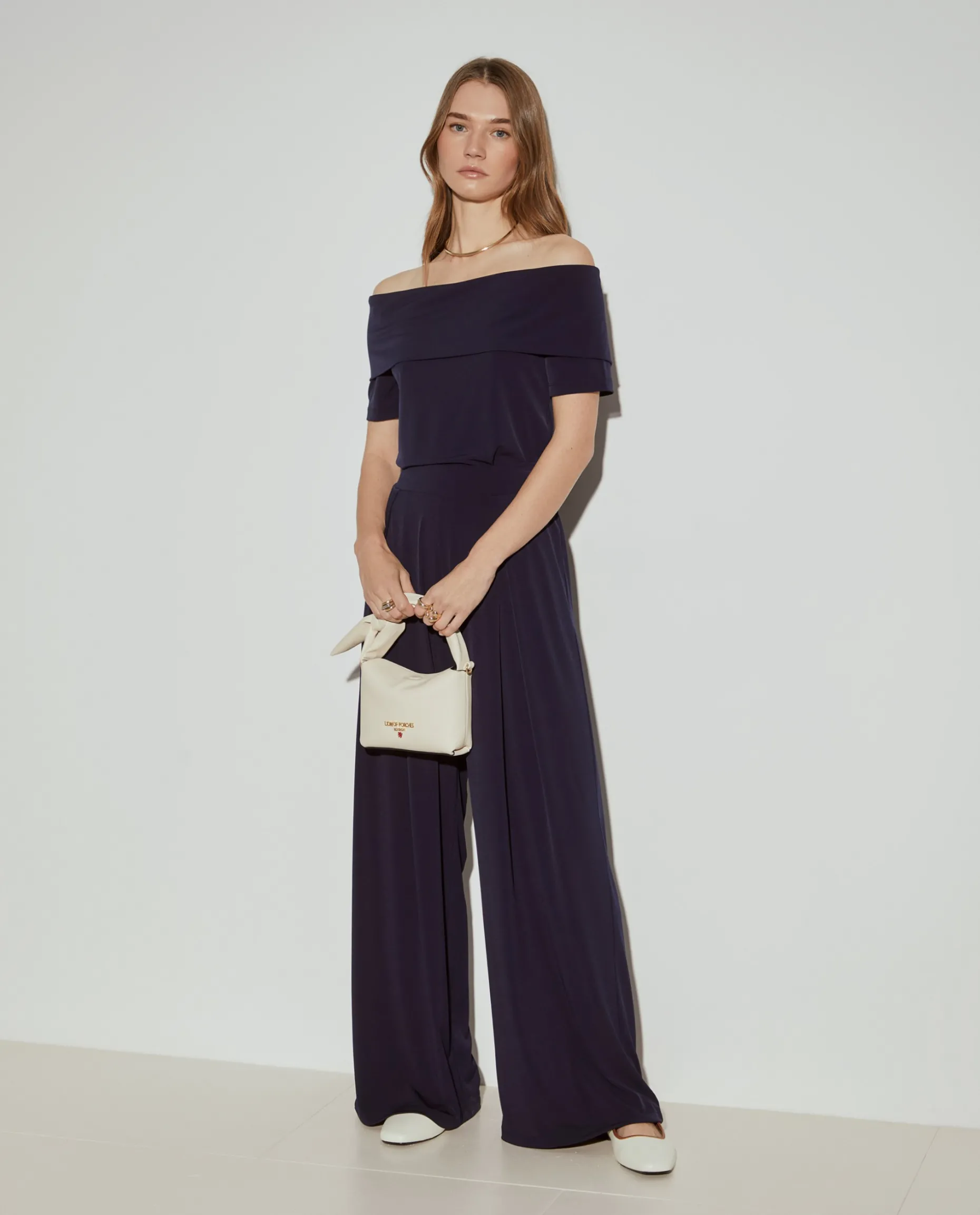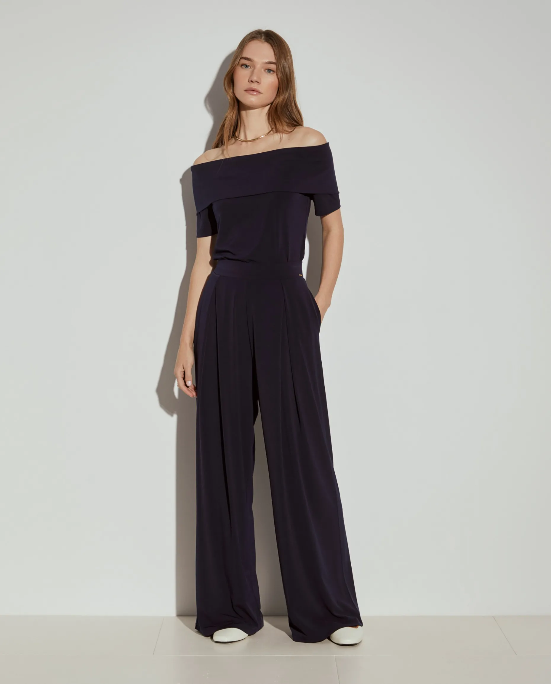 Calças wide leg, de malha fluída, leves e confortáveis. Com cintura elástica, e pregas na parte superior. Para um total look, veja também o top da mesma coleção.