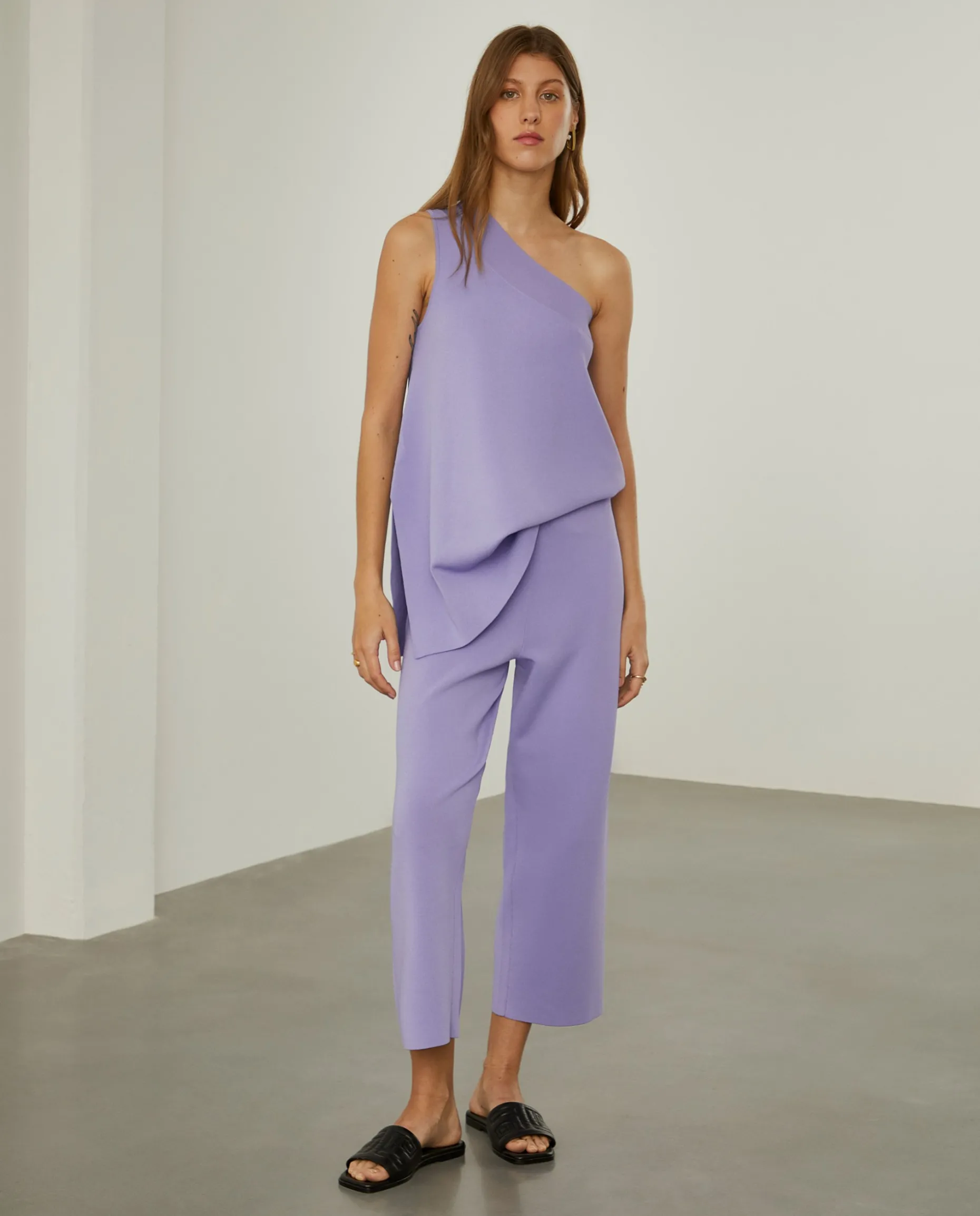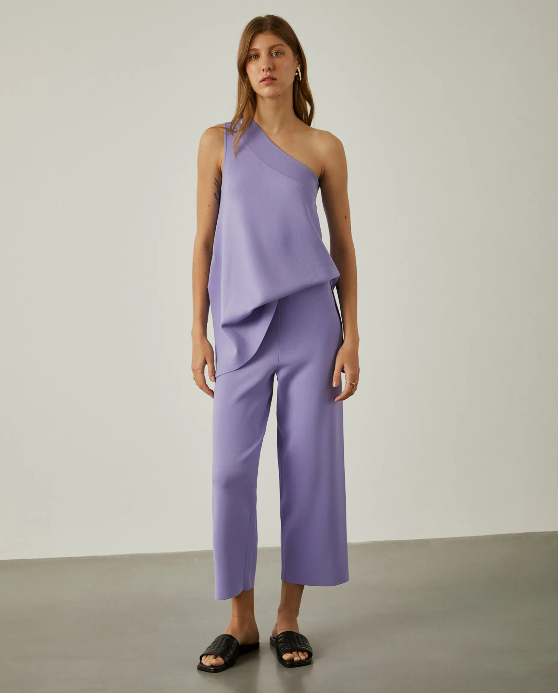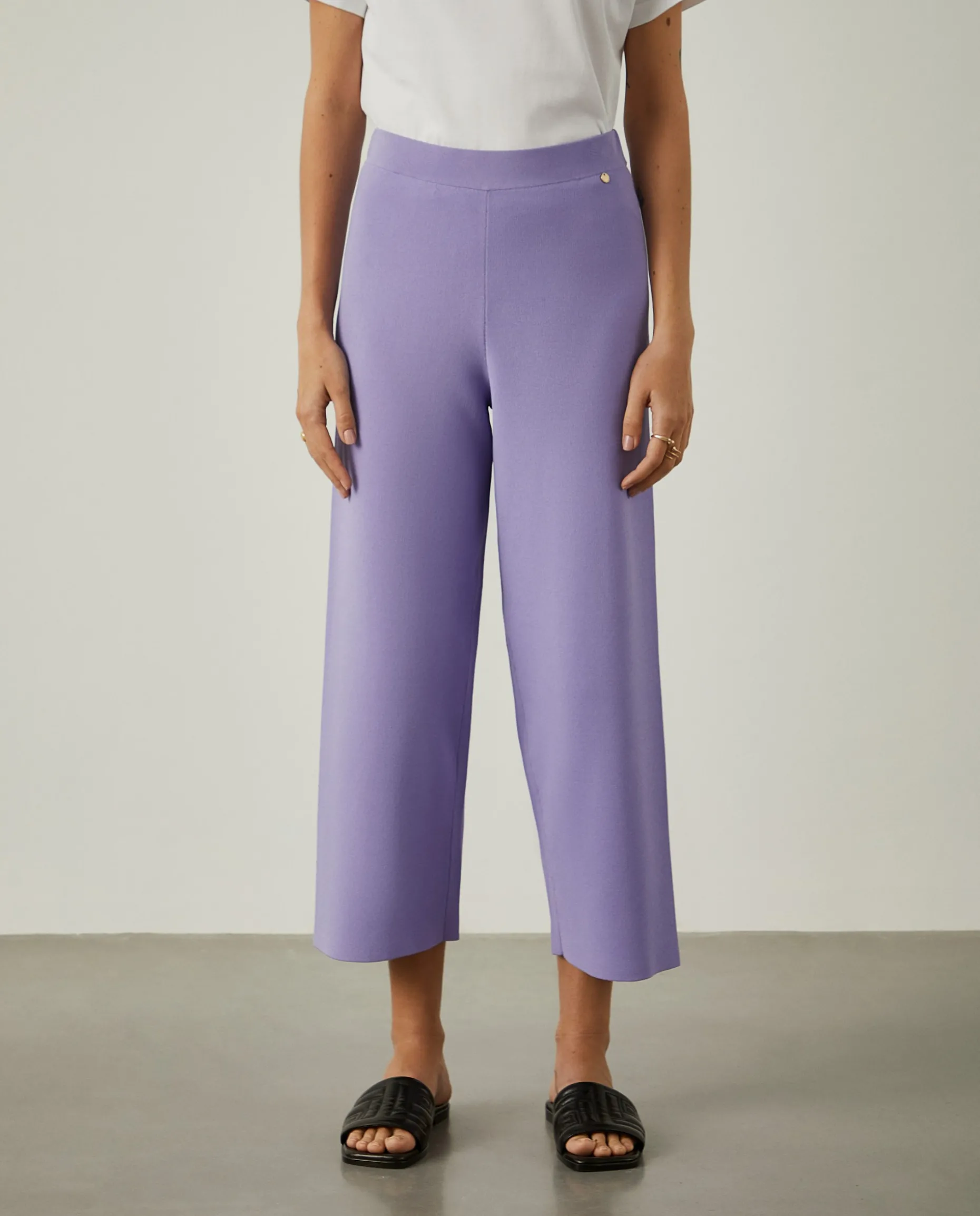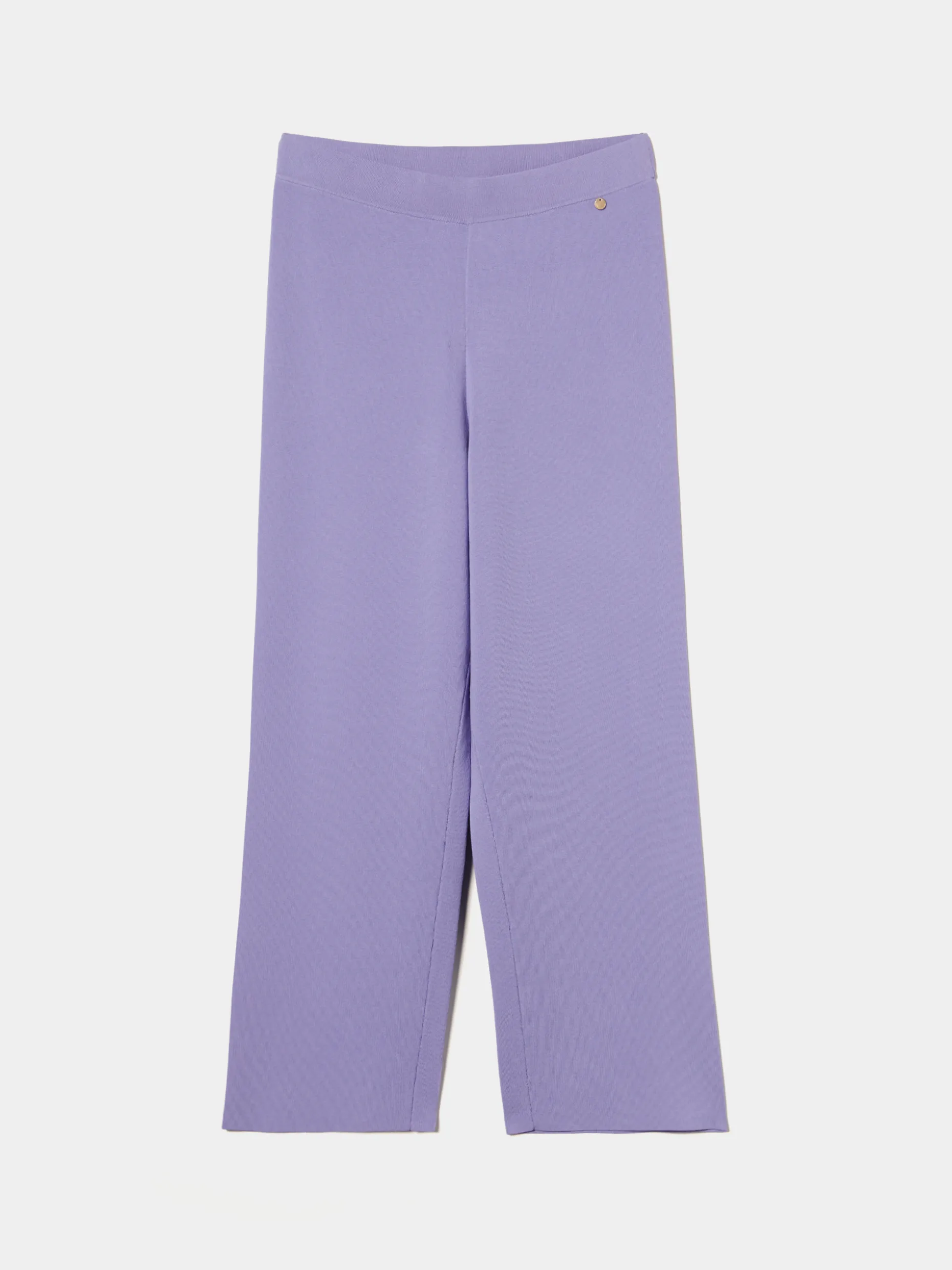 Para um look leve e confortável, estas calças largas de malha têm cintura elástica e poderá combiná-las com o top da mesma coleção.