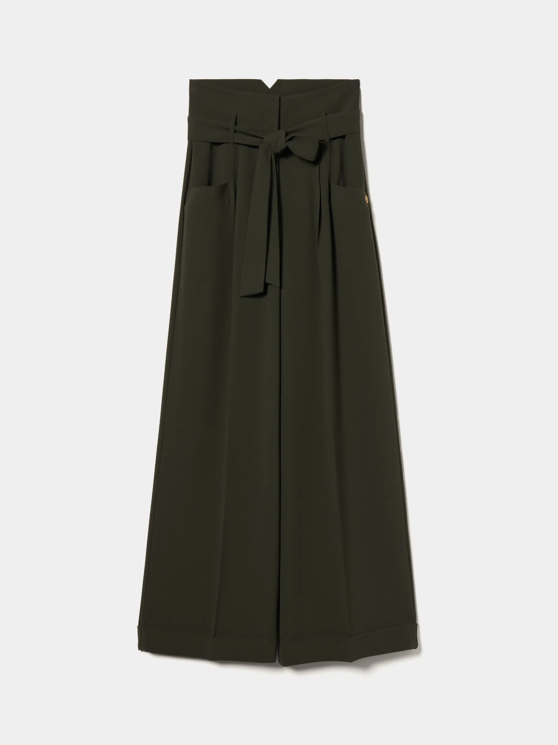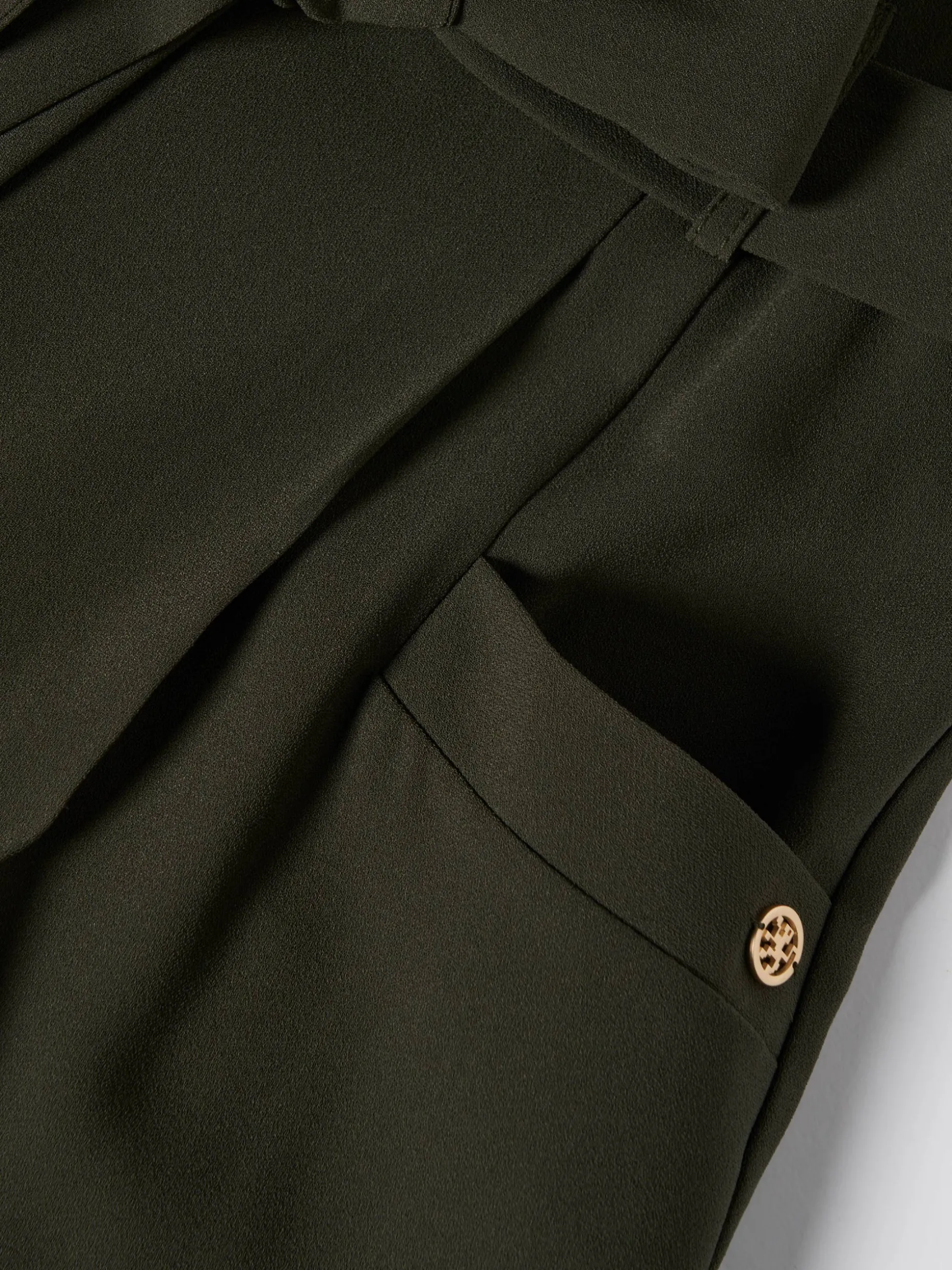Elegantes e confortáveis, estas calças pantalona são a escolha perfeita para um look versátil já que facilmente se adaptam a várias ocasiões. Com bolsos na frente e cinto no mesmo tom e tecido para dar laçada.