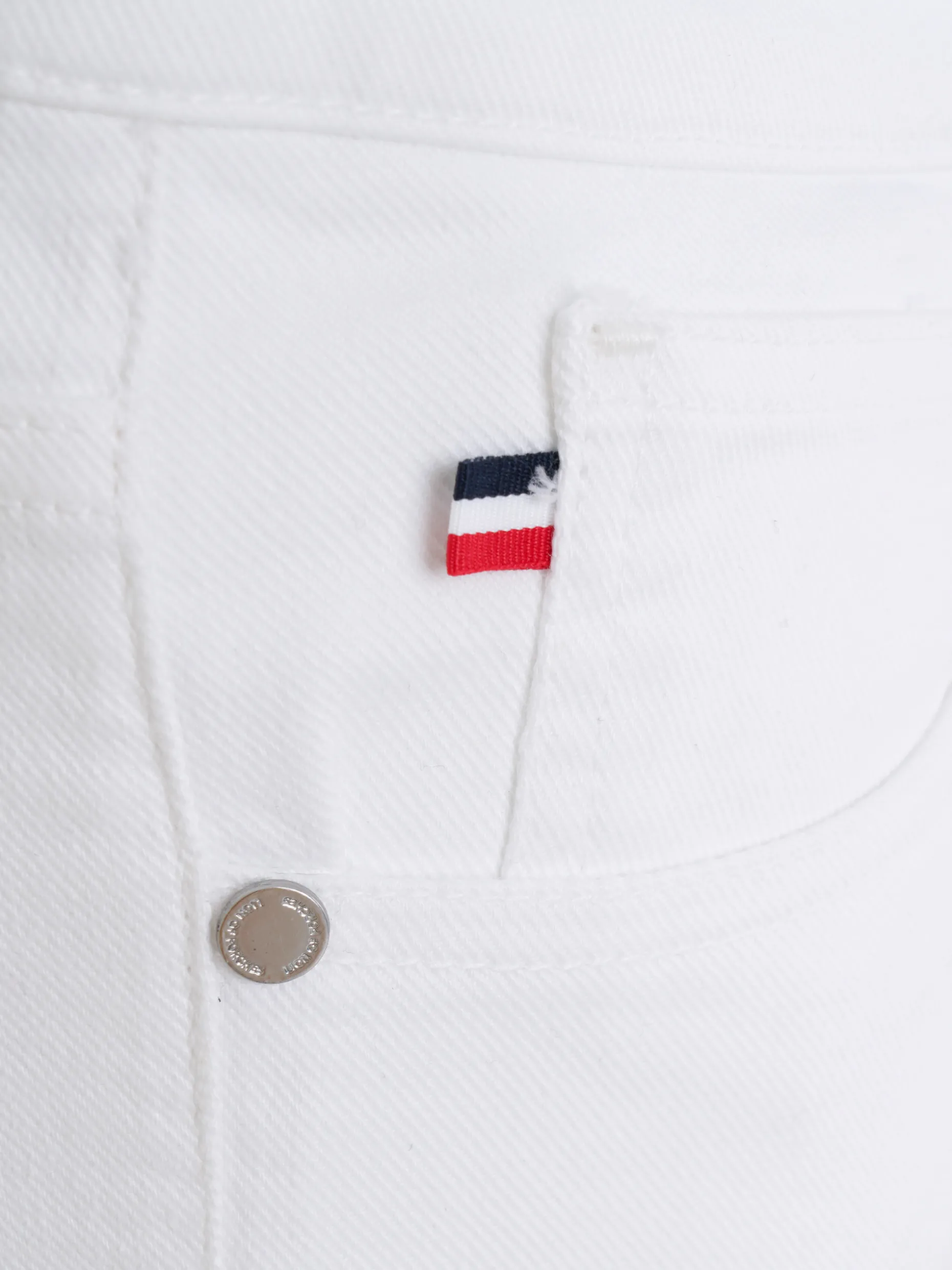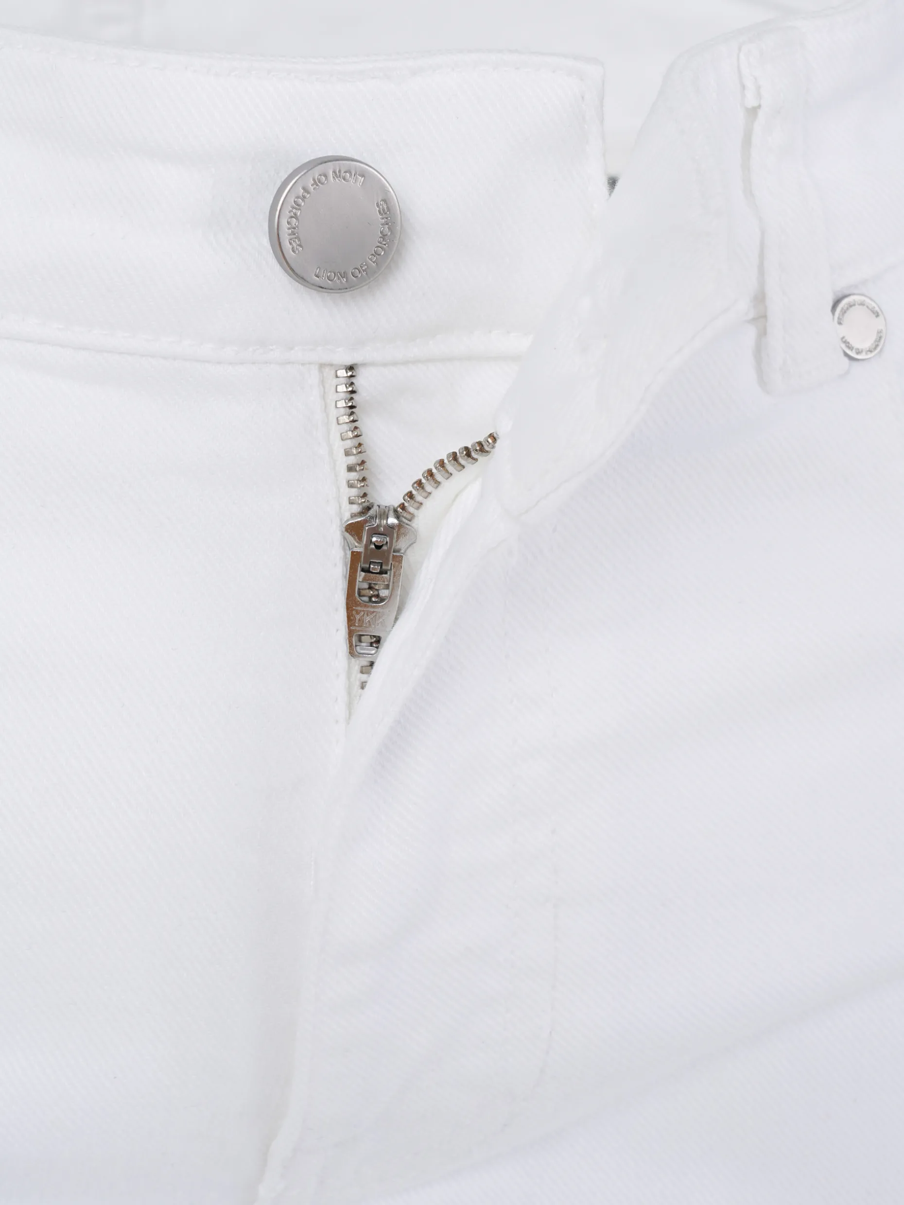 Calças slim fit. Confecionadas com algodão stretch. Com cinco bolsos. Botões e rebites personalizados. Etiqueta personalizadana parte posterior do cinto Fita decorativa no bolso de moedas.