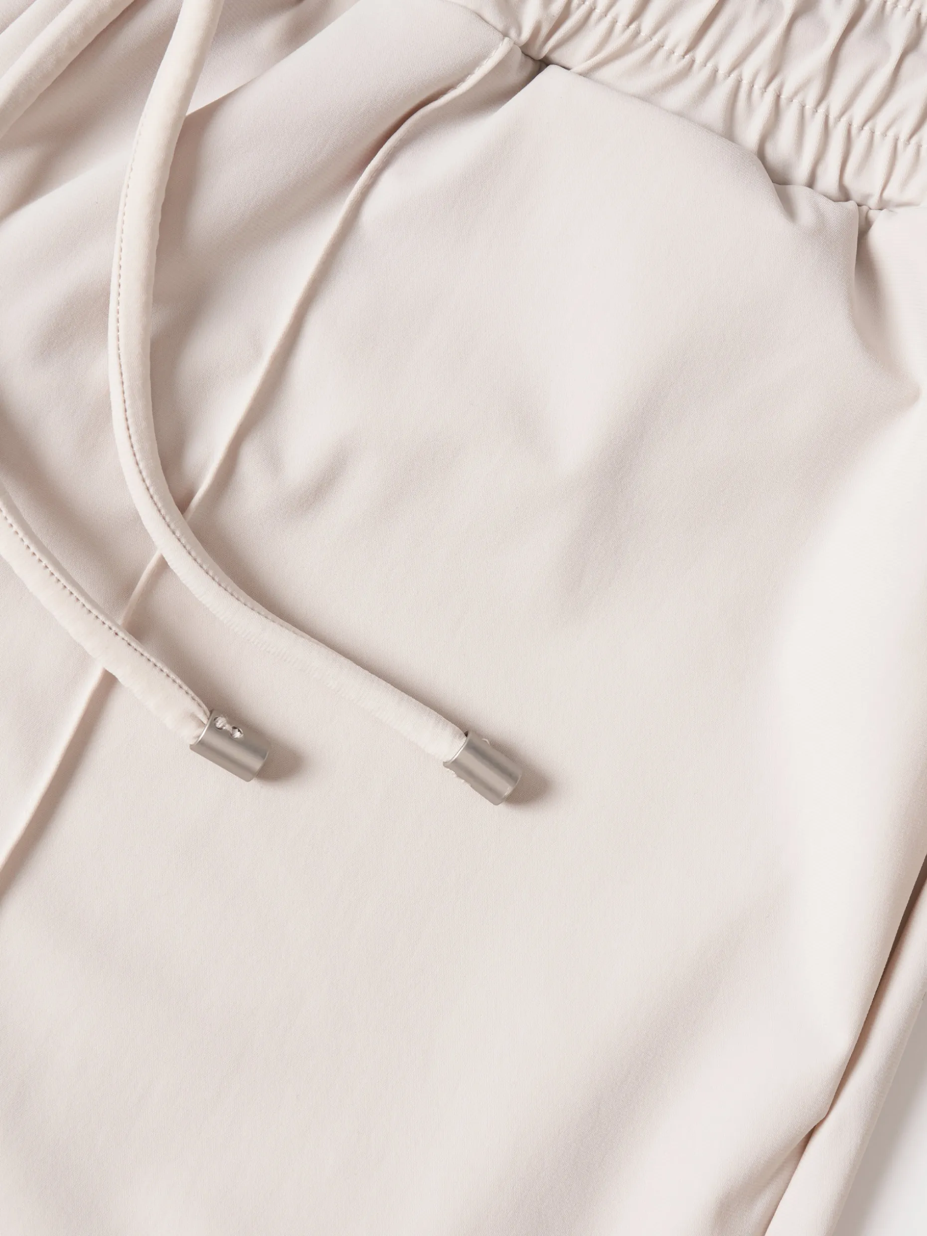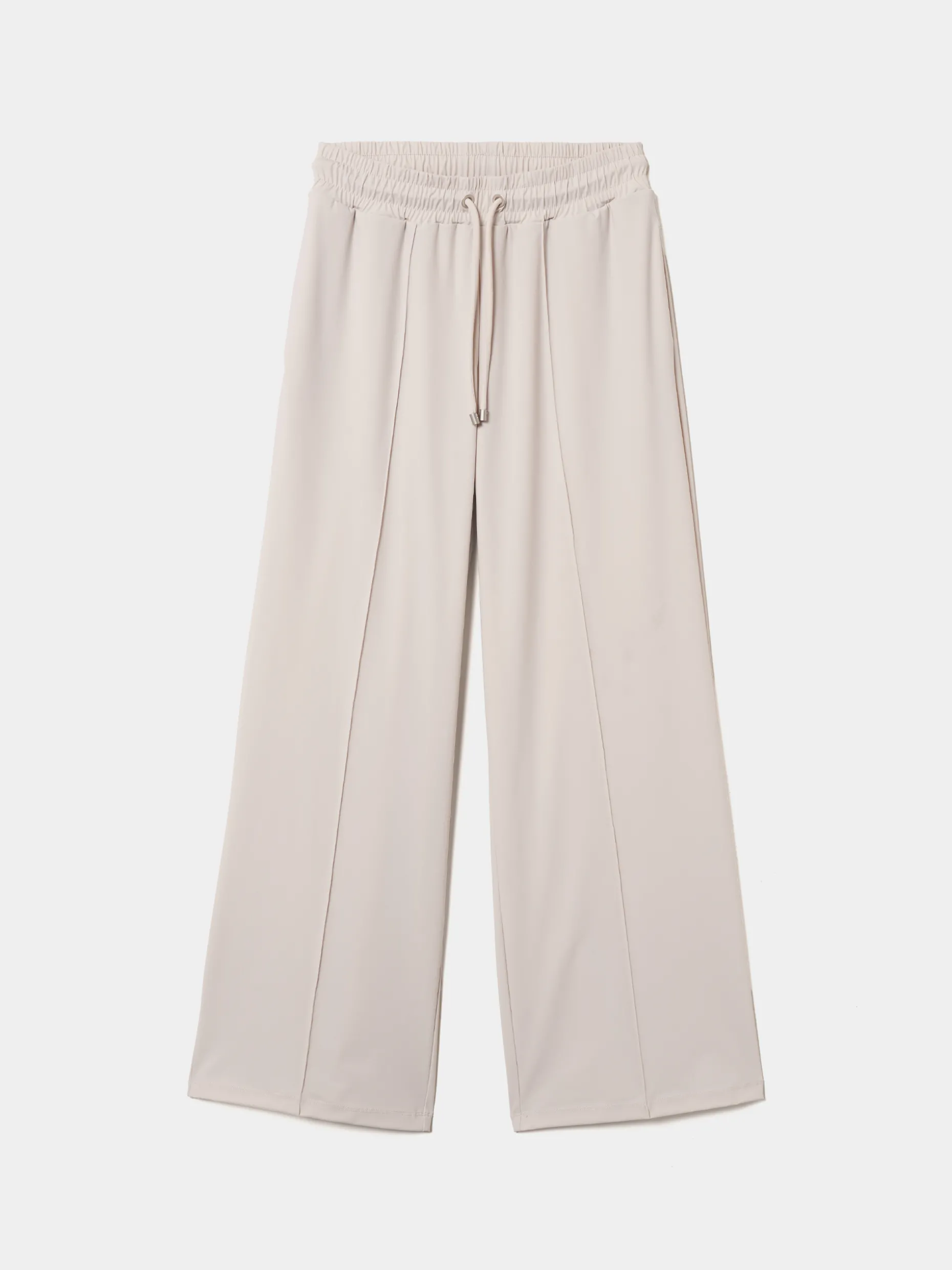 Uma peça que alia conforto a um estilo contemporâneo. Esta calça de perna larga em malha técnica promove uma silhueta fluida, com cintura elástica e cordões ajustáveis para uma adaptação prática e descontraída. Os bolsos laterais acrescentam funcionalidade, mantendo o visual leve e despojado. Com nervuras na frente. Ideal para compor um matching set com a sweater da mesma coleção.