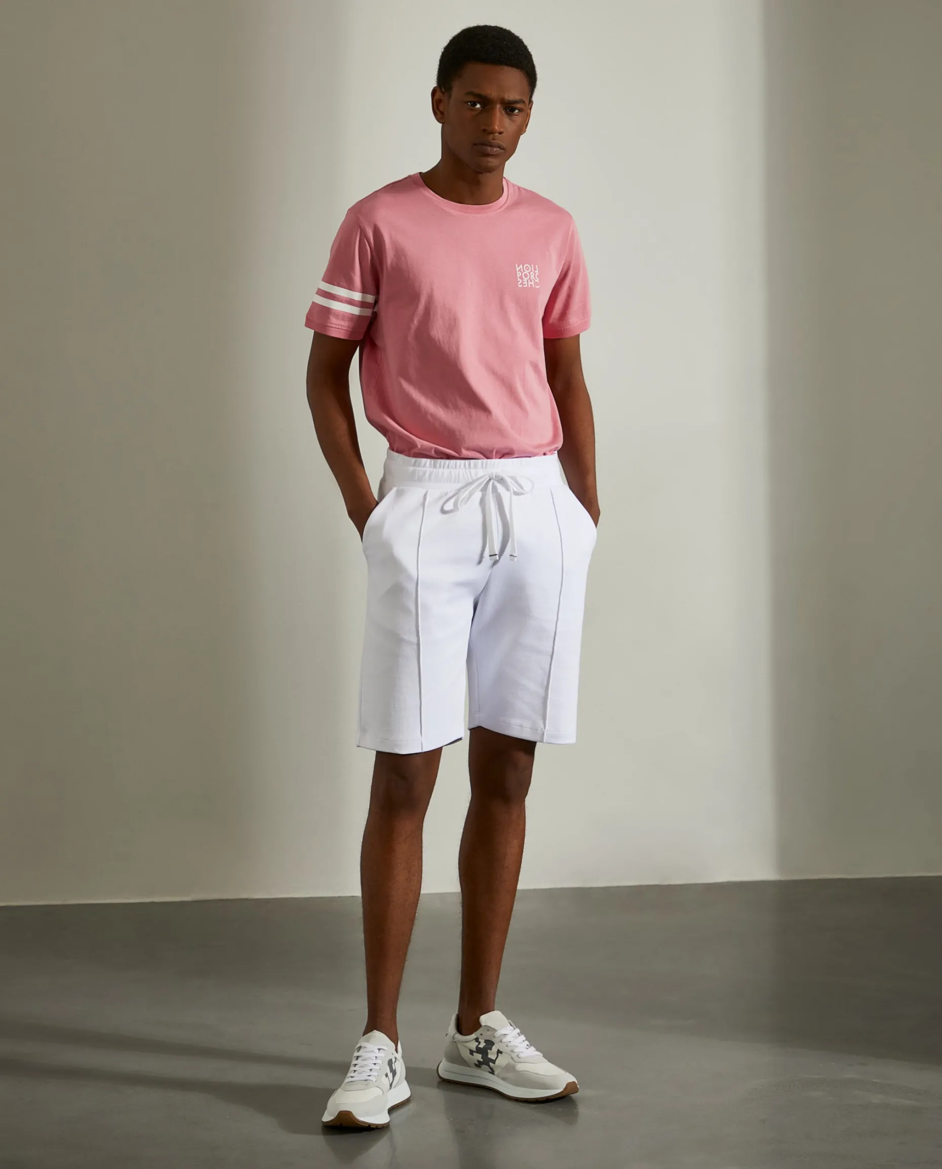 Calções em algodão com cordões à cor. Bolso traseiro com estampado Lion of Porches em contraste.