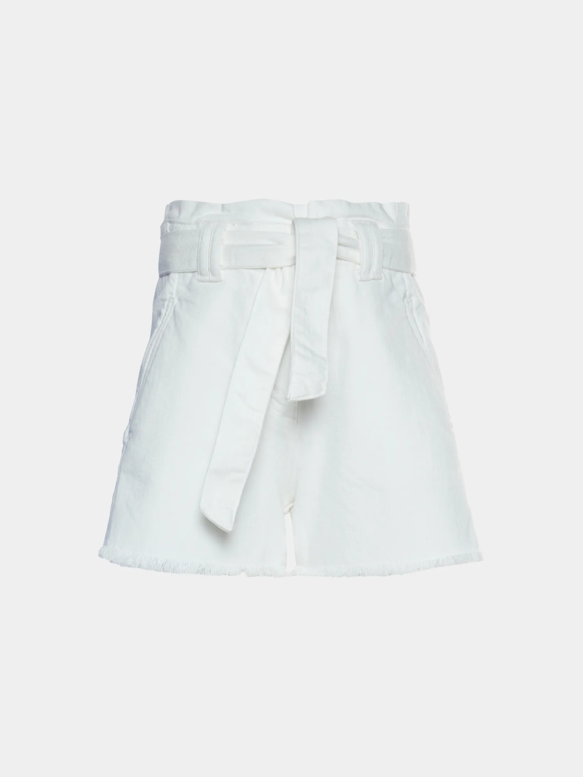 Calções em sarja com cinto para fazer laço. Estampado no bolso traseiro em contraste.