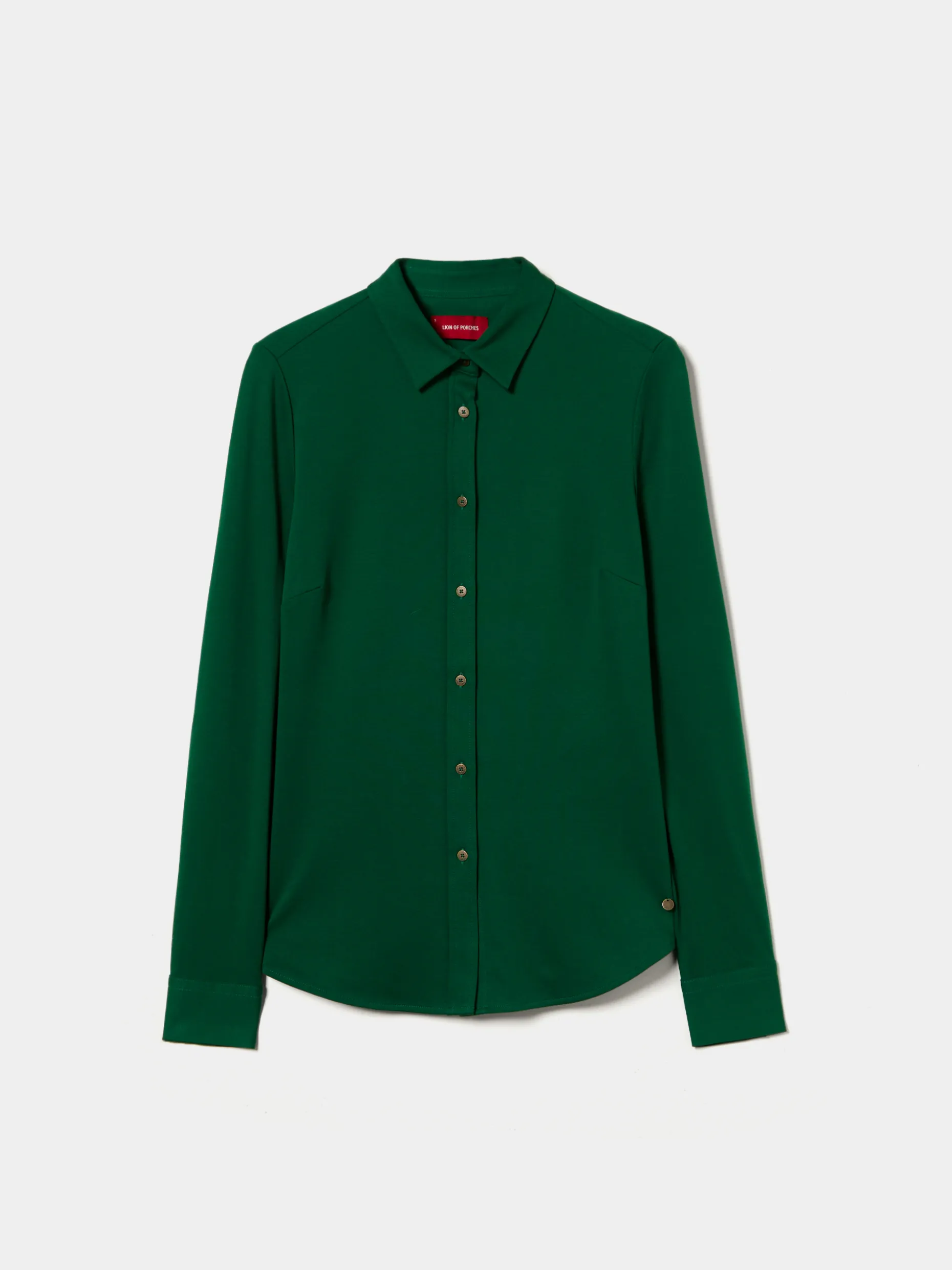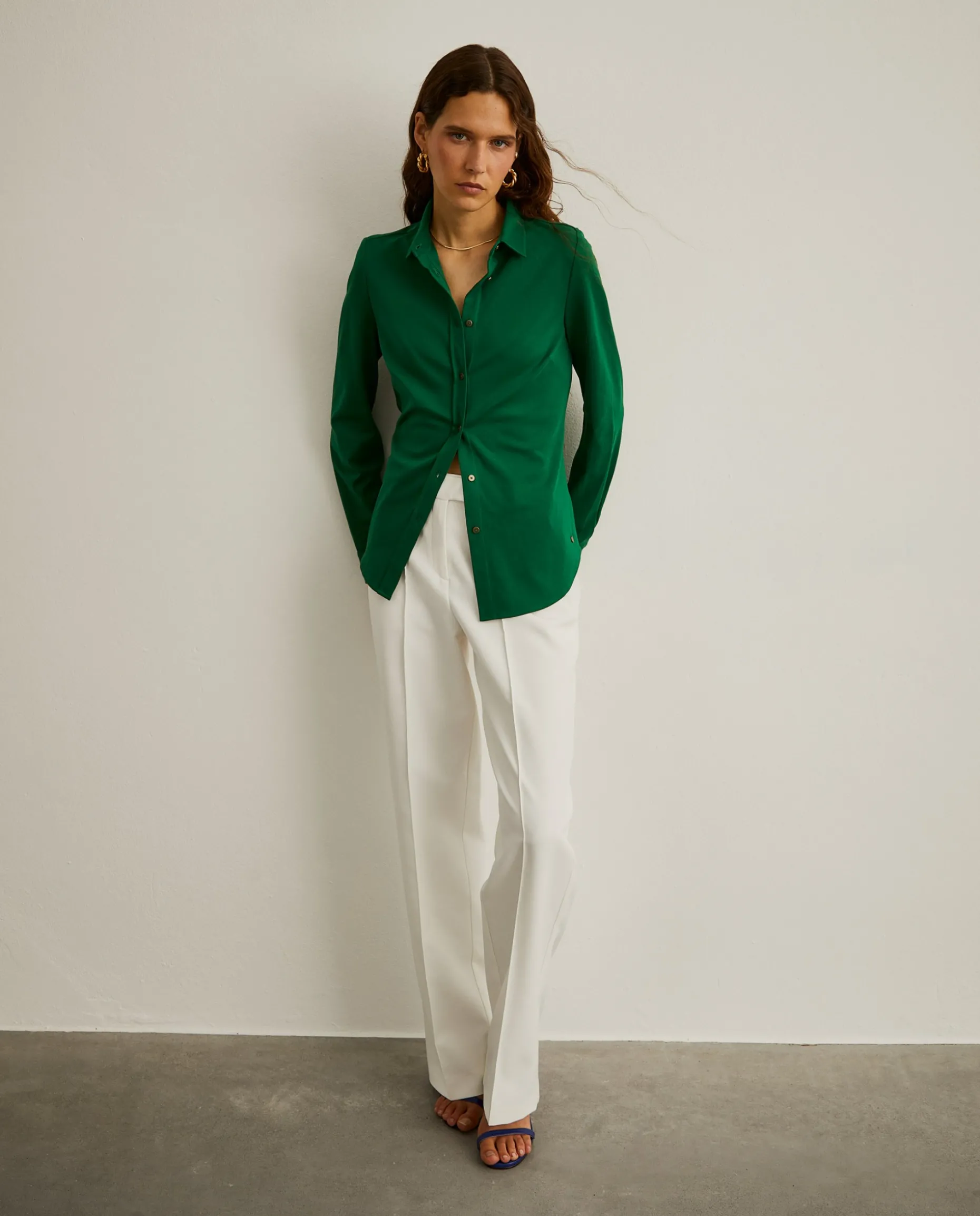 Camisa regular fit confecionada em malha 100% algodão, uma escolha leve e confortável para o seu outfit. De colarinho clássico, aperta na frente com botões noutro tom, assim como nos punhos.