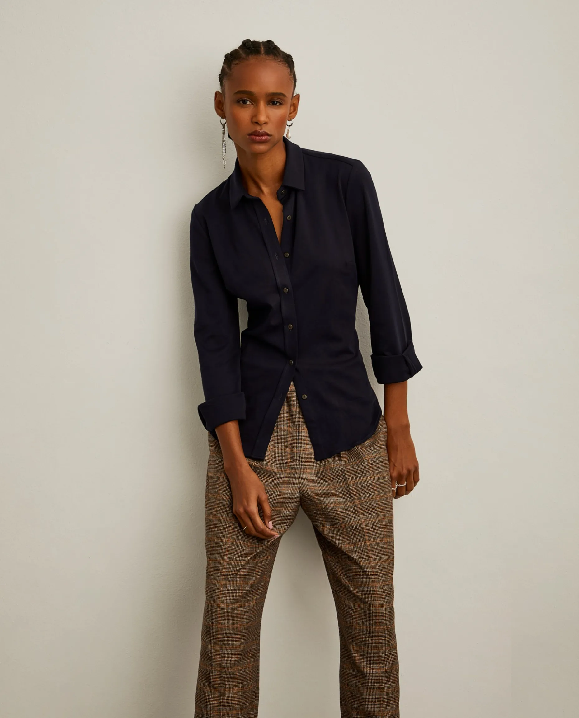 Camisa slim fit confecionada em malha 100% algodão, uma escolha leve e confortável para o seu outfit. De colarinho clássico, aperta na frente com botões noutro tom, assim como nos punhos.