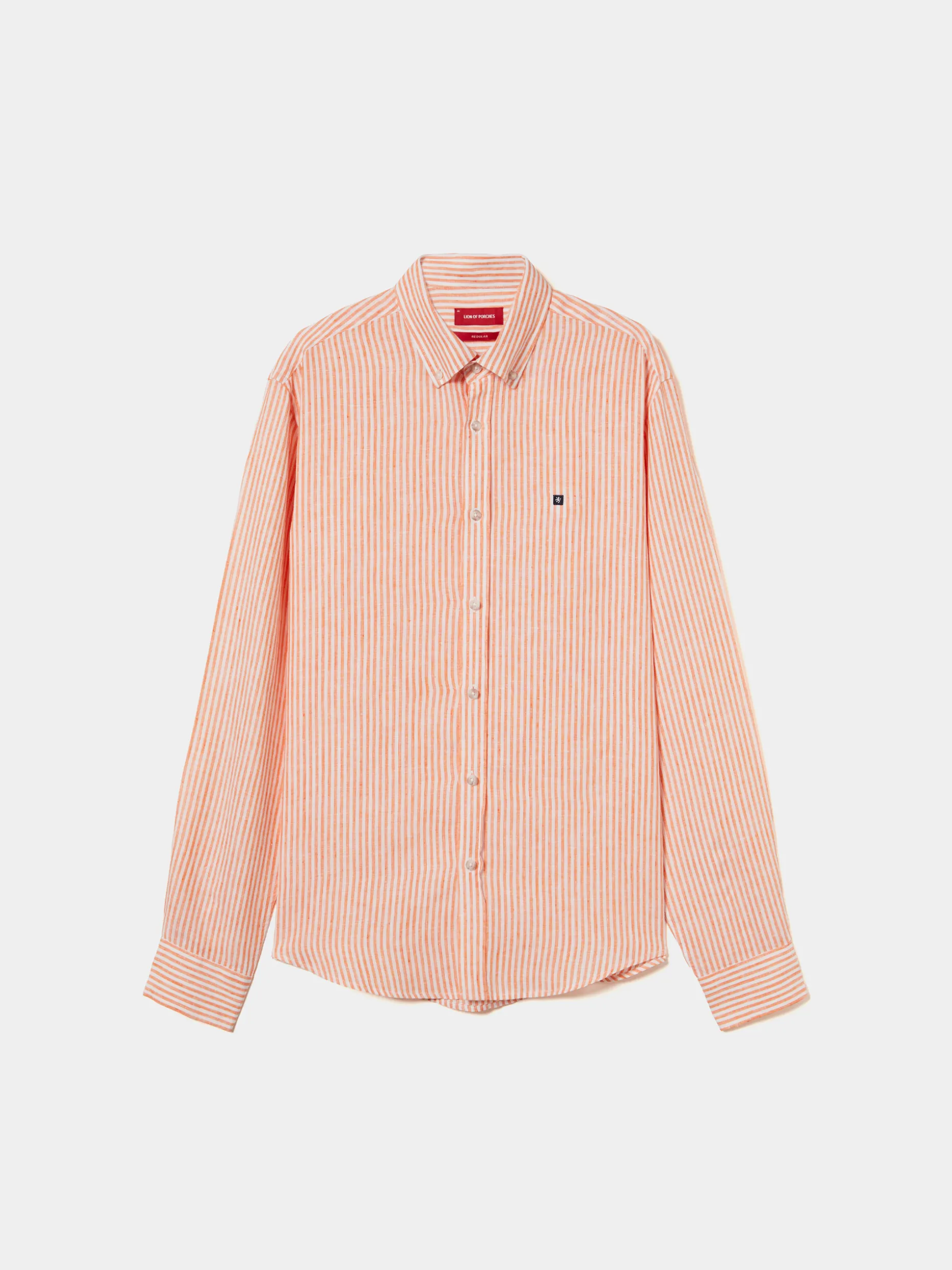 Perfeita para as estações mais quentes, esta camisa de manga comprida tem padrão de riscas e é confecionada, na totalidade, em linho. Um material leve, fresco e respirável. Aperta com botões, não só na frente, como também nos punhos e colarinho. Finaliza com pequeno leão da marca em contraste no peito.