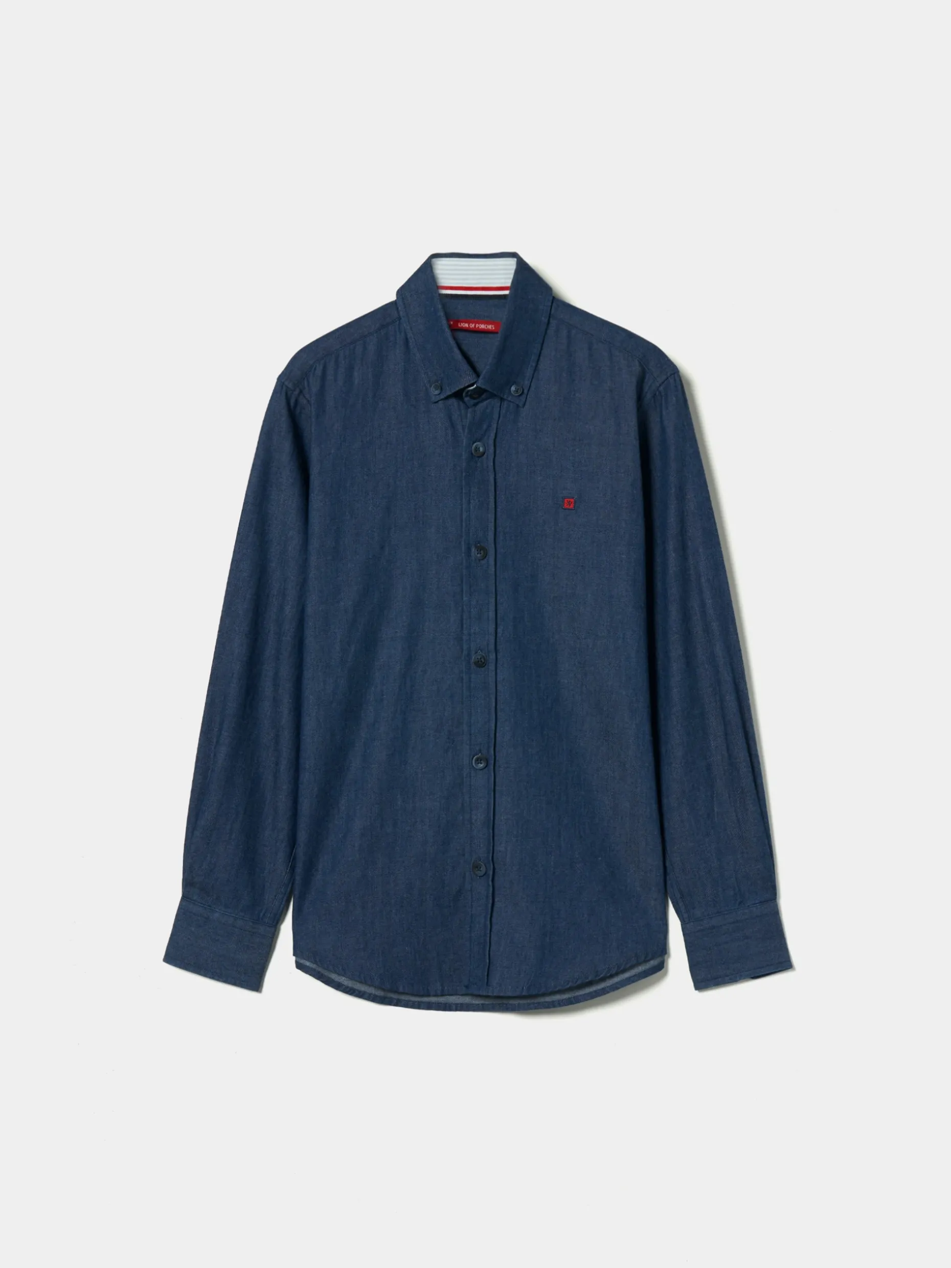 Para um look casual e descontraído, vista os miúdos com esta camisa denim de manga comprida. Aperta com botões ao tom na frente, punhos e também no colarinho. É confecionada, na totalidade, em algodão para maior conforto e suavidade.