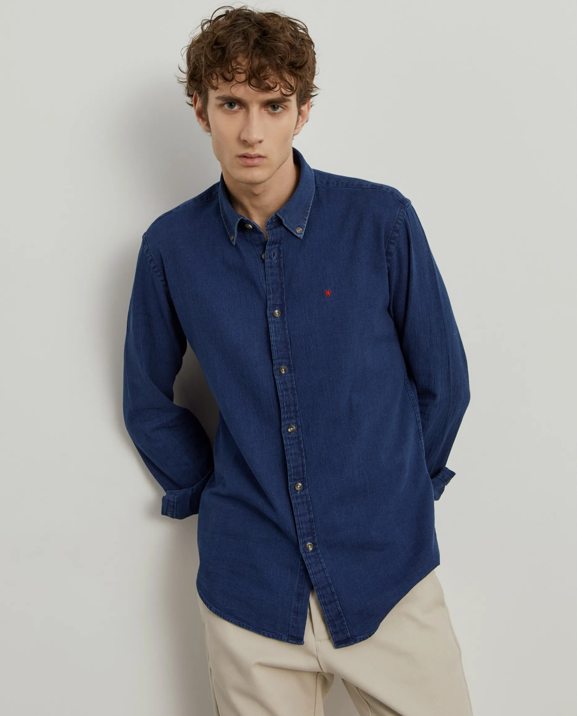 Obtenha um look casual e descontraído com esta camisa denim slim fit, de manga comprida. Com botões no colarinho.