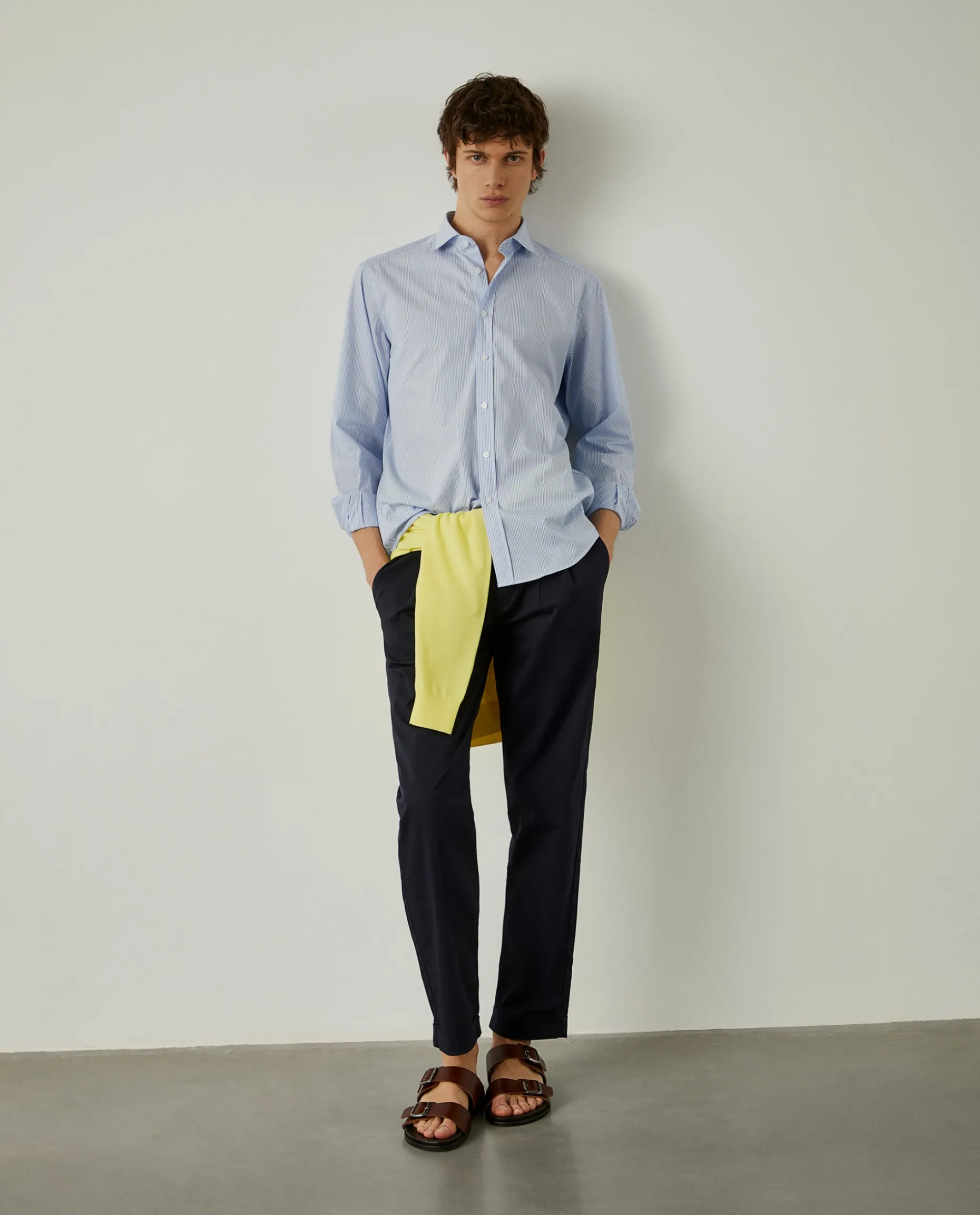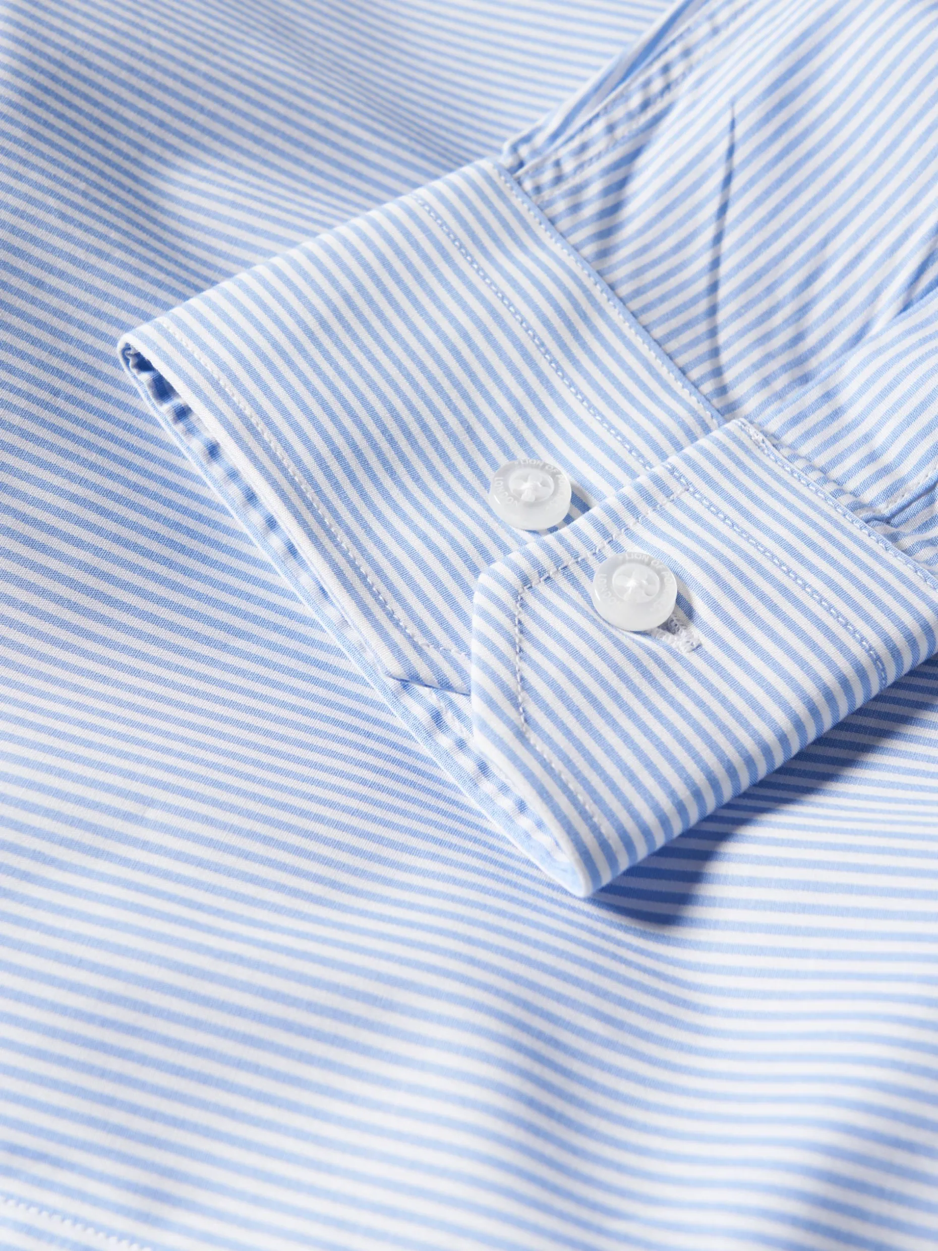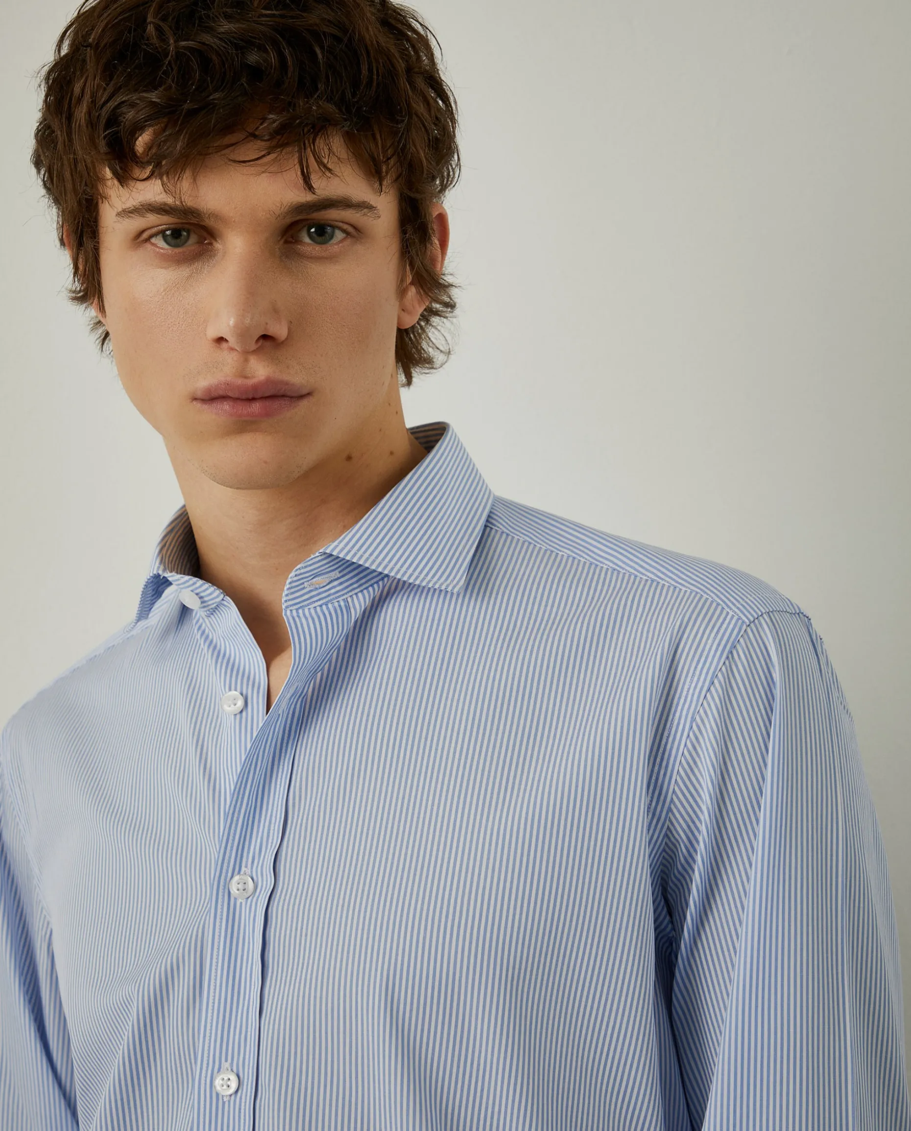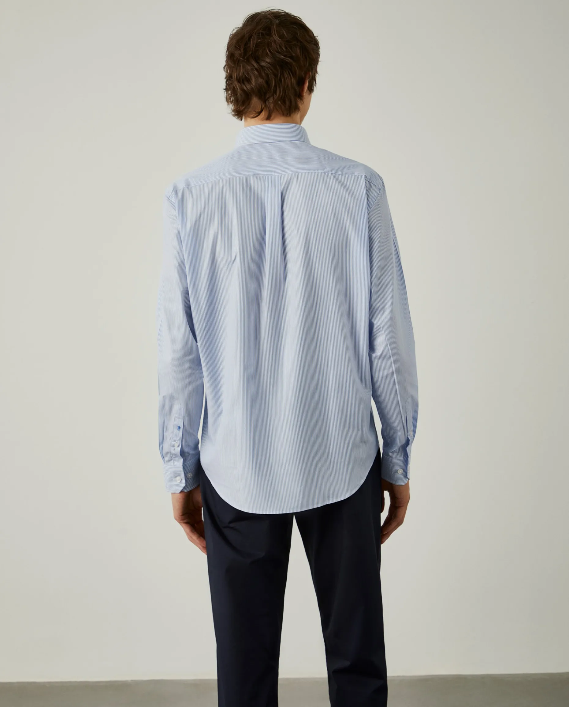 Camisa regular fit. Tecido com padrão de riscas. Colarinho “cutaway”. Branding Lion of Porches bordado no peito. Botões personalizados.