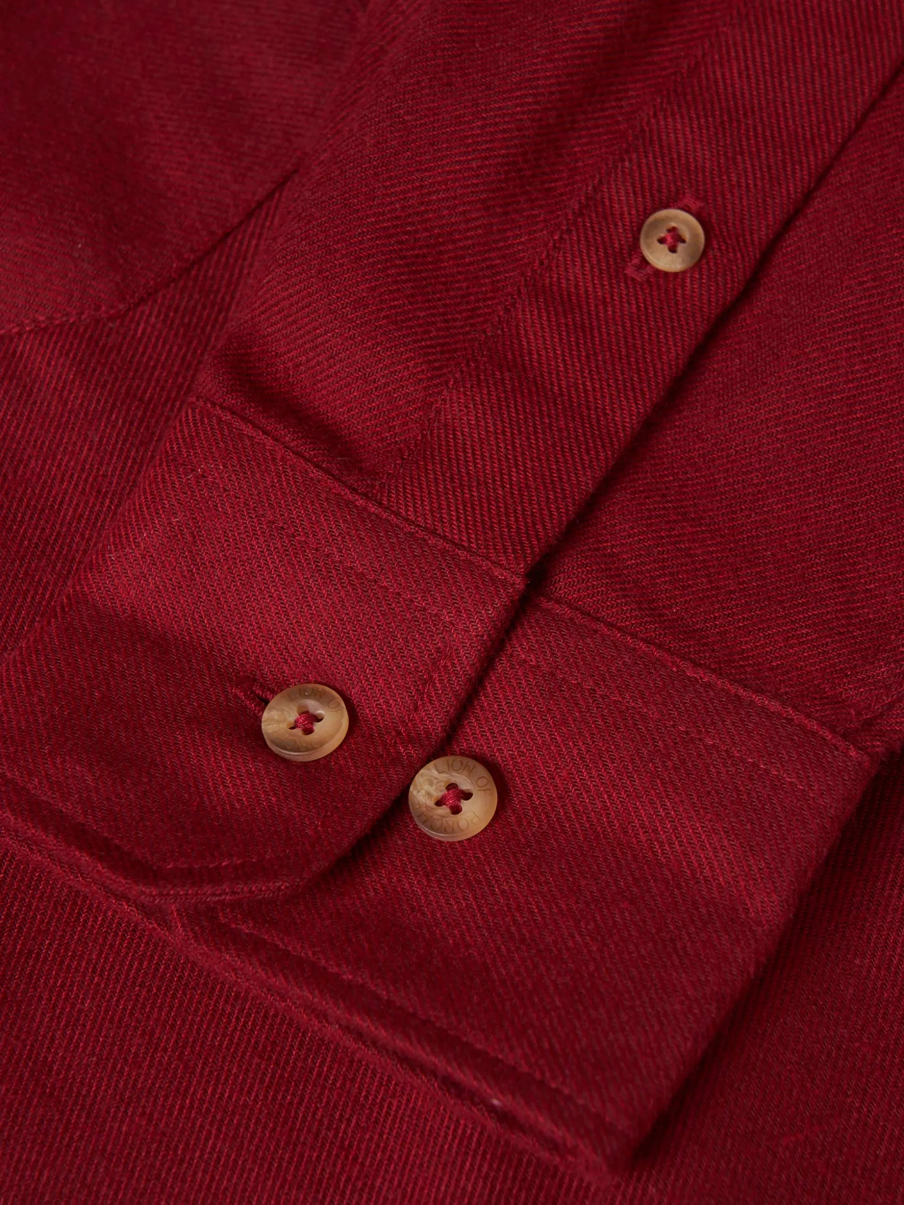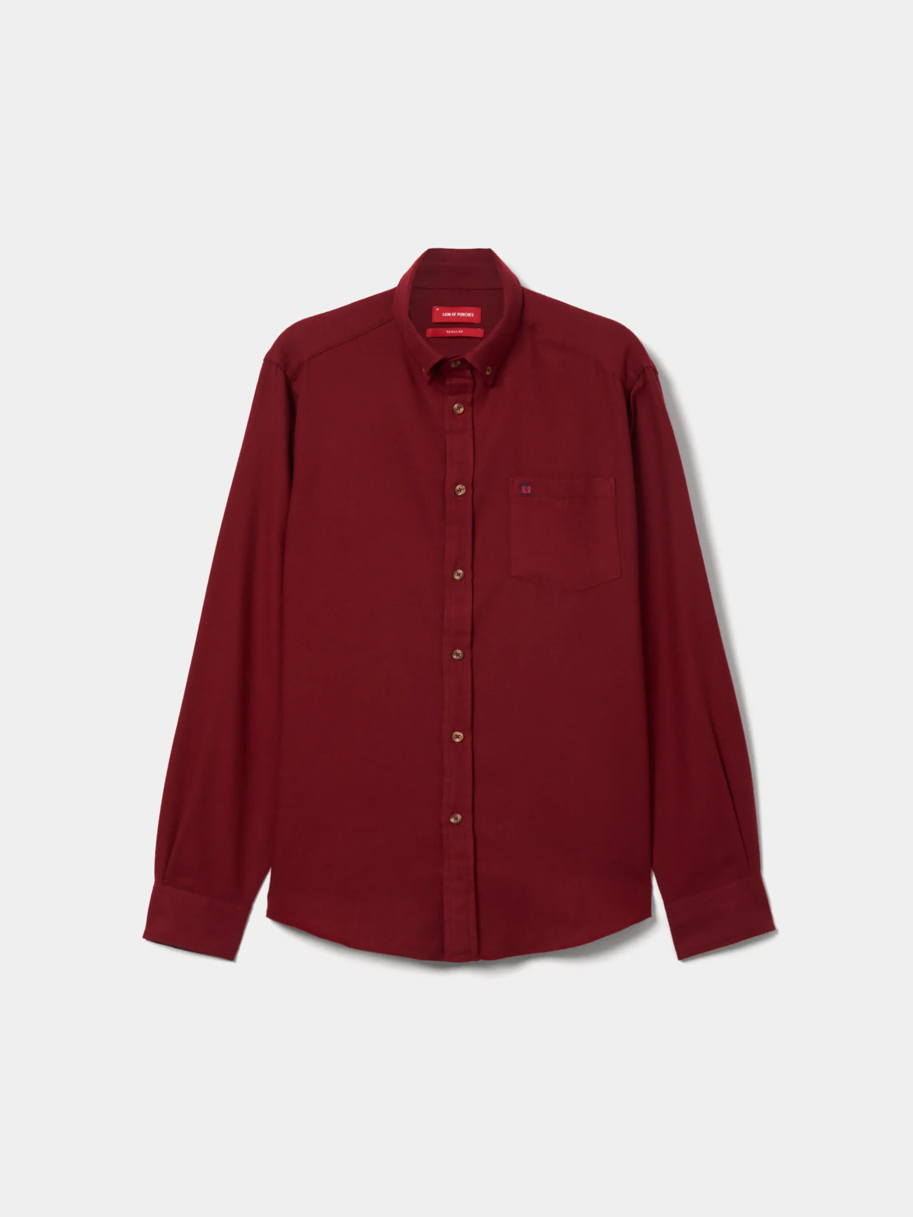Camisa de manga comprida, com abertura por botões em contraste. Com bolso no peito. Com botão no colarinho.