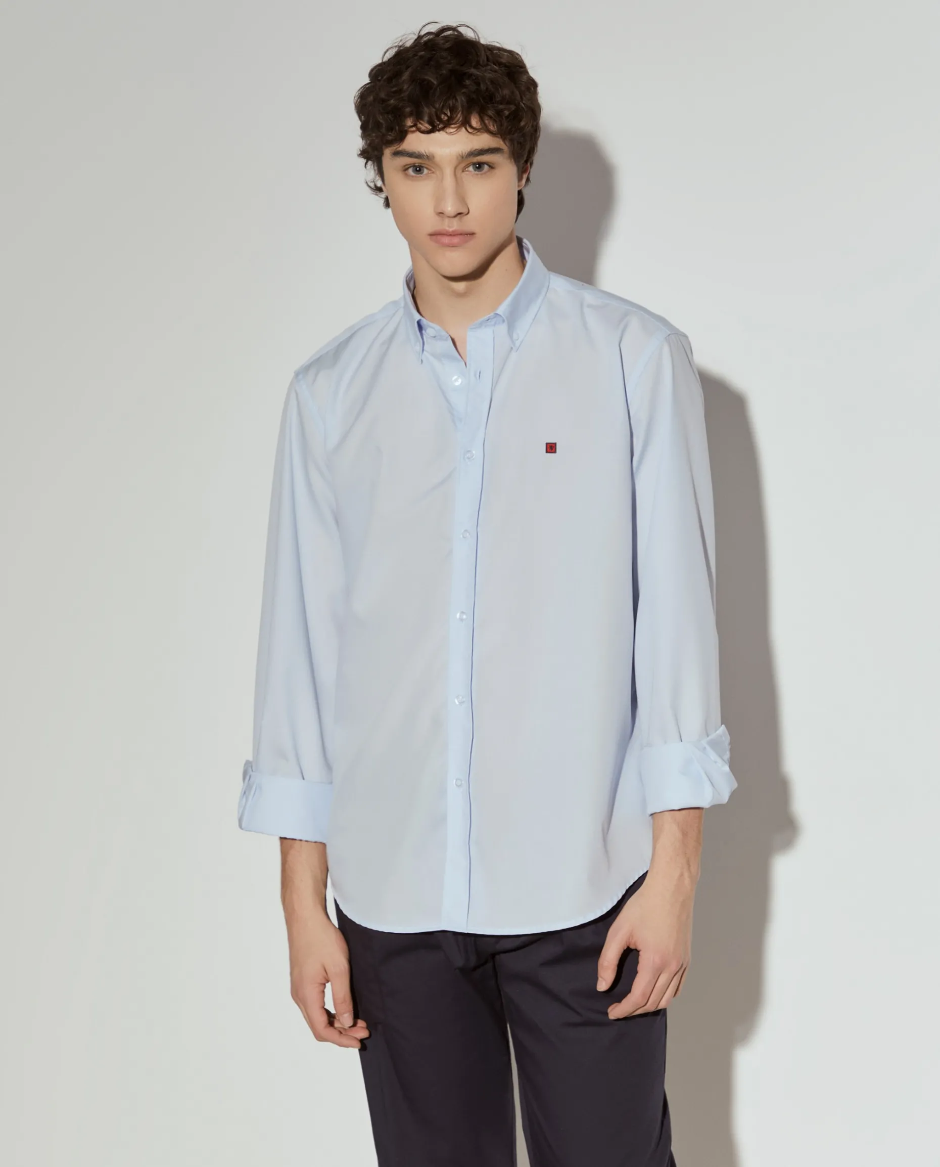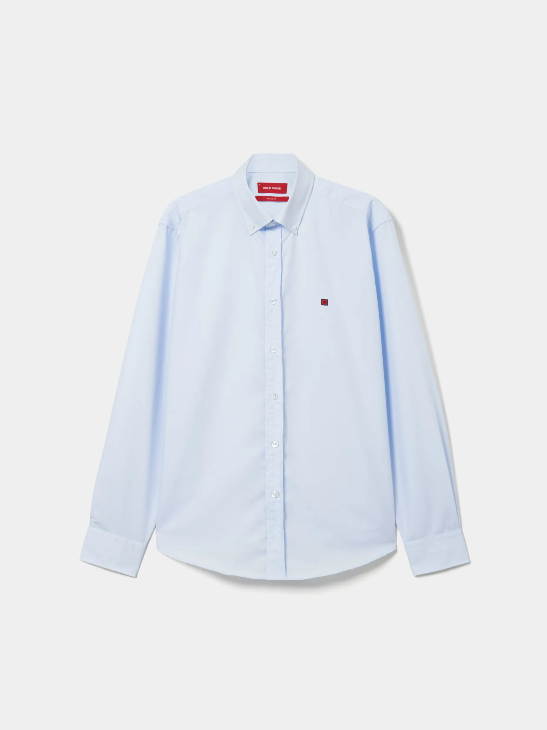 Camisa de manga comprida, de corte regular fit, confecionada em algodão. Com botões no colarinho e emblema Lion of Porches em contraste no peito.