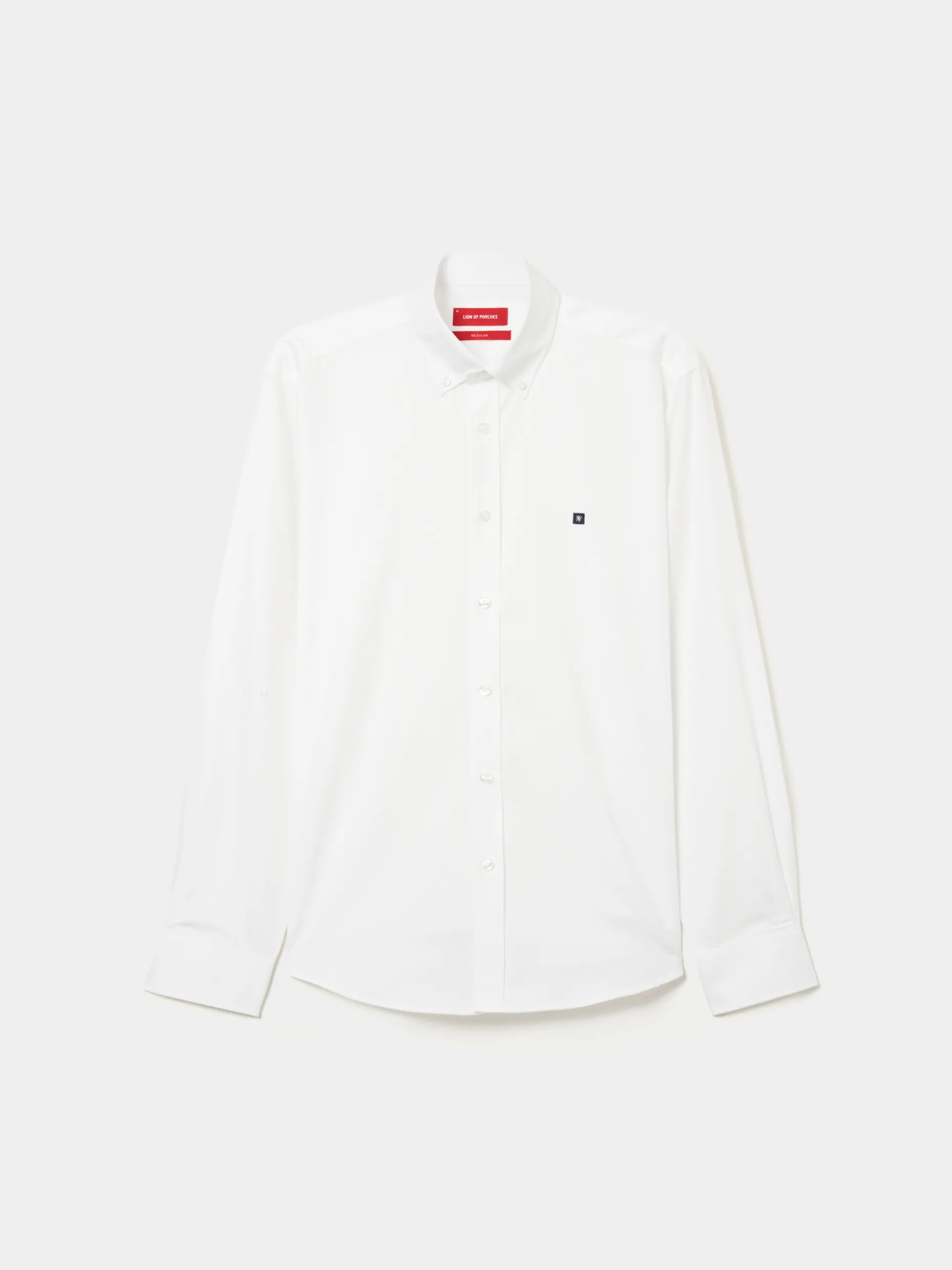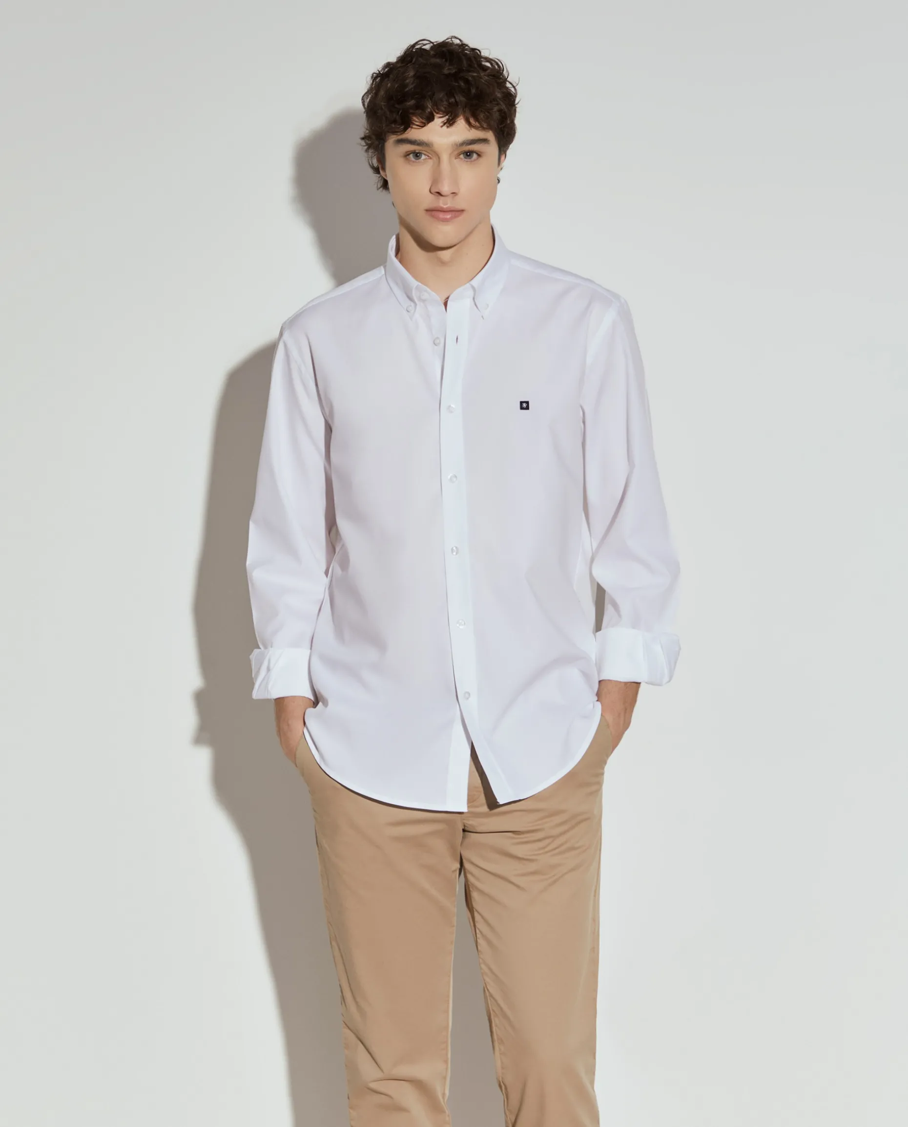 Um must-have no guarda-roupa masculino é esta camisa de algodão, regular fit. De cor lisa, à exceção do logotipo da marca no peito, em contraste.