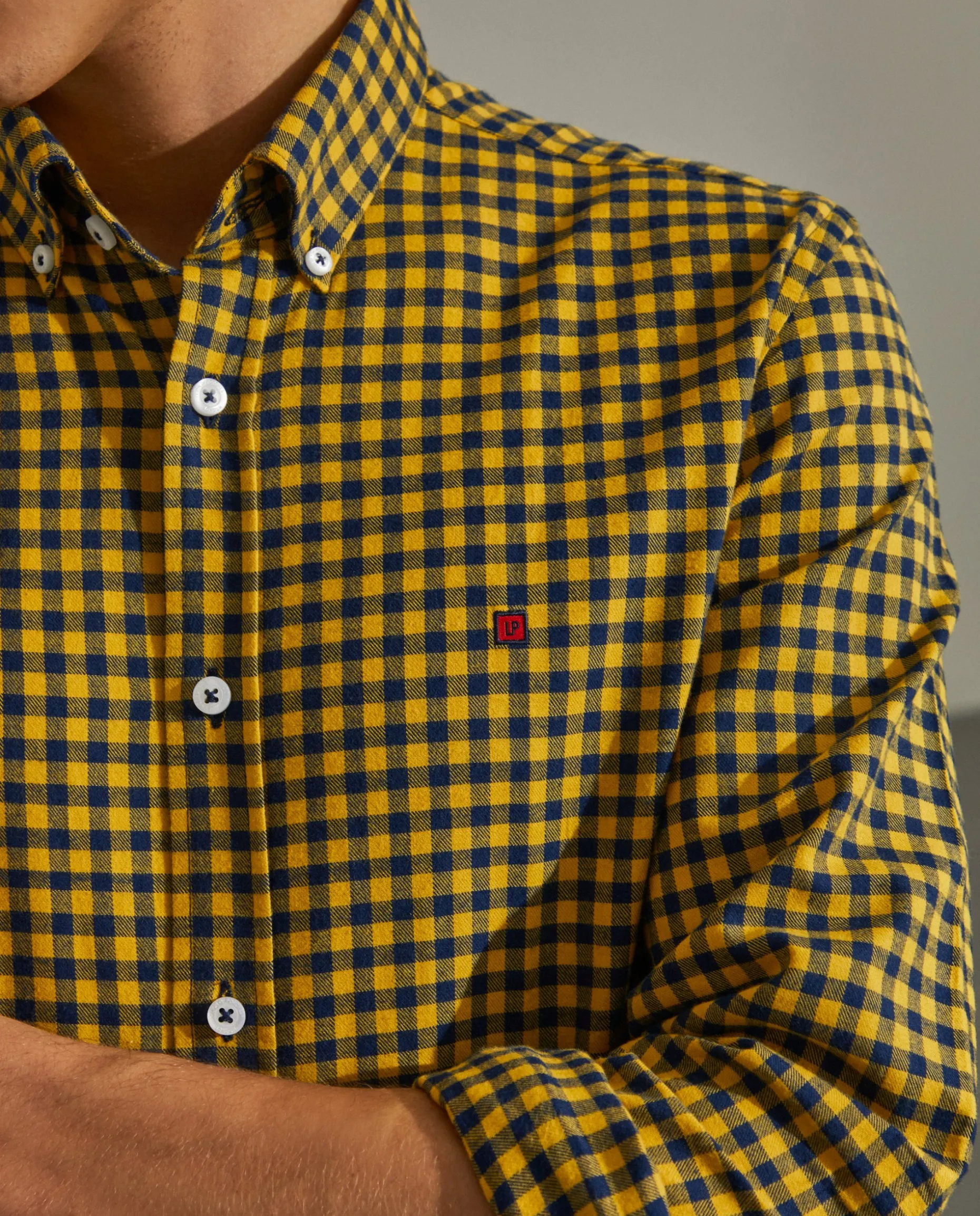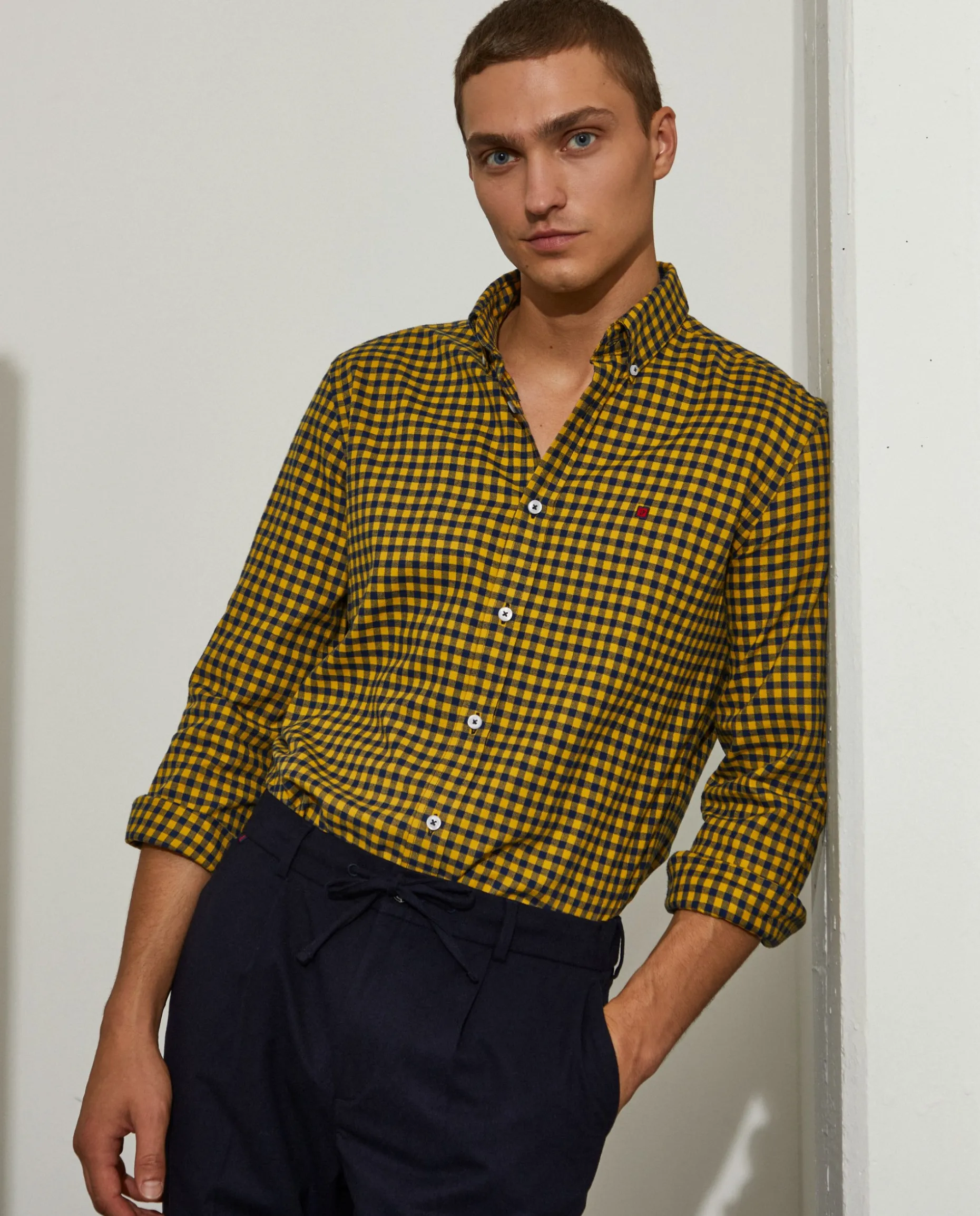 Combine esta camisa slim fit com padrão de xadrez com umas calças de ganga e esteja preparado para tudo. Com um colarinho com dois botões, apresenta um bordado personalizado no peito.