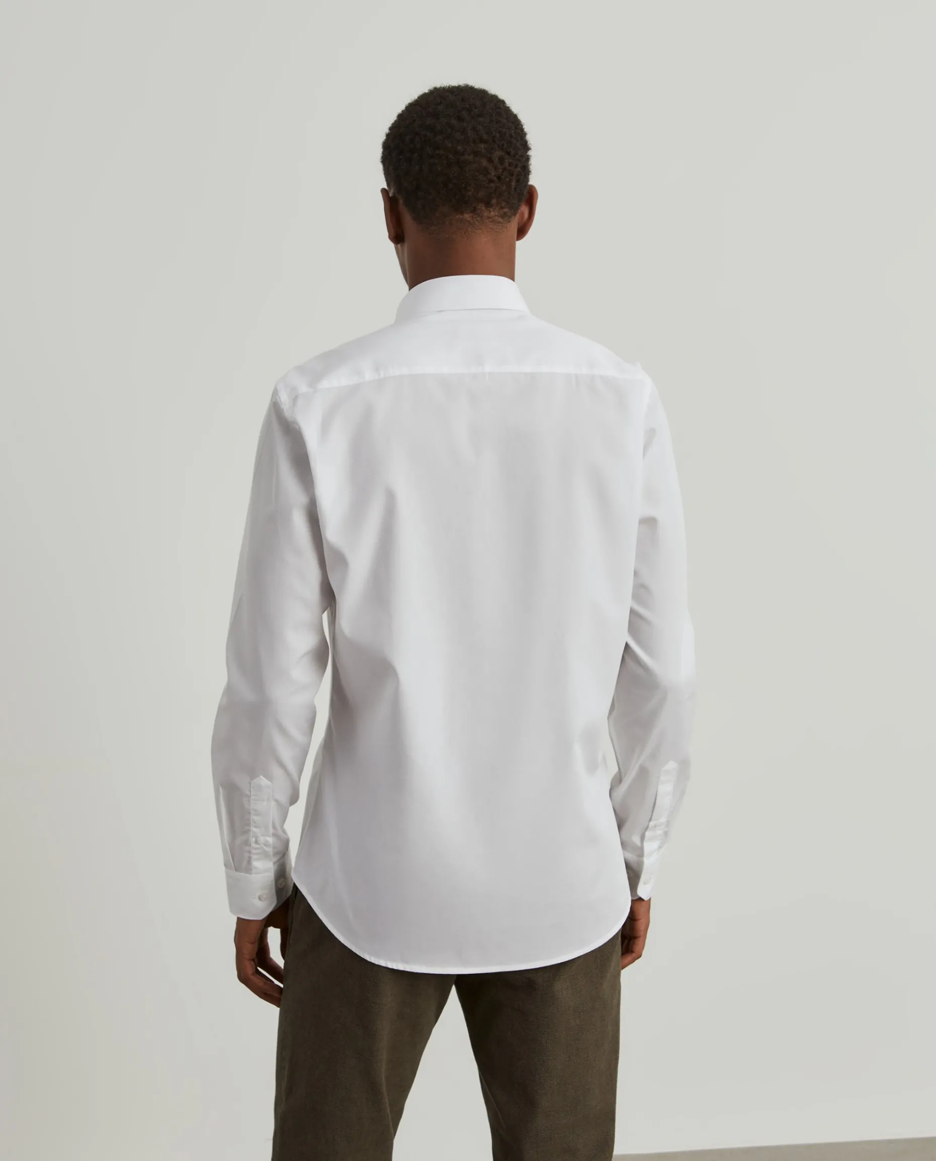 Camisa Slim Fit. Tecido de popelina. Colarinho com dois botões. Bordado personalizado no peito. Botões personalizados.