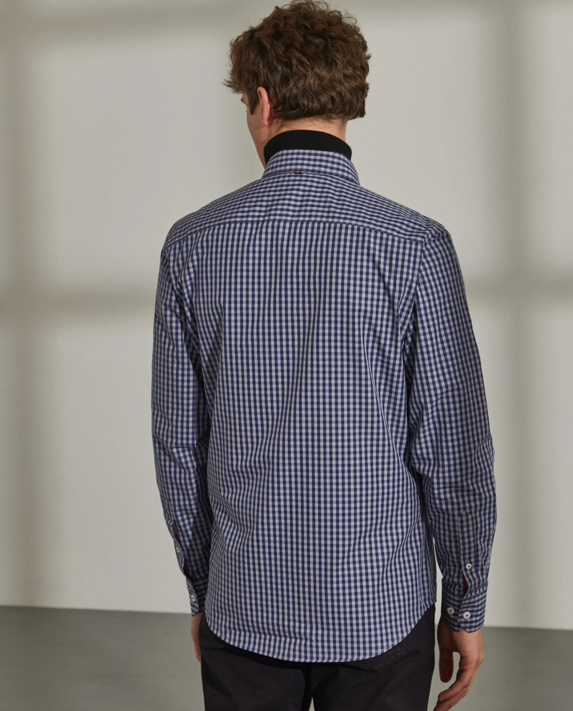 Um clássico que não pode faltar no seu guarda-roupa, esta camisa slim fit com padrão de xadrez é confecionada em 100% de algodão. Conta com um colarinho com dois botões e um bordado personalizado no peito.