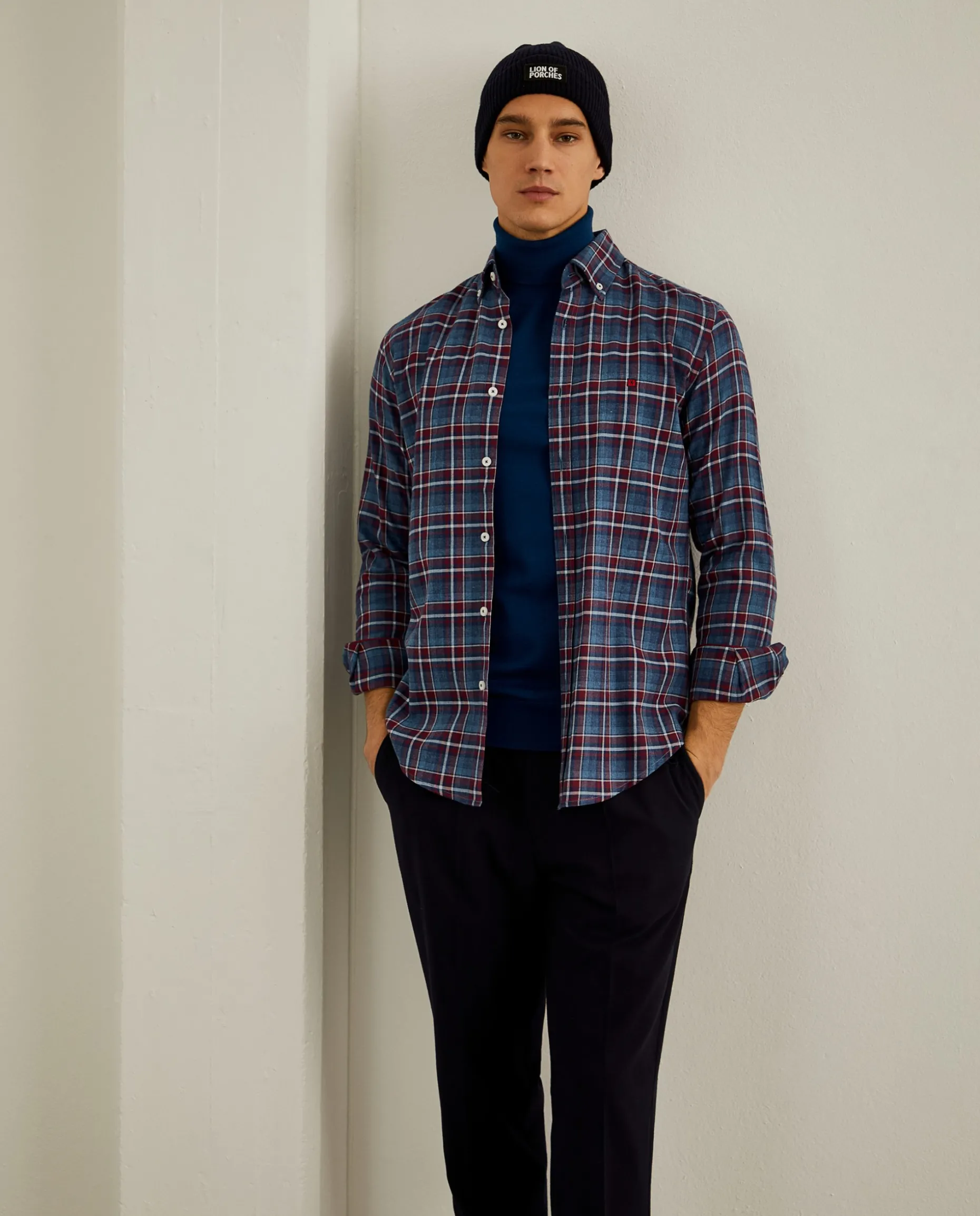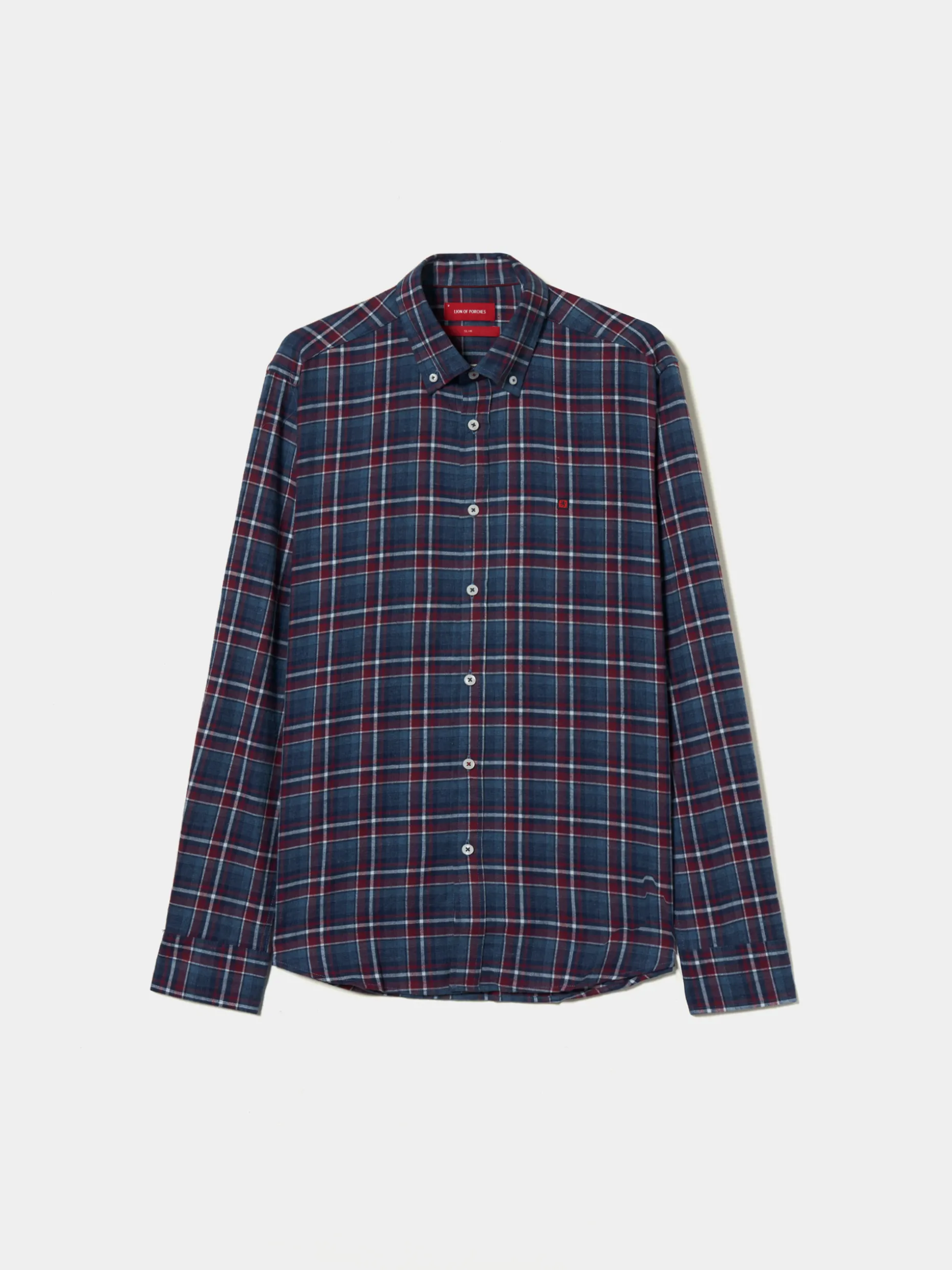 Camisa slim fit com padrão de xadrez, para um look casual descontraído. Com botões personalizados na frente, no colarinho e punhos. Finaliza com bordado da marca em contraste no peito.