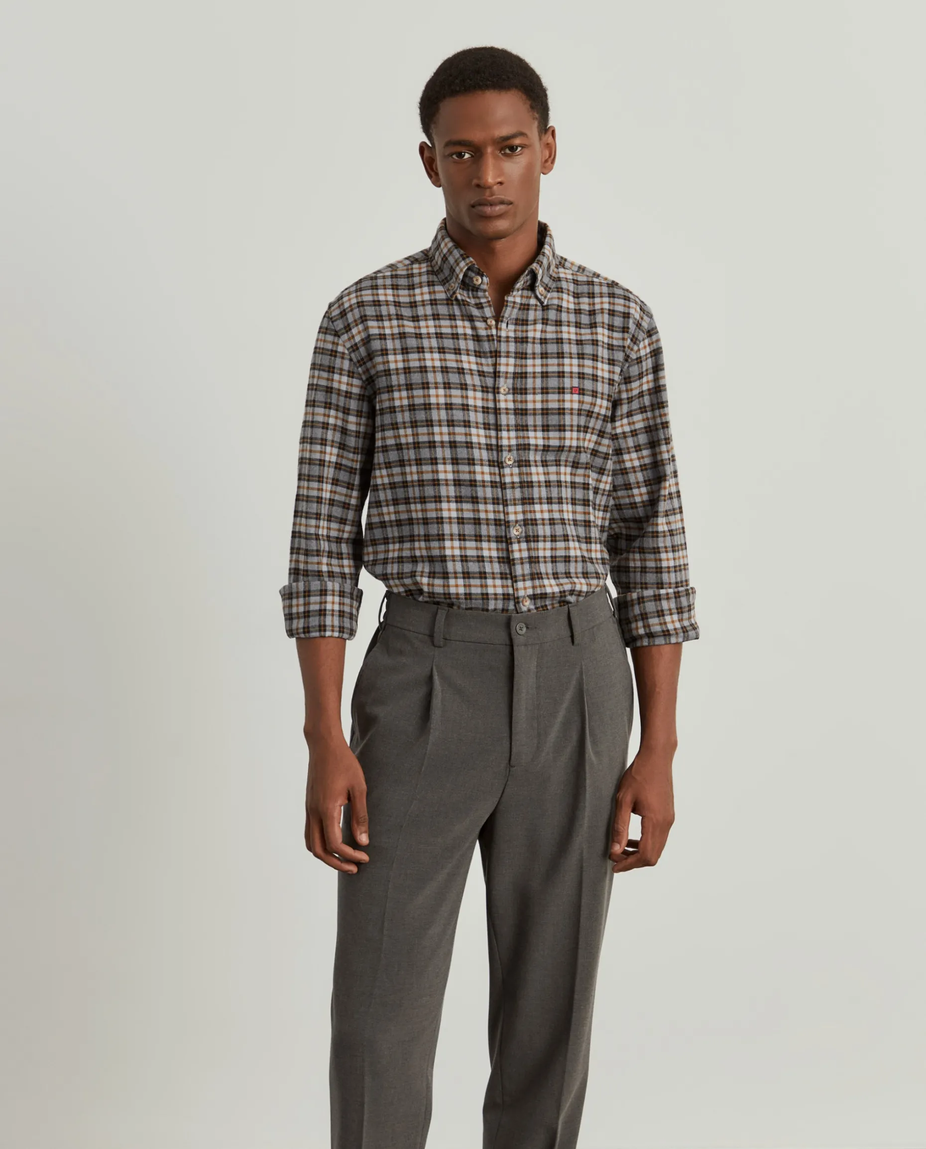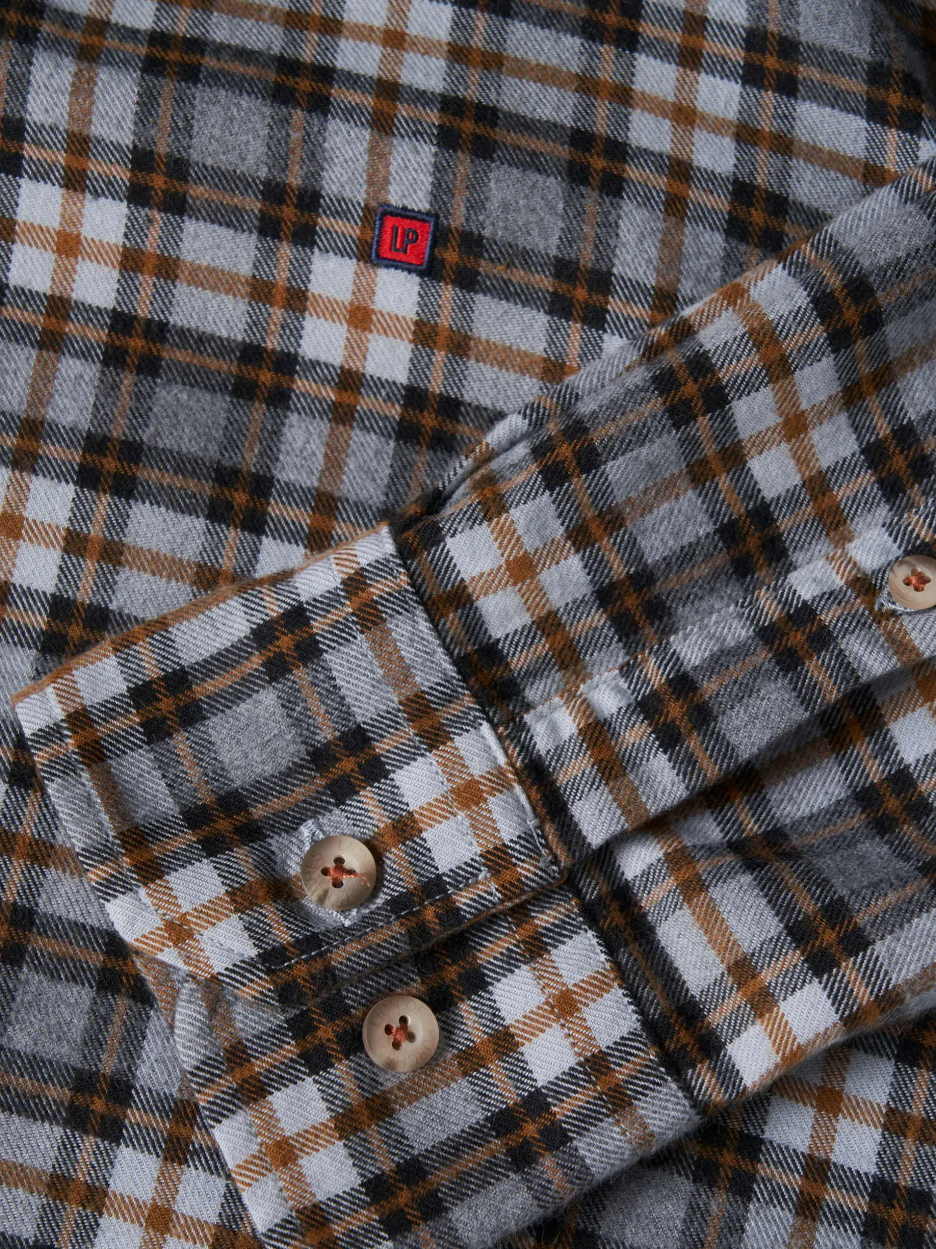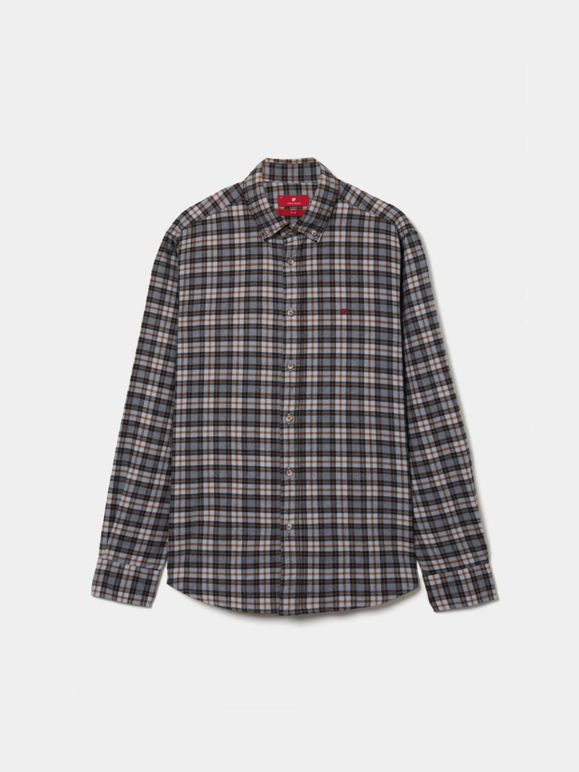 Camisa slim fit. Confecionada em 100% algodão. Com padrão xadrez. Colarinho com dois botões. Bordado no peito. Aperta com botões personalizados.