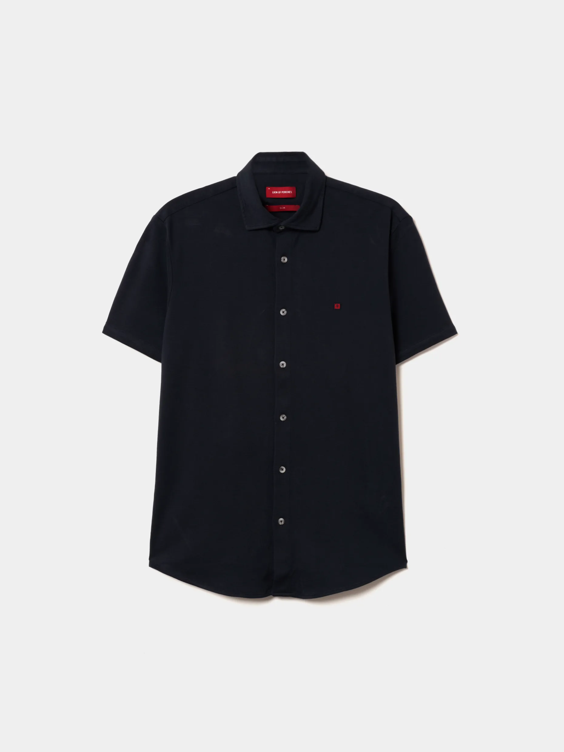 Camisa slim fit de manga curta 100% algodão. Colarinho “cutaway”. Branding Lion of Porches bordado no peito. Botões personalizados.