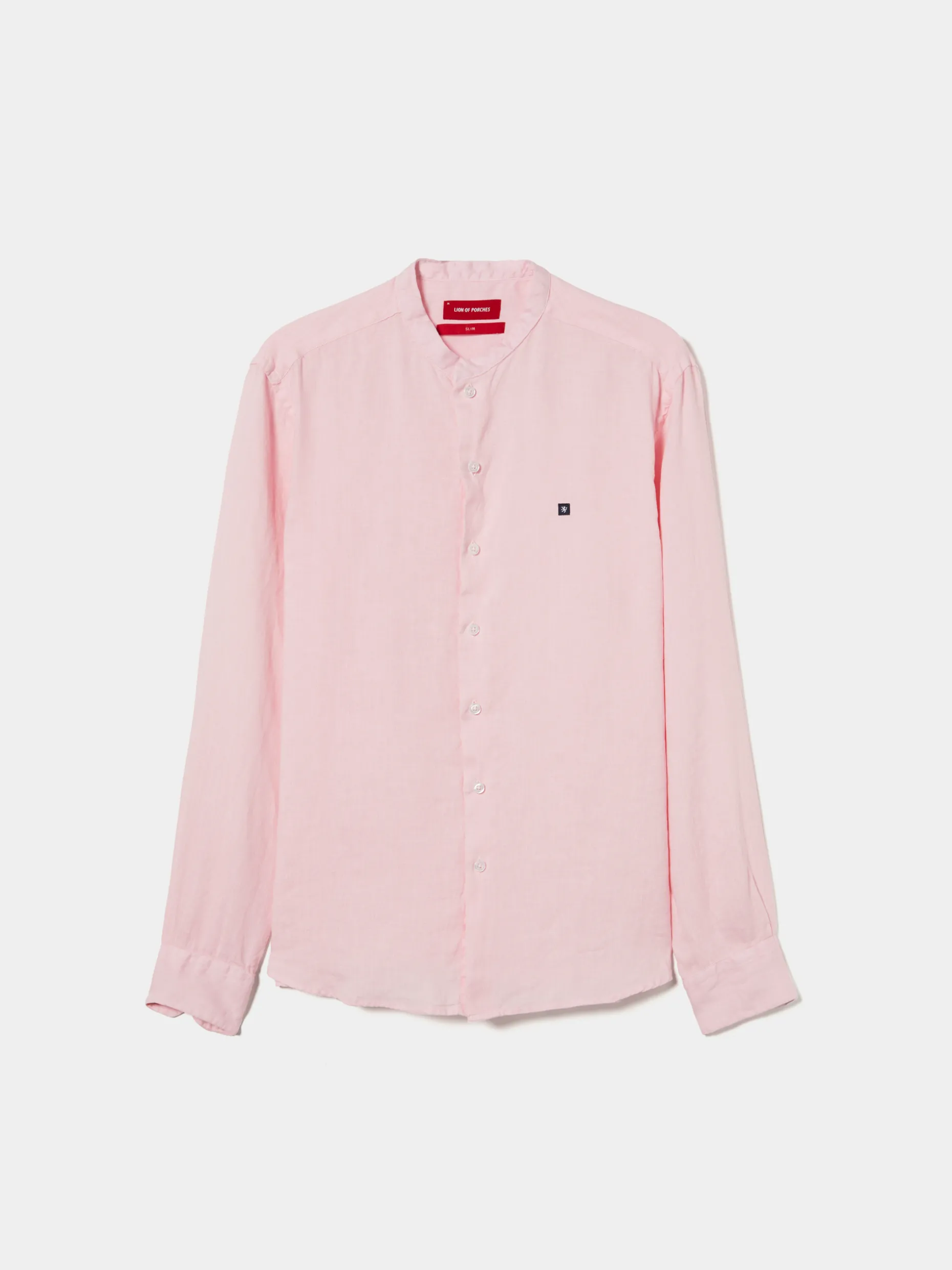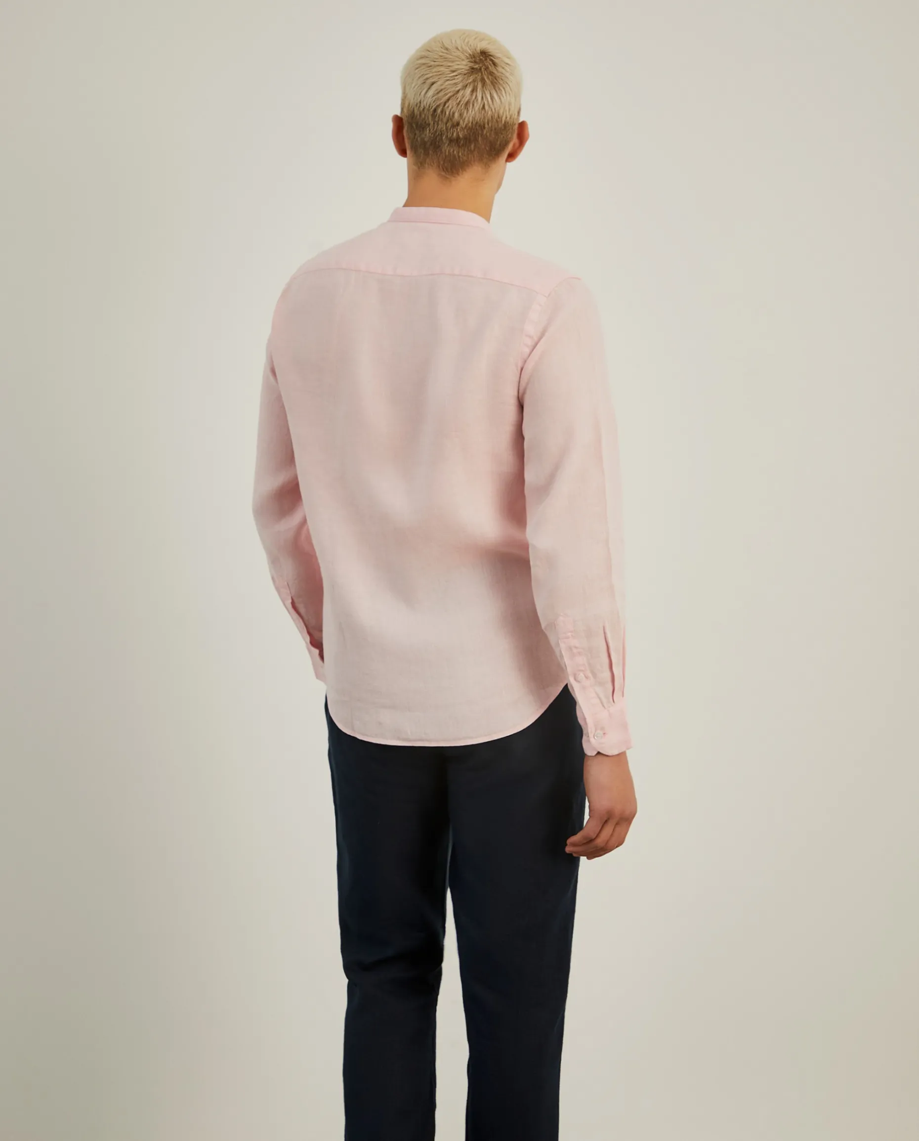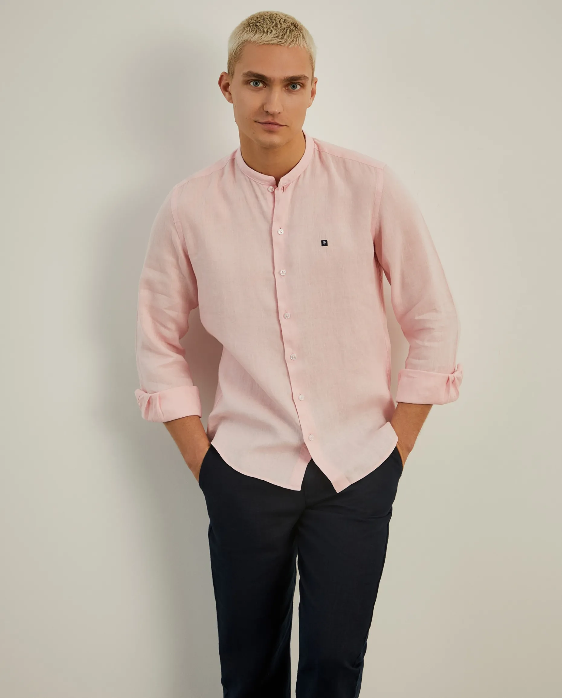 Perfeita para as estações mais quentes, esta camisa slim fit de manga comprida é de linho, um material leve, fresco e respirável. Com gola mandarim, aperta com botões em contraste na frente e nos punhos. Finaliza com pequeno leão da marca no peito. Disponível em várias cores. É confecionada com recurso à técnica garment dye, que consiste no tingimento após a confeção, resultando numa cor única, um toque mais suave e um visual casualmente sofisticado.