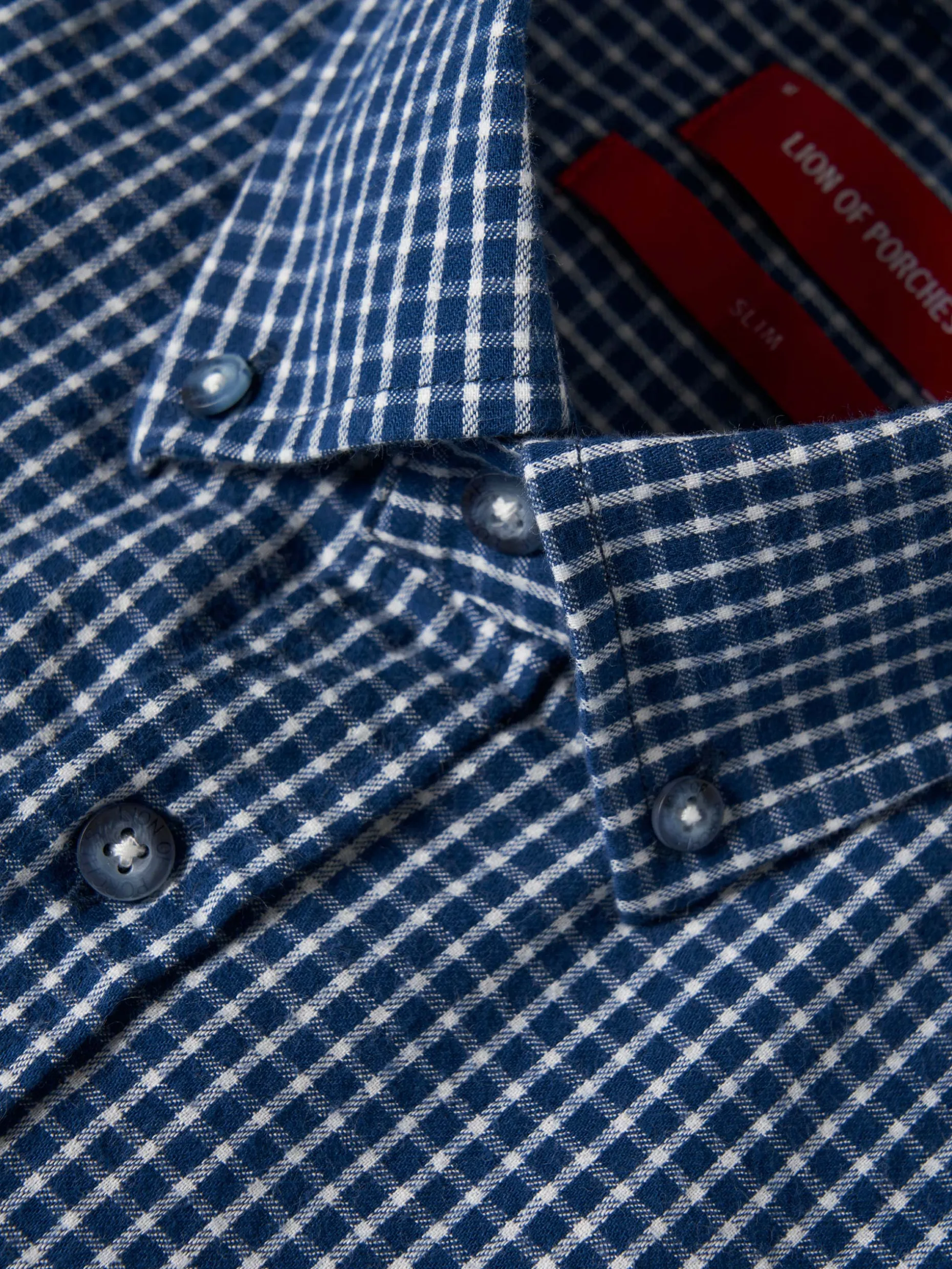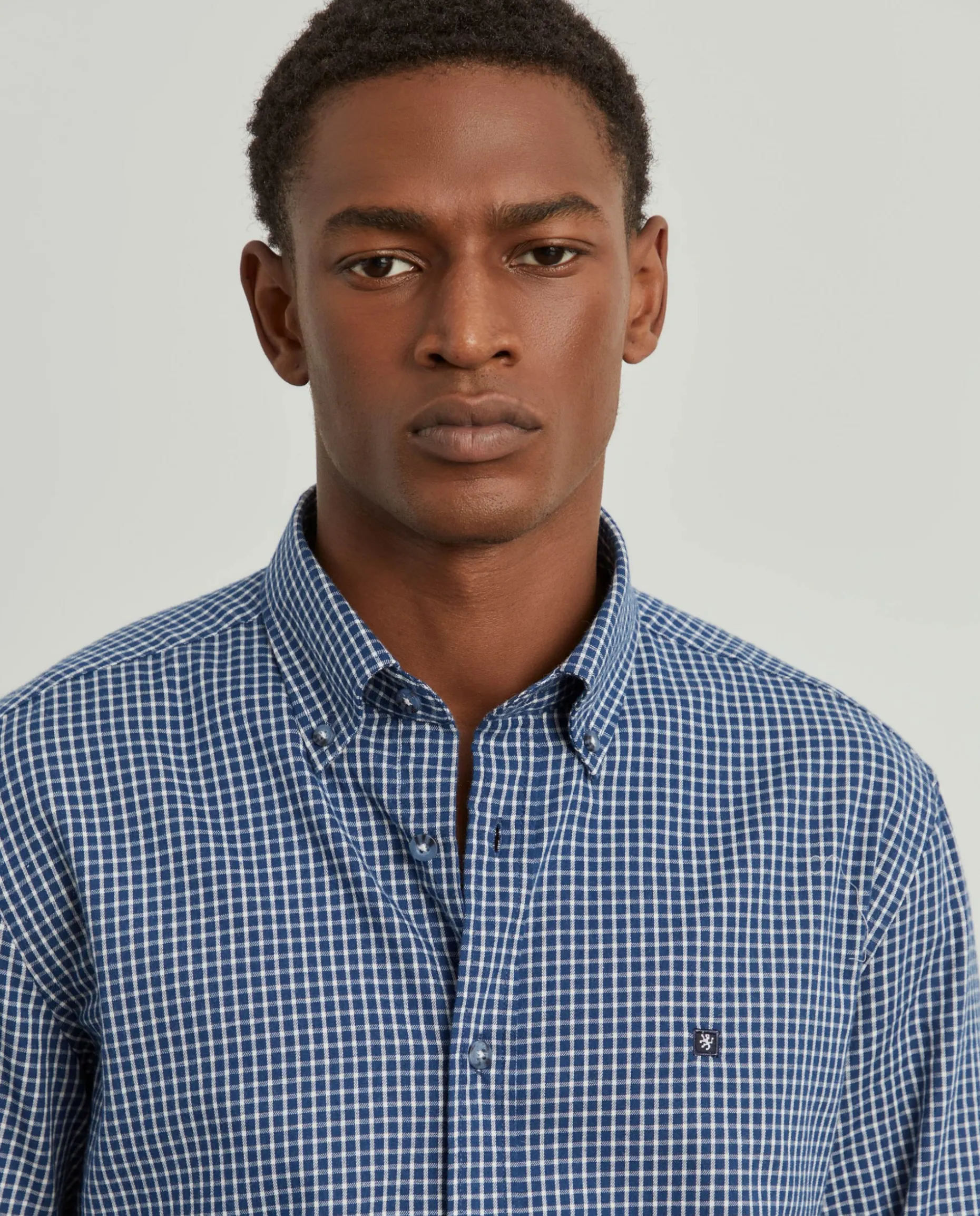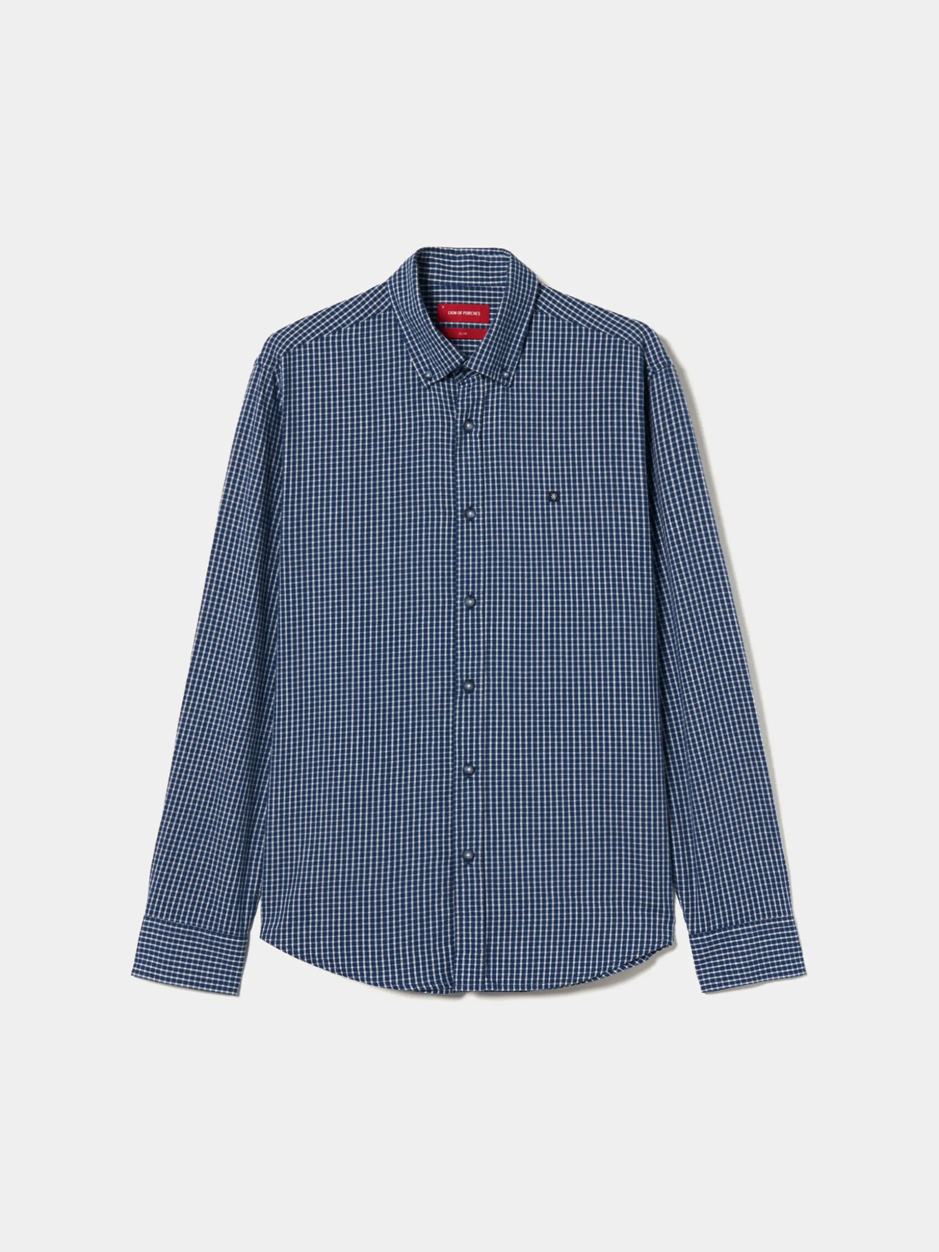 Obtenha um look casual e descontraído com esta camisa slim fit em tecido com padrão de quadrados. De manga comprida e colarinho com dois botões. Finaliza com pequeno leão da marca no peito.