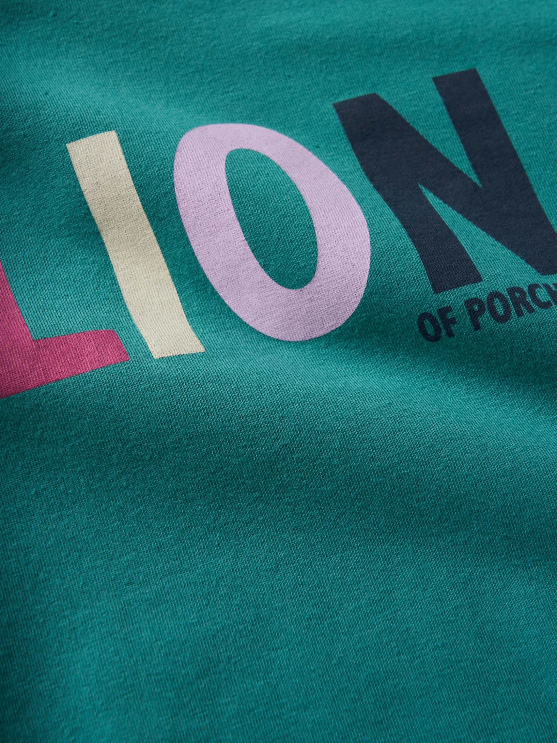 Camisola de manga comprida com estampado Lion of Porches em contraste na frente. De gola redonda, é confecionada em algodão com uma pequena percentagem de elastano para maior elasticidade. Uma peça leve e confortável para o dia-a-dia das miúdas.