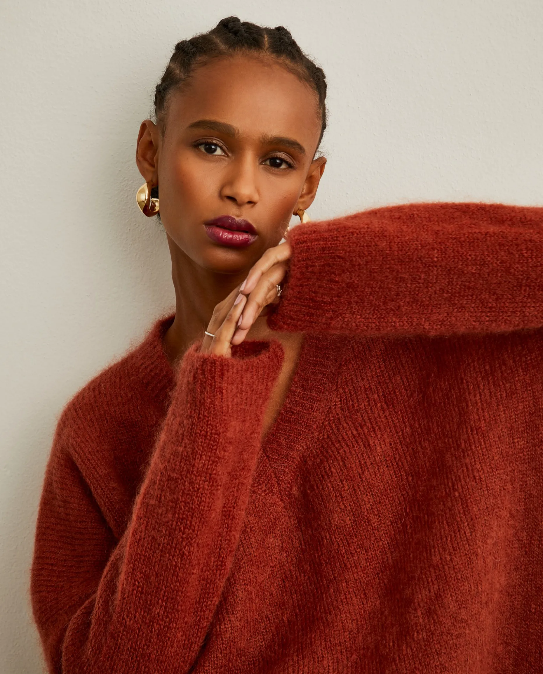 Camisola de lã com decote em V para um look quente e confortável. A lã kid mohair presente na sua confeção, confere à peça maior resistência, durabilidade e uma sensação ao toque única. Pormenor canelado na base, punhos e gola. Espreite também, o chapéu e cachecol a combinar, da mesma coleção.