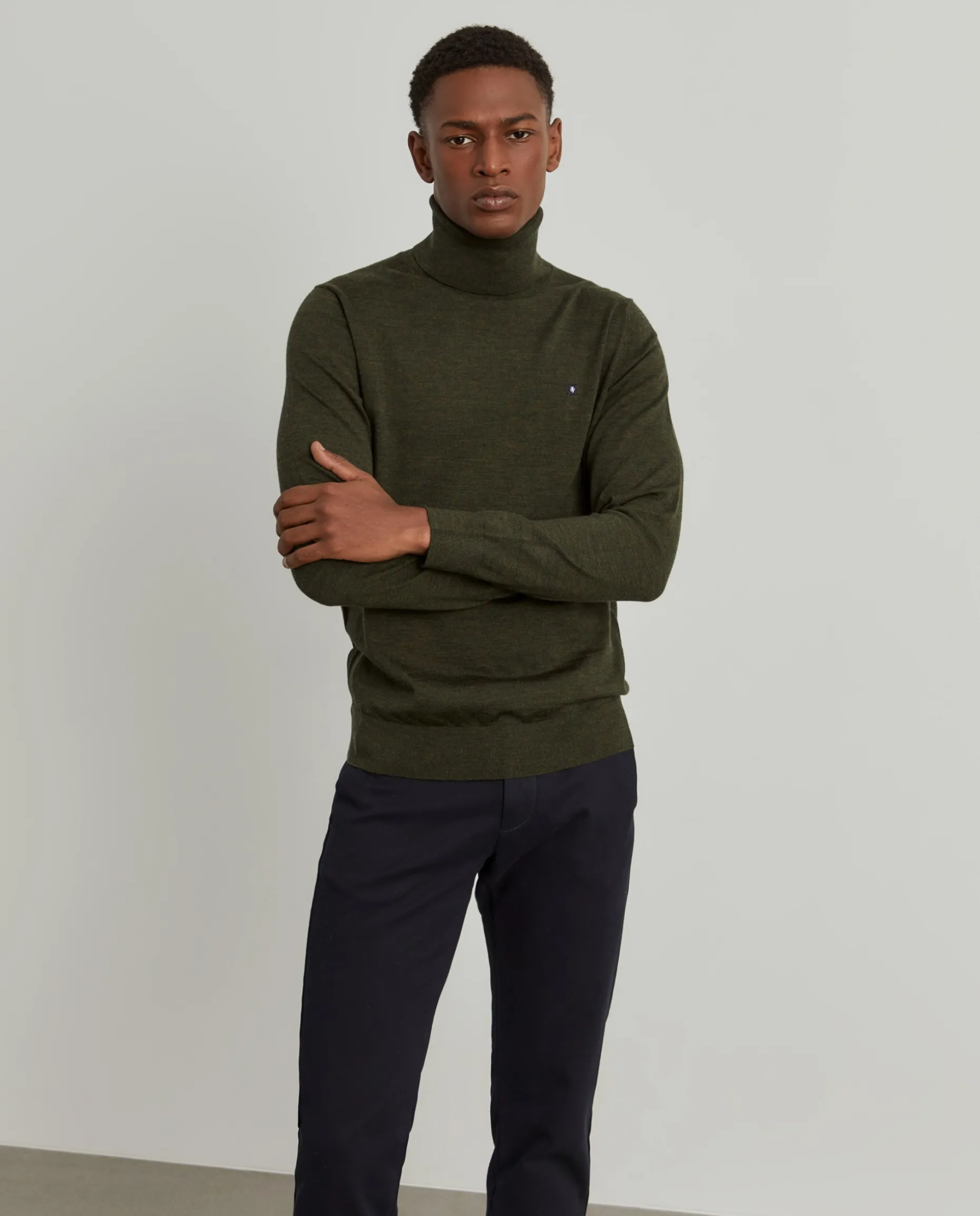 Esta camisola de gola alta é um verdadeiro essencial de inverno. Confecionada em lã merino, tem um toque muito suave e aveludado. A gola, punhos e cintura são canelados. Disponível em várias cores.