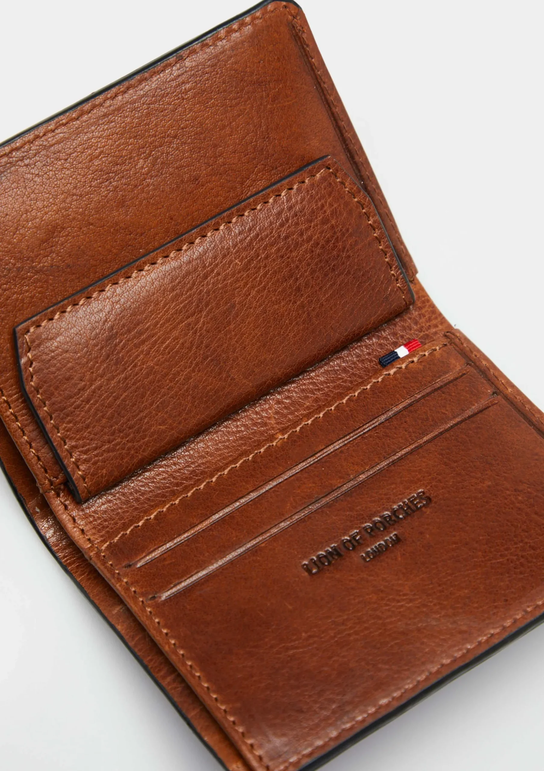 Carteira 100% pele com ranhuras para cartões e compartimentos para moedas. Logotipos gravados e fita corporativa.