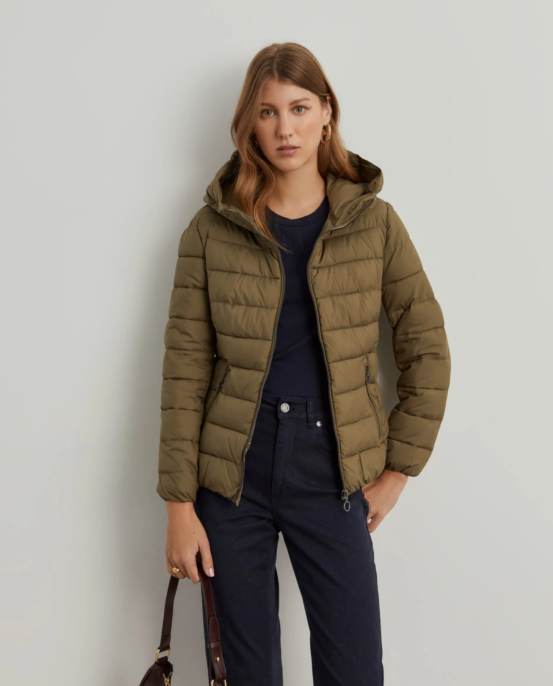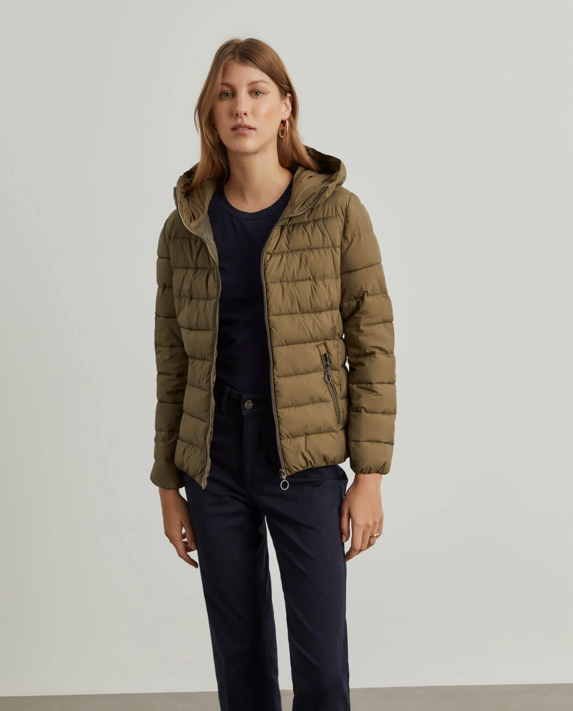 Proteja-se da chuva e do frio com este casaco acolchoado com capuz. Com abertura por fecho de correr e bolsos com fecho na frente.