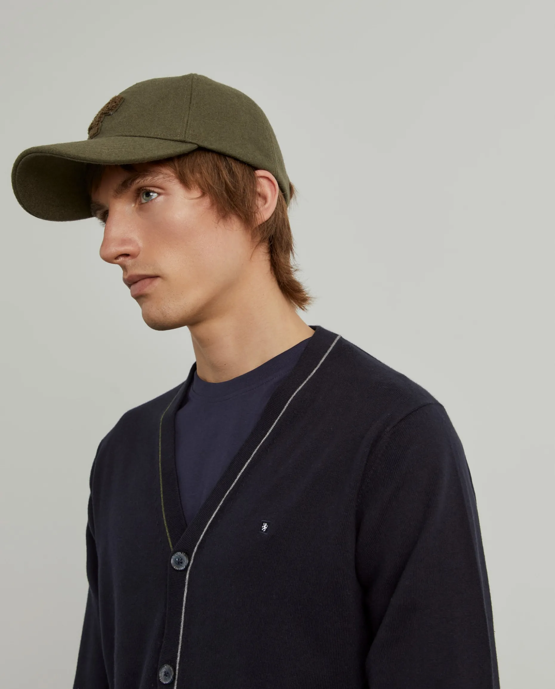 Indispensável nos dias mais frescos, este casaco de malha, tem manga comprida e aperta com botões. Com pormenor diferenciador de riscas em contraste nos punhos, à volta do decote e no decorrer da carcela dos botões. É confecionado com uma mistura de algodão e caxemira que conferem à peça maior conforto e suavidade.