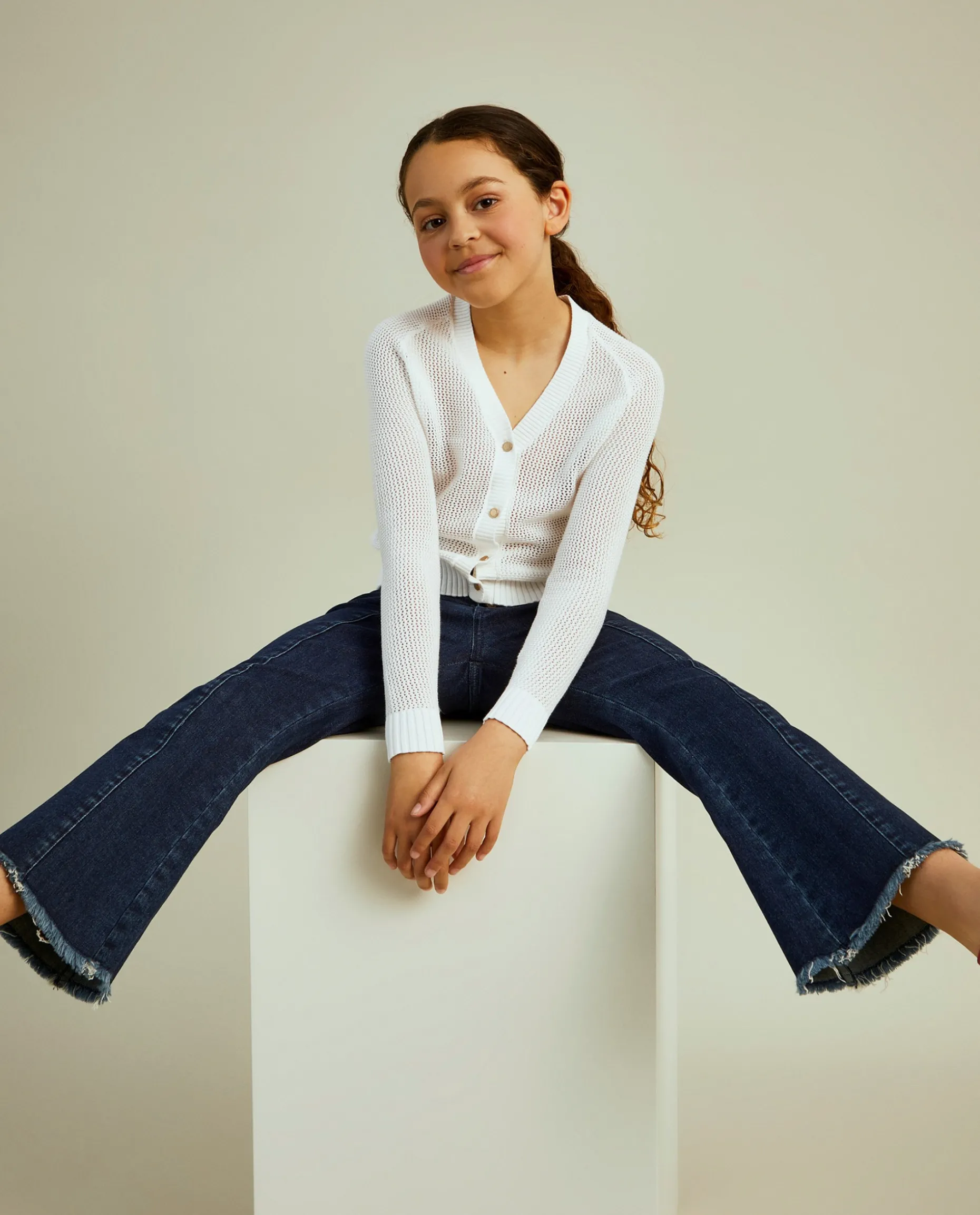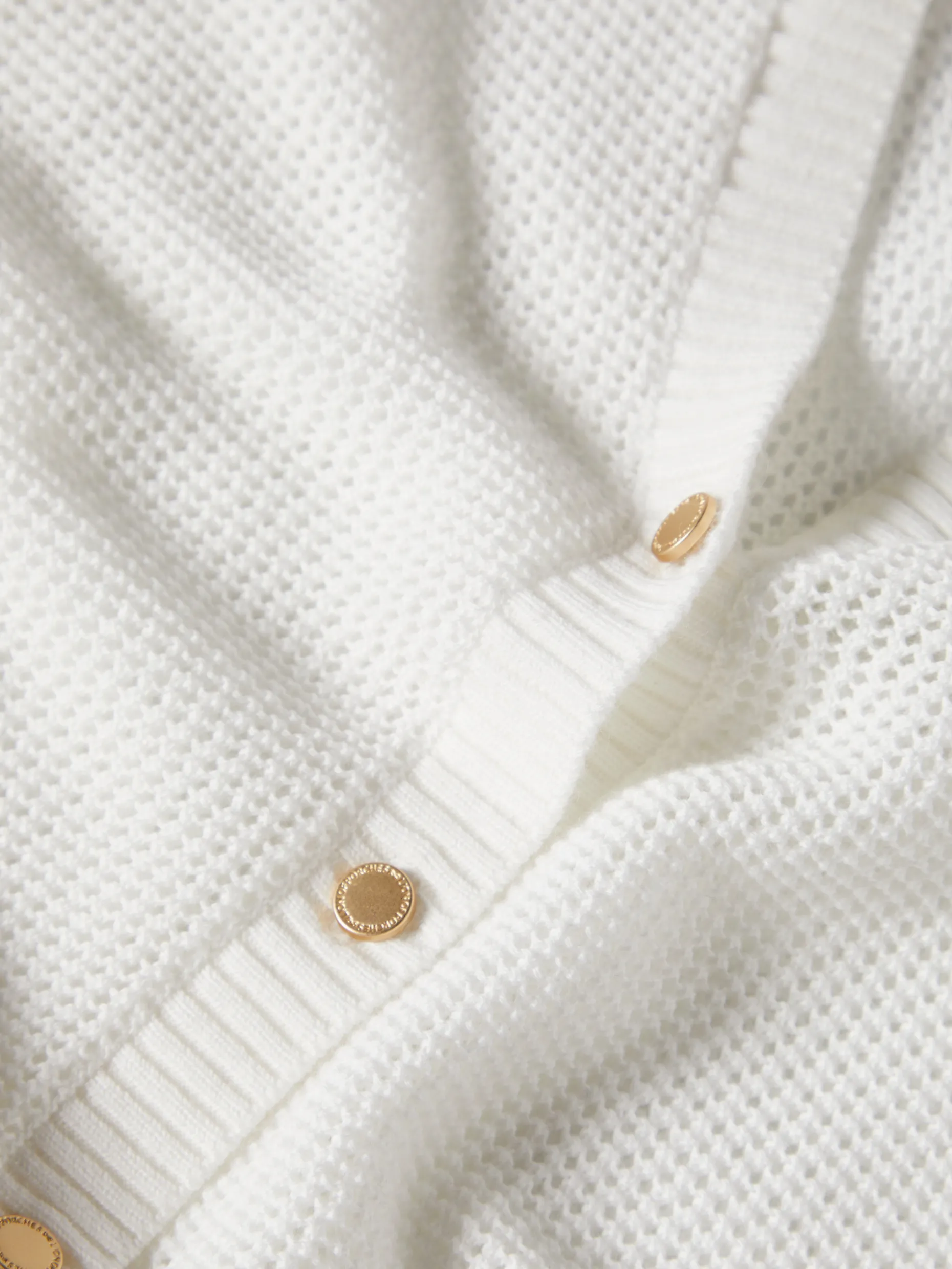 Adicione uma camada extra no look das miúdas com este casaco de malha tricotada, com manga comprida. Aperta na frente com botões dourados em contraste de cor. Finaliza com canelado na carcela, base e punhos. É confecionado, na totalidade, em algodão para maior conforto, suavidade e durabilidade.